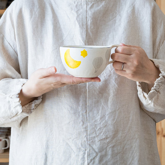 和紙染め 丸マグ 小 月と気球|安見工房