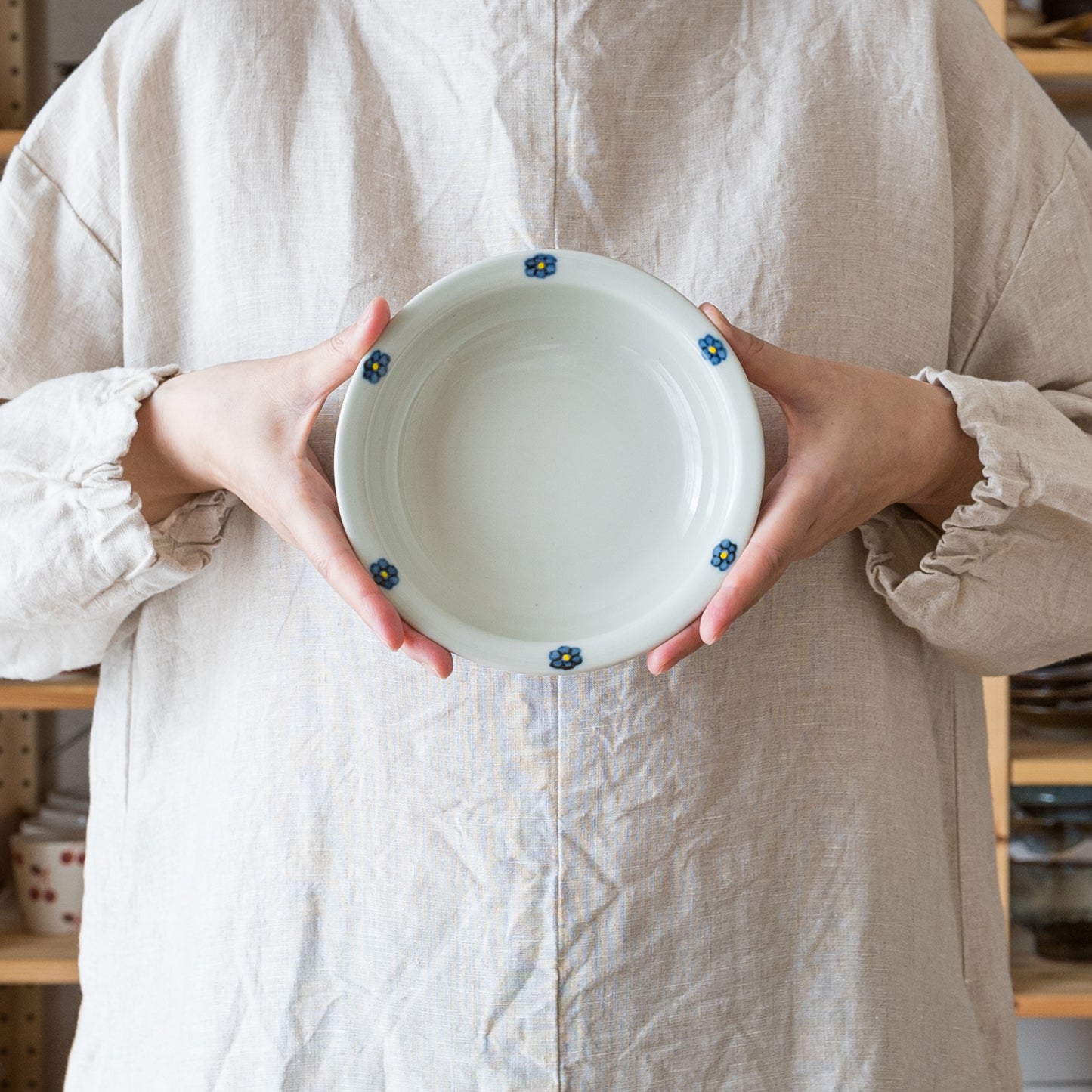 Deep plate with rim Small flowers|Arita ware Dainichi kiln