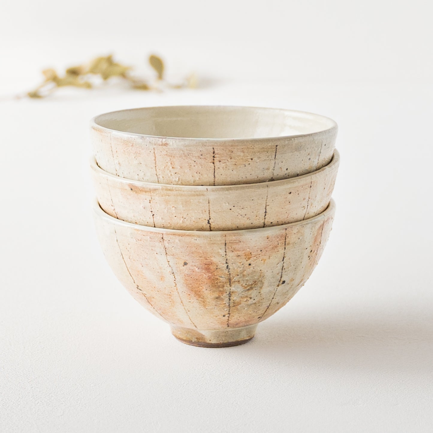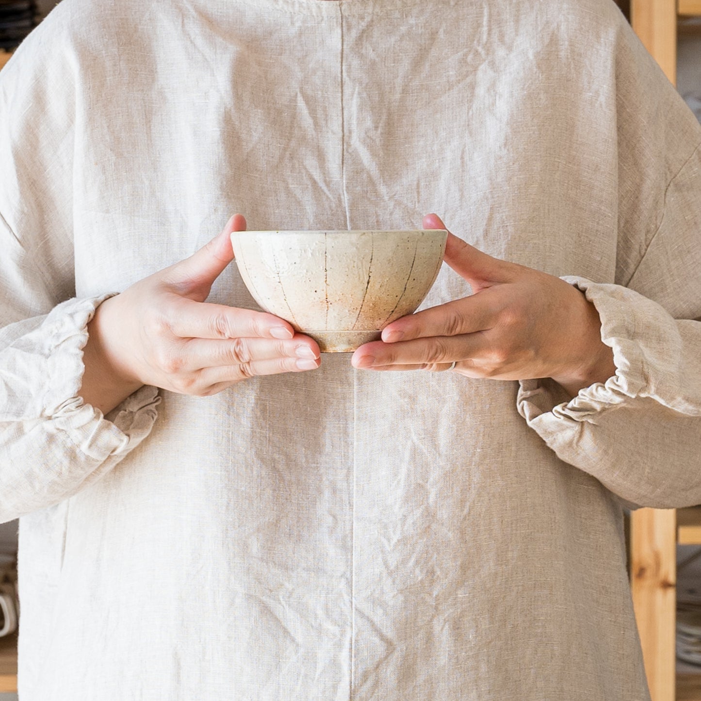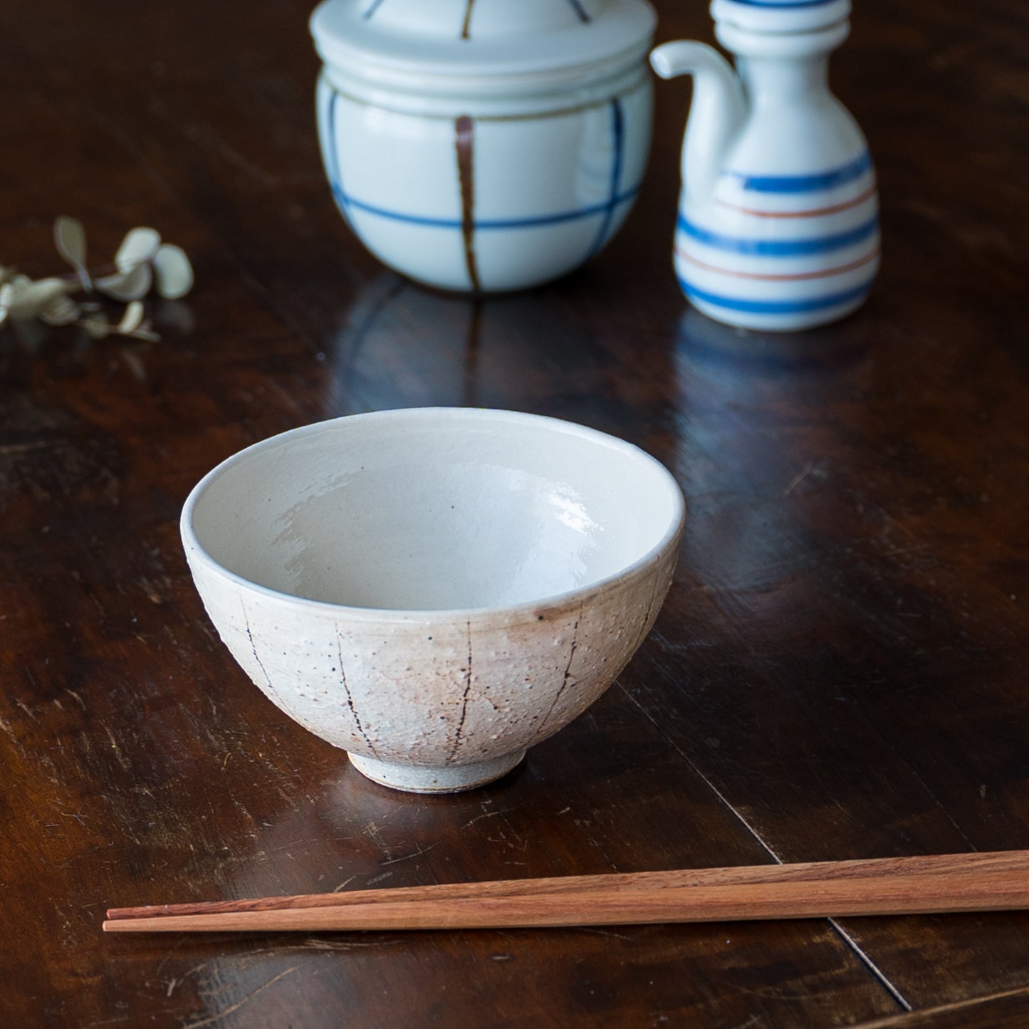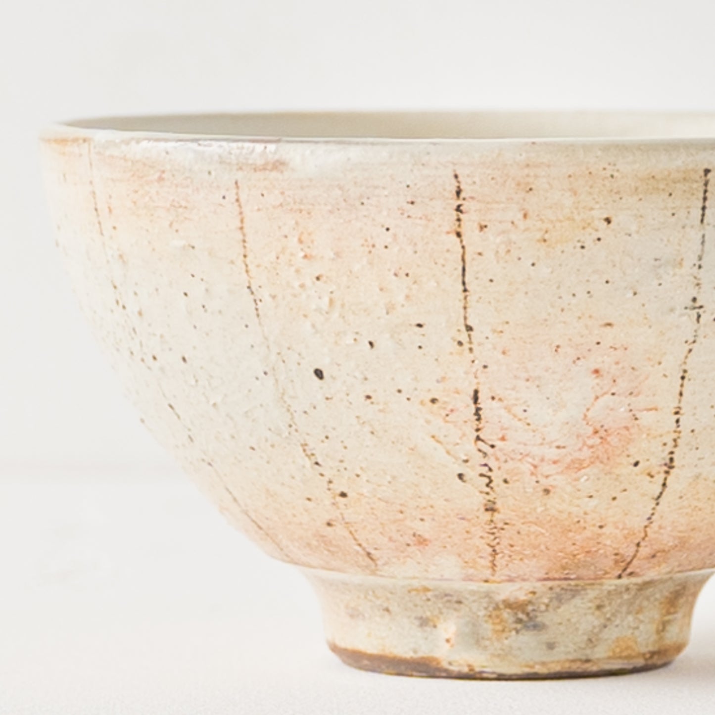 The warm white kohiki with the vertical iron wire and the faint redness give it an indescribable texture. The vertical iron wire is hand-drawn one by one with a pencil, so you can feel the warmth of human skin.