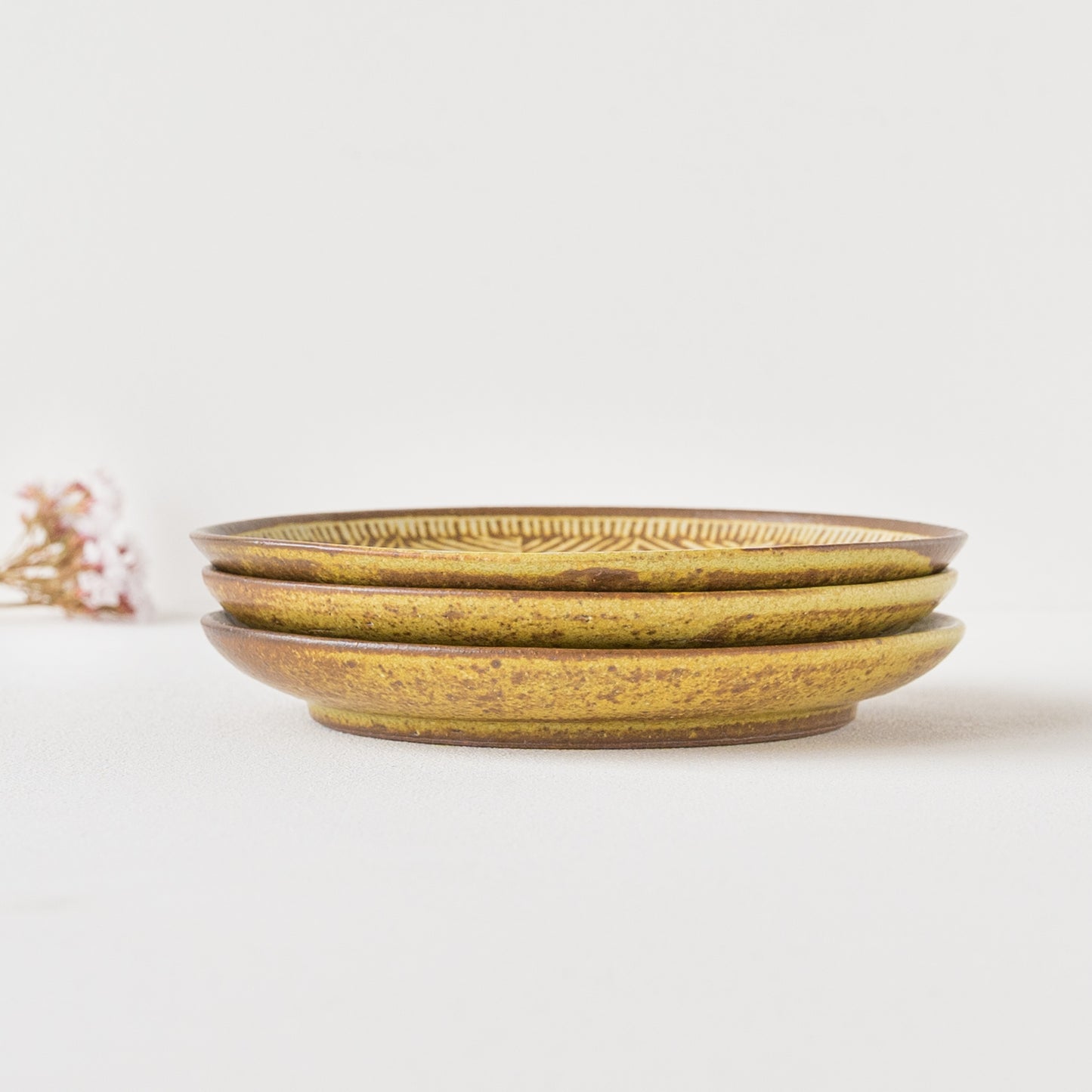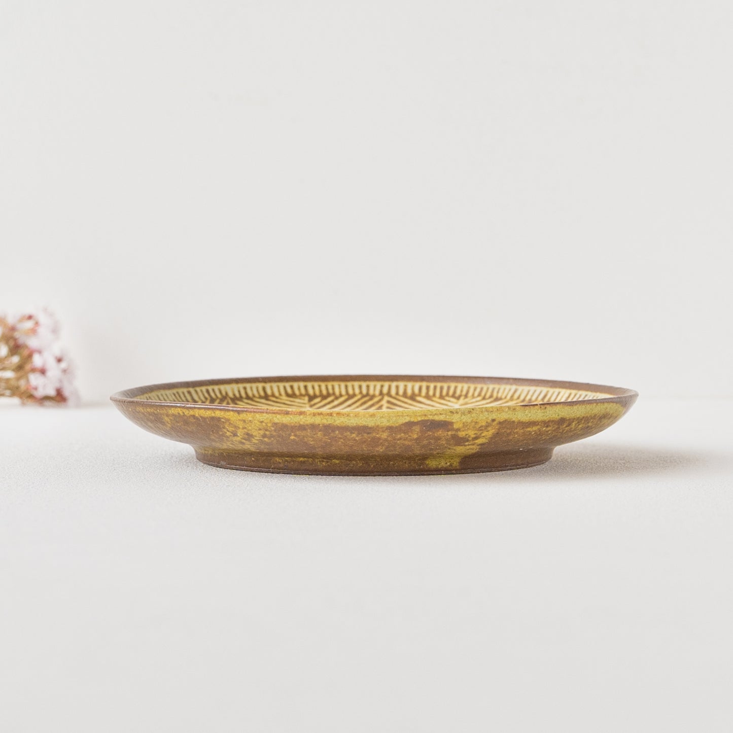 A technique called inlay is used to decorate the carved surface of the vessel by inlaying colored clay that is different from the base clay (clay-like base soil). You can feel the simple and gentle texture of the soil itself. A matte glaze with a moist and gentle texture is applied.