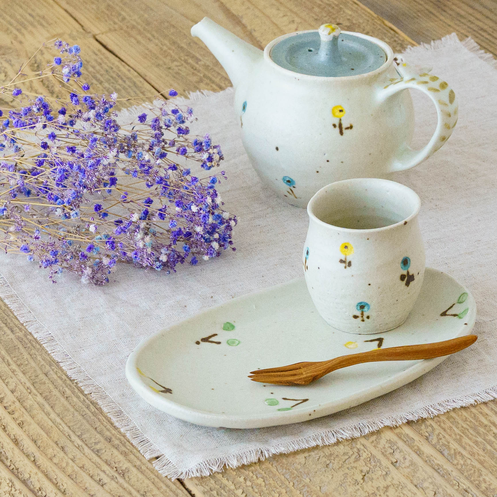 Small, rough textures. Black spots that appear during firing due to the iron in the clay, and pinholes that make it seem as if the pottery is breathing. Each piece has its own little story of handcrafting. You will never tire of them, even if you use them a lot, yet you will feel a little lifted every time you look at them. We hope you enjoy creating your own unique pottery.