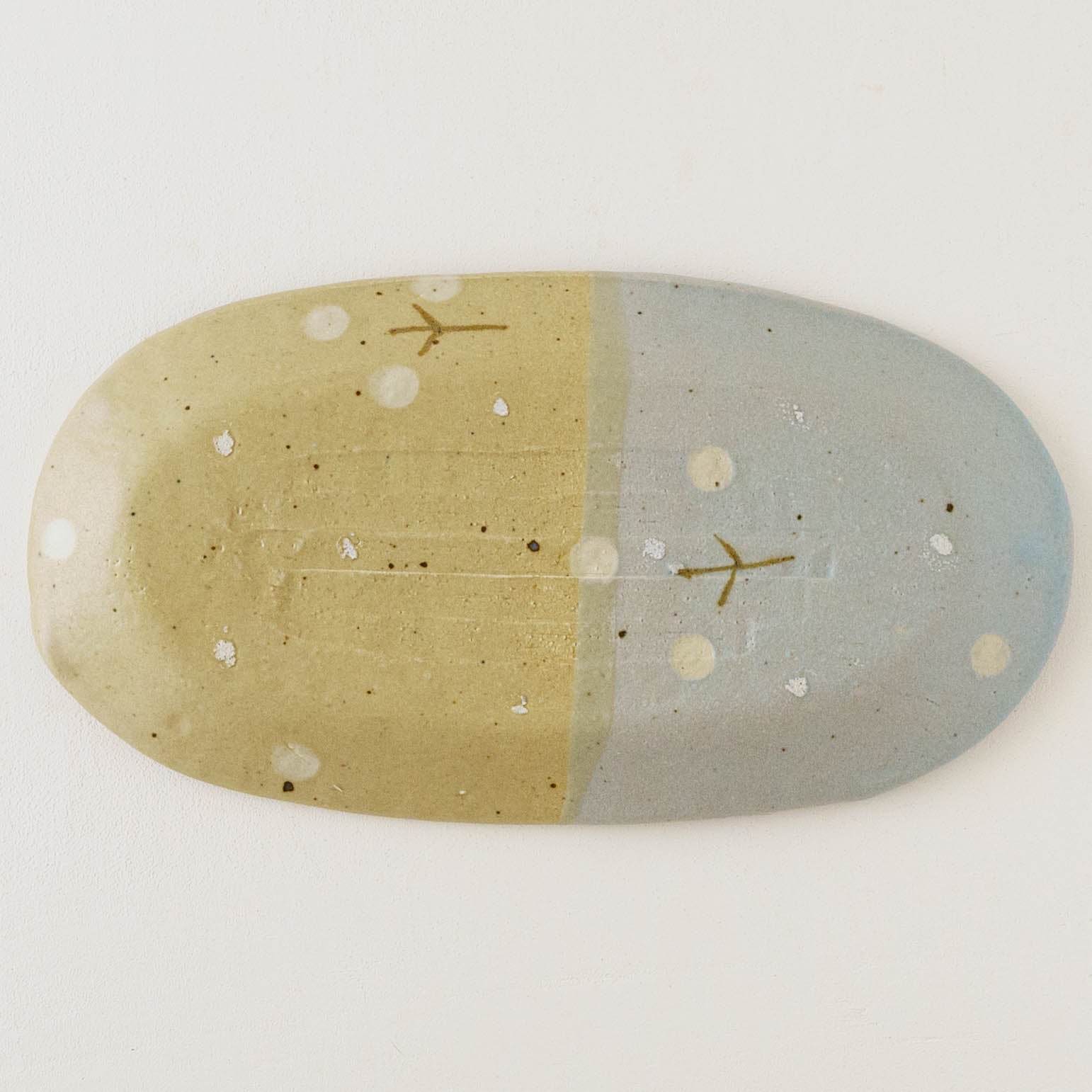 Oval flower plate L light brown x light blue | Harada Haruko