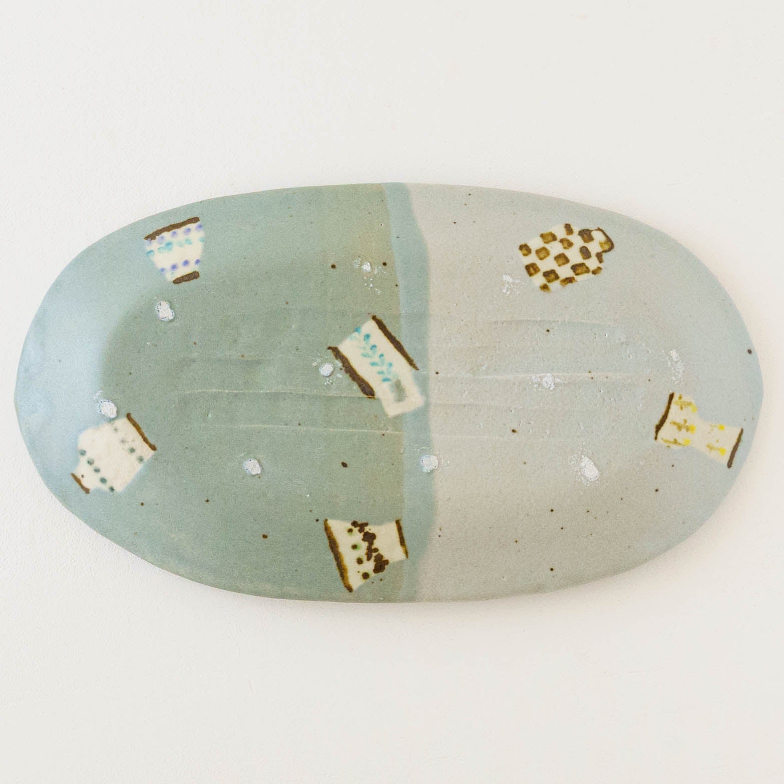 Oval plate L light blue x turquoise blue | Harada Haruko