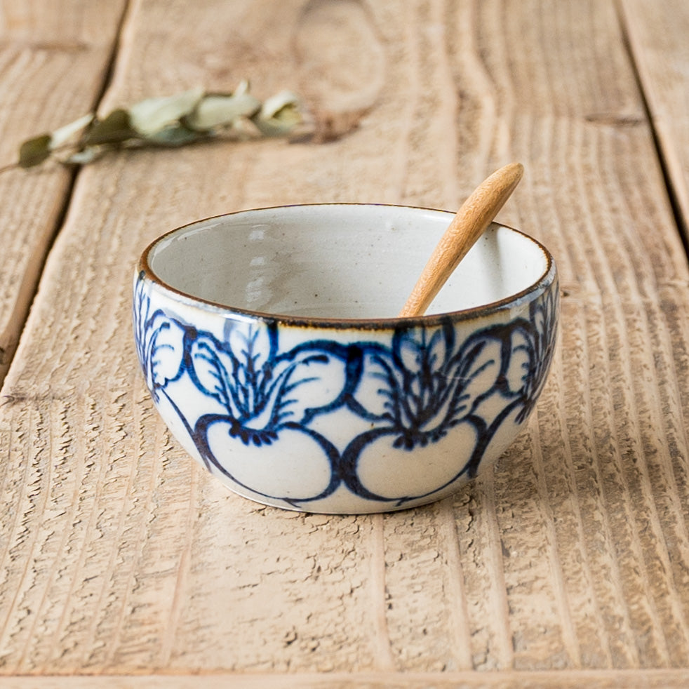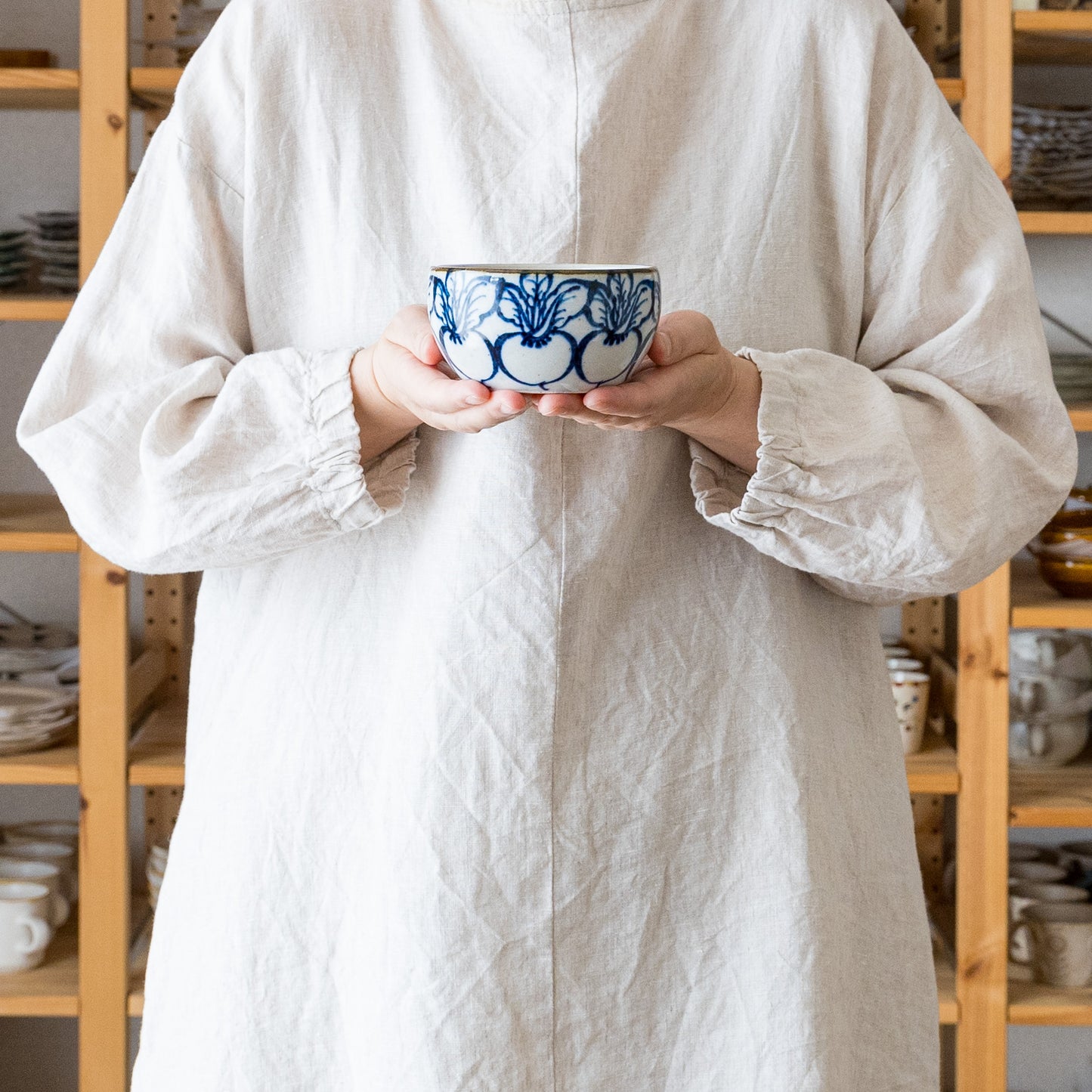 Deep dyed indigo that stands out against the white background. Just put it in a calm and calm atmosphere. It's a vessel that conveys the kindness that fits perfectly on the dining table .