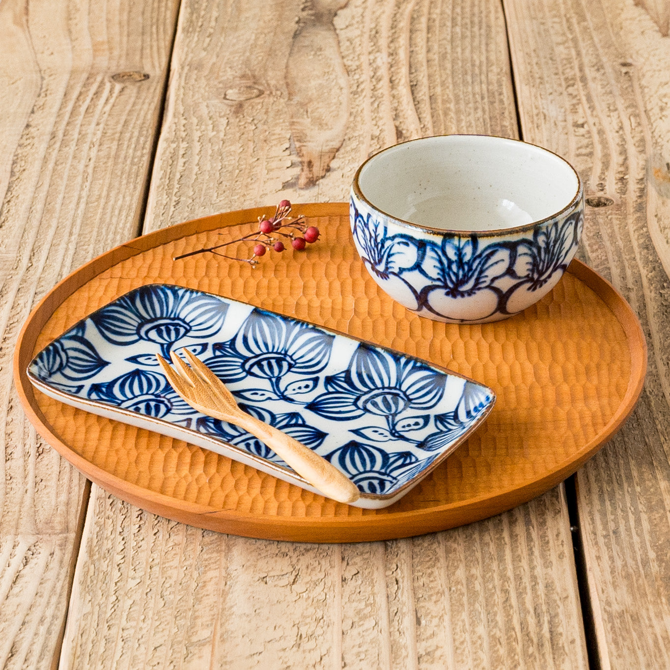 It is designed so that lovely vegetable and plant patterns drawn with gentle and gentle lines are connected. The perfect balance of Japanese and modern styles will brighten up your dining table.
