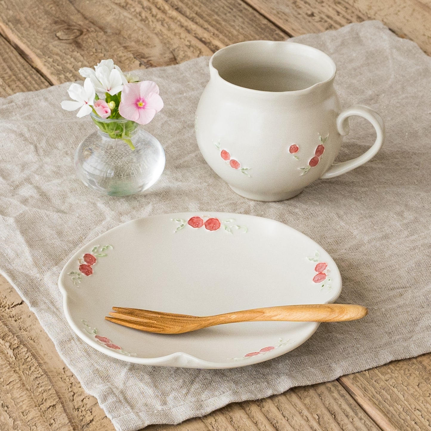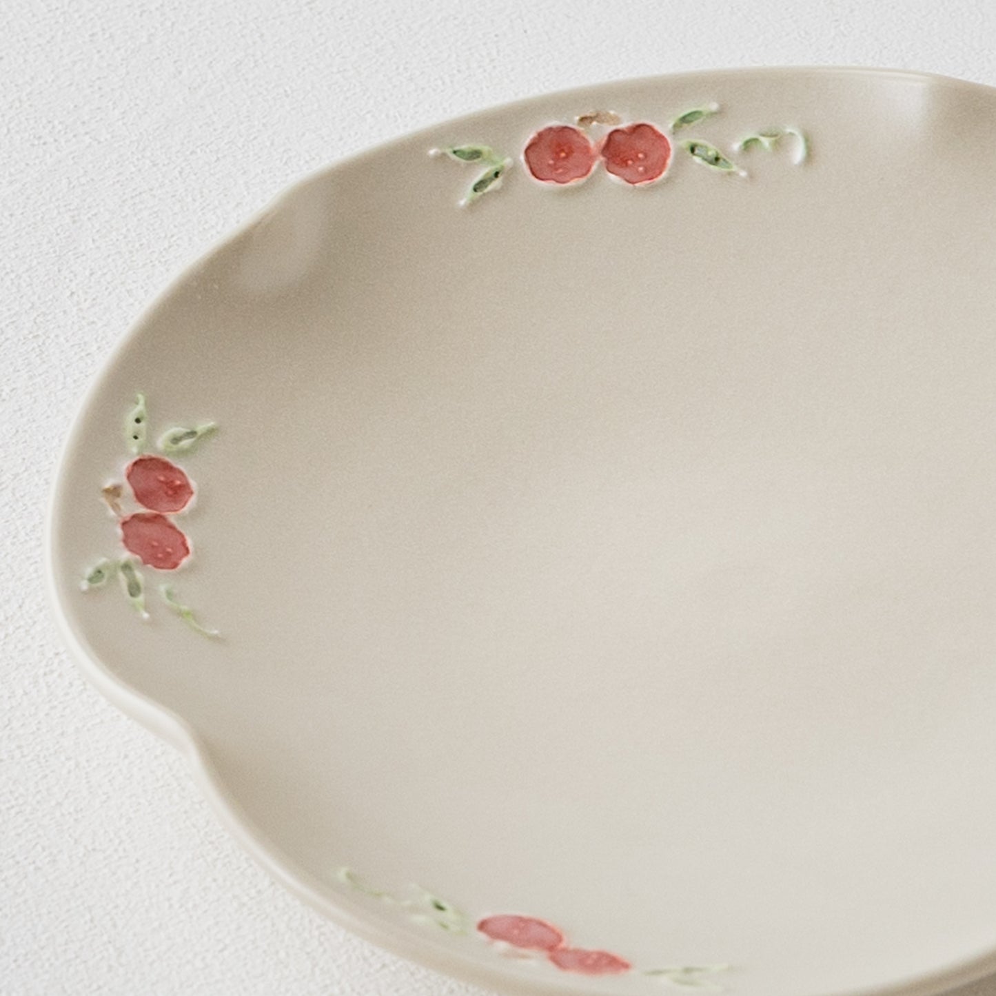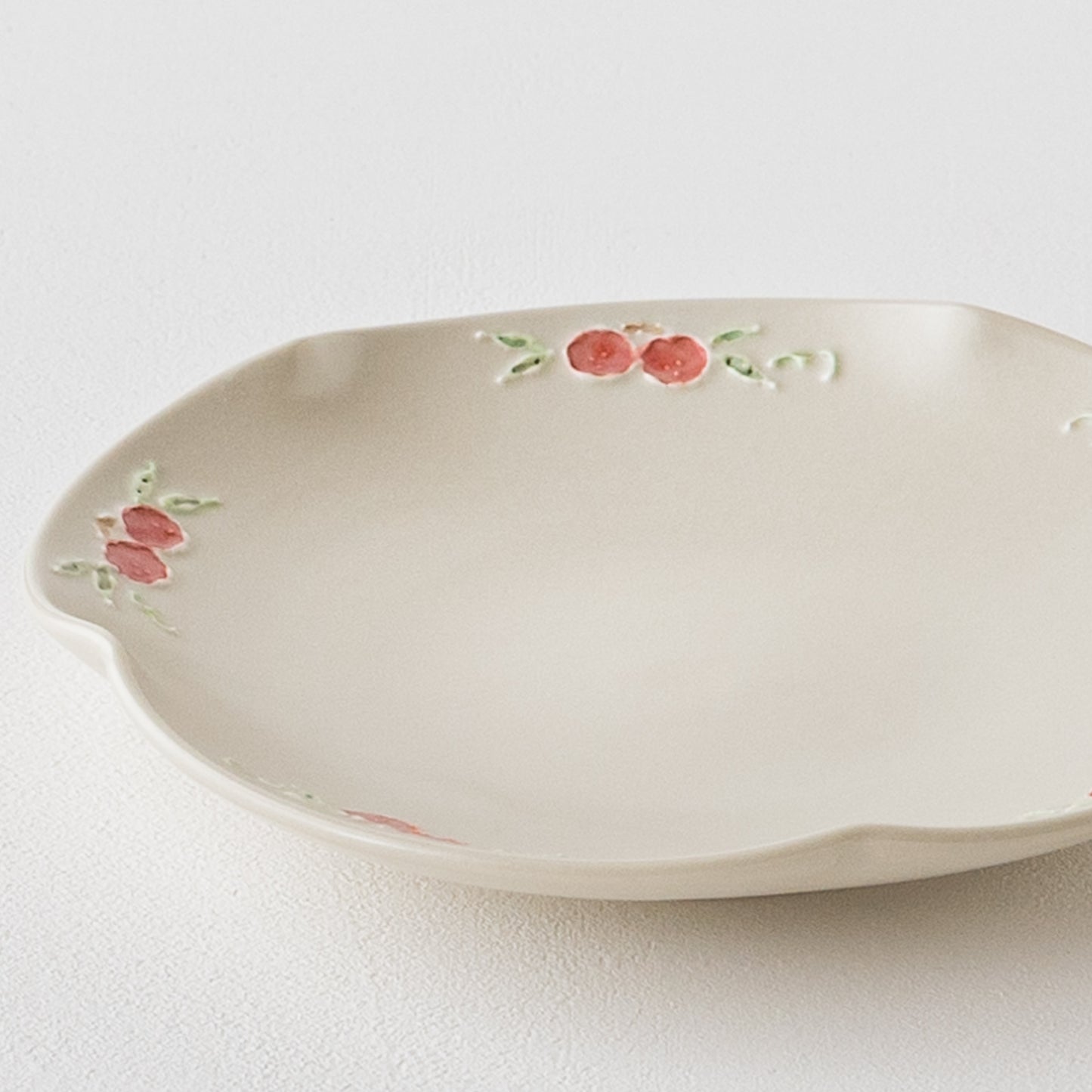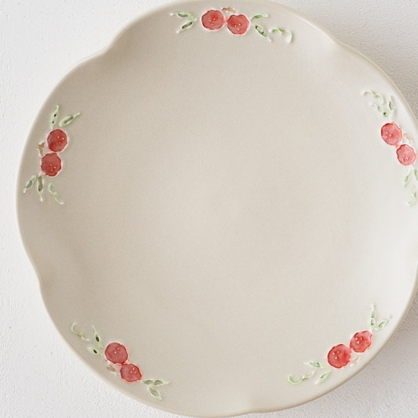 A 5-sun plate with an impressive pale and soft-hued strawberry drawn in the form of a beautiful wreath . When you look at it, you will be wrapped in a calm and gentle feeling.