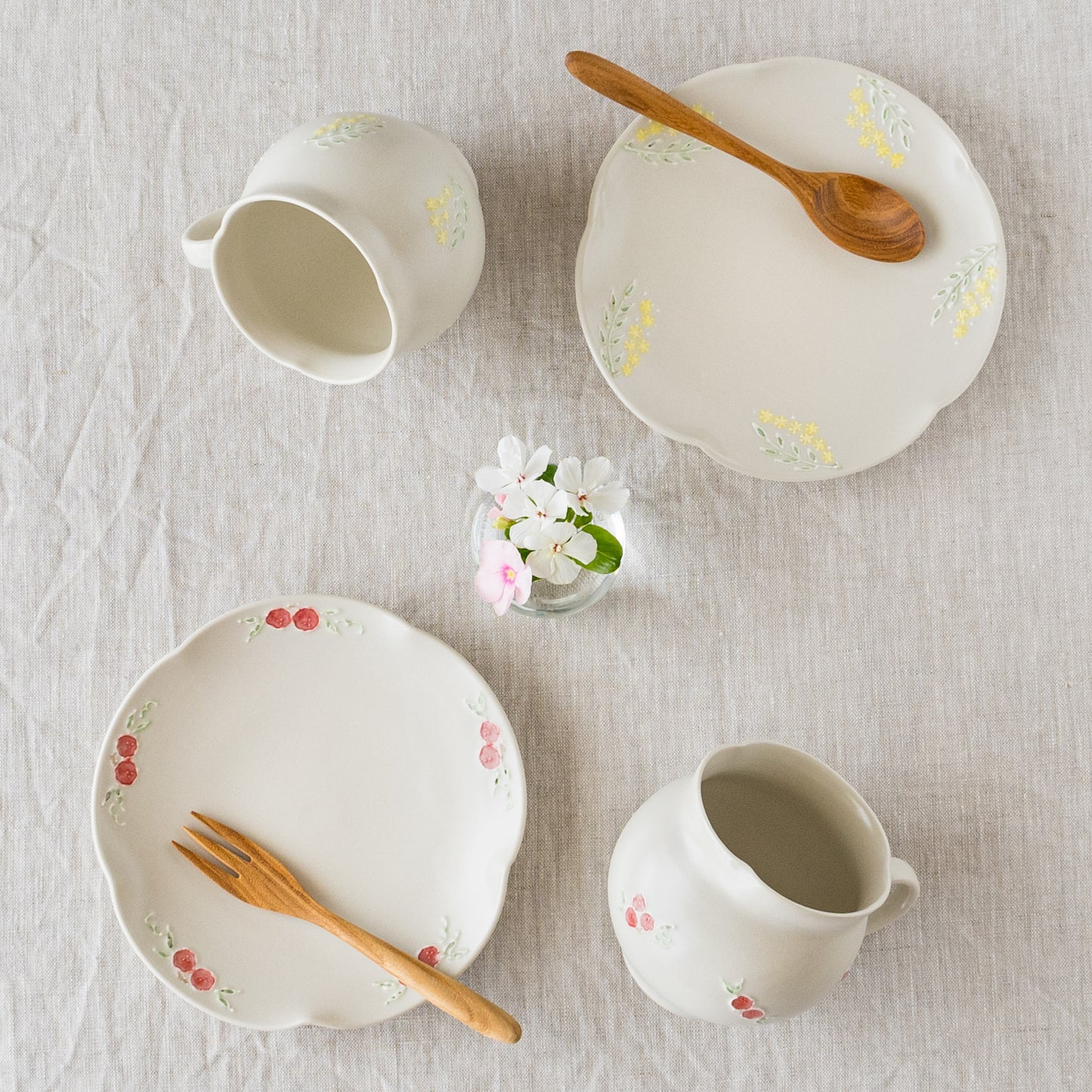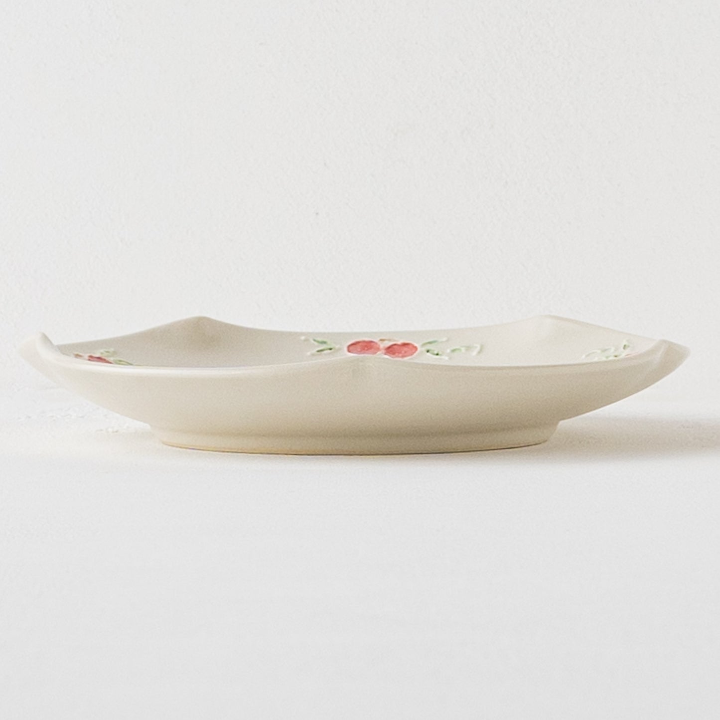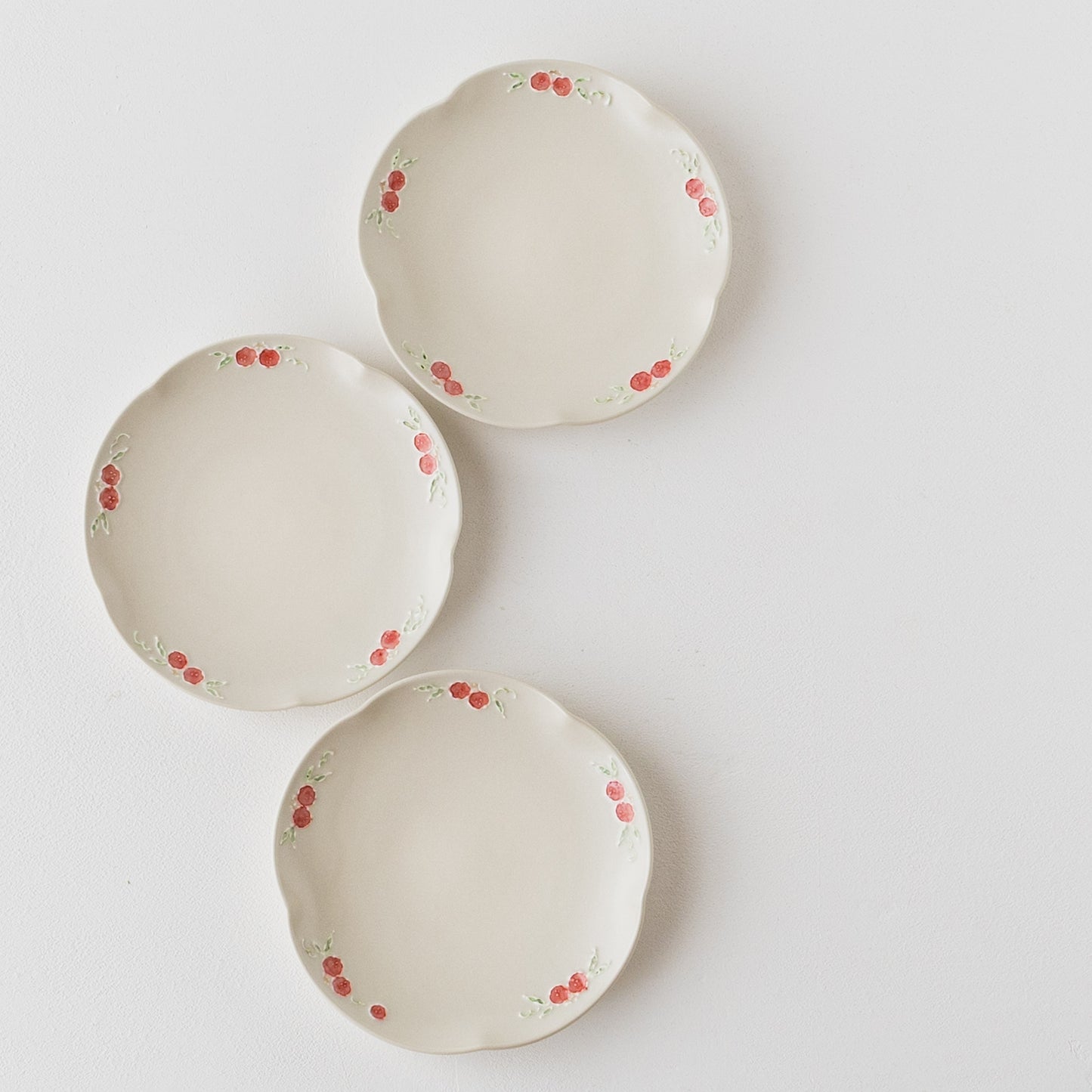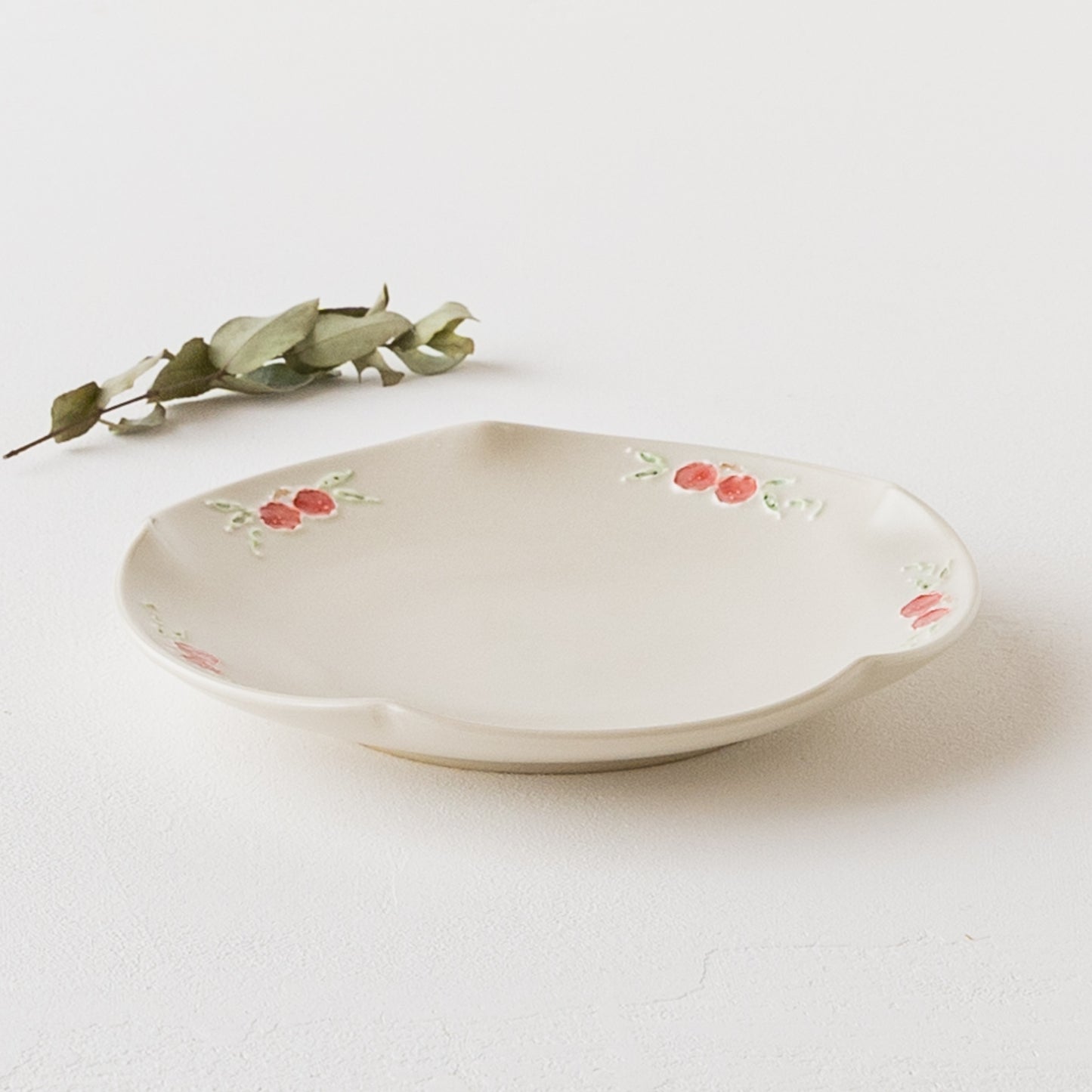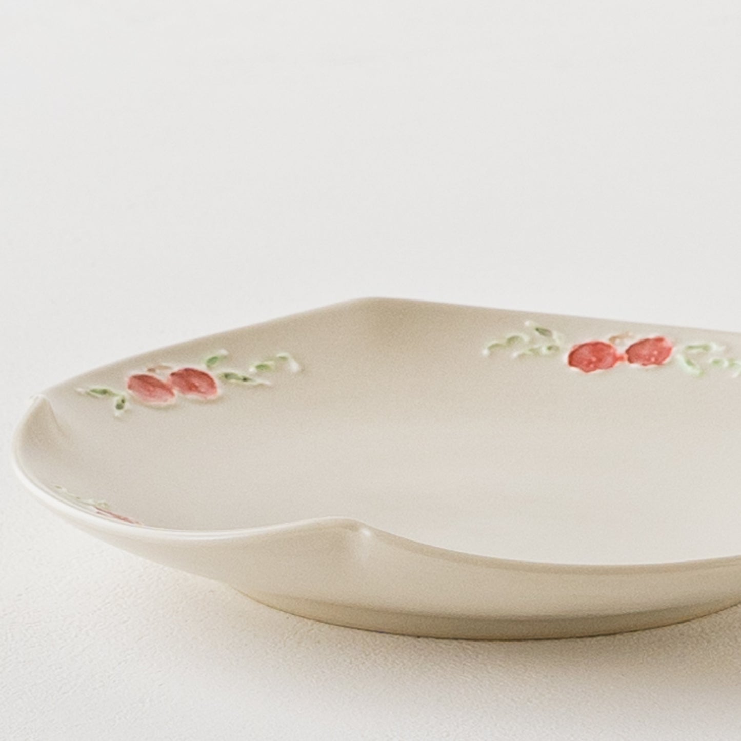 A 5-sun plate with an impressive pale and soft-hued strawberry drawn in the form of a beautiful wreath . When you look at it, you will be wrapped in a calm and gentle feeling.