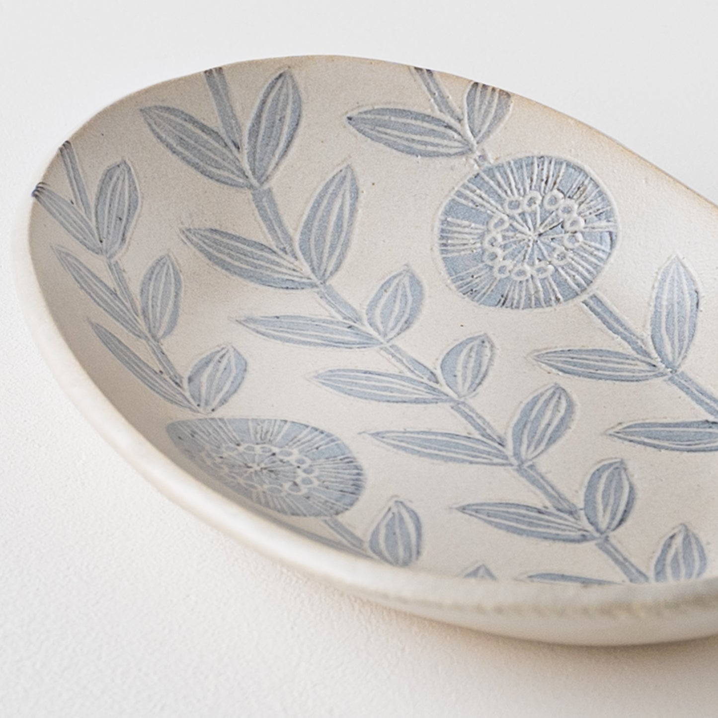 After applying the mud, a special needle is used to scrape off the flower pattern while drawing, resulting in a unique and gentle texture. The part with the flower pattern has a slightly rough texture, and you can feel the warmth of the handiwork.