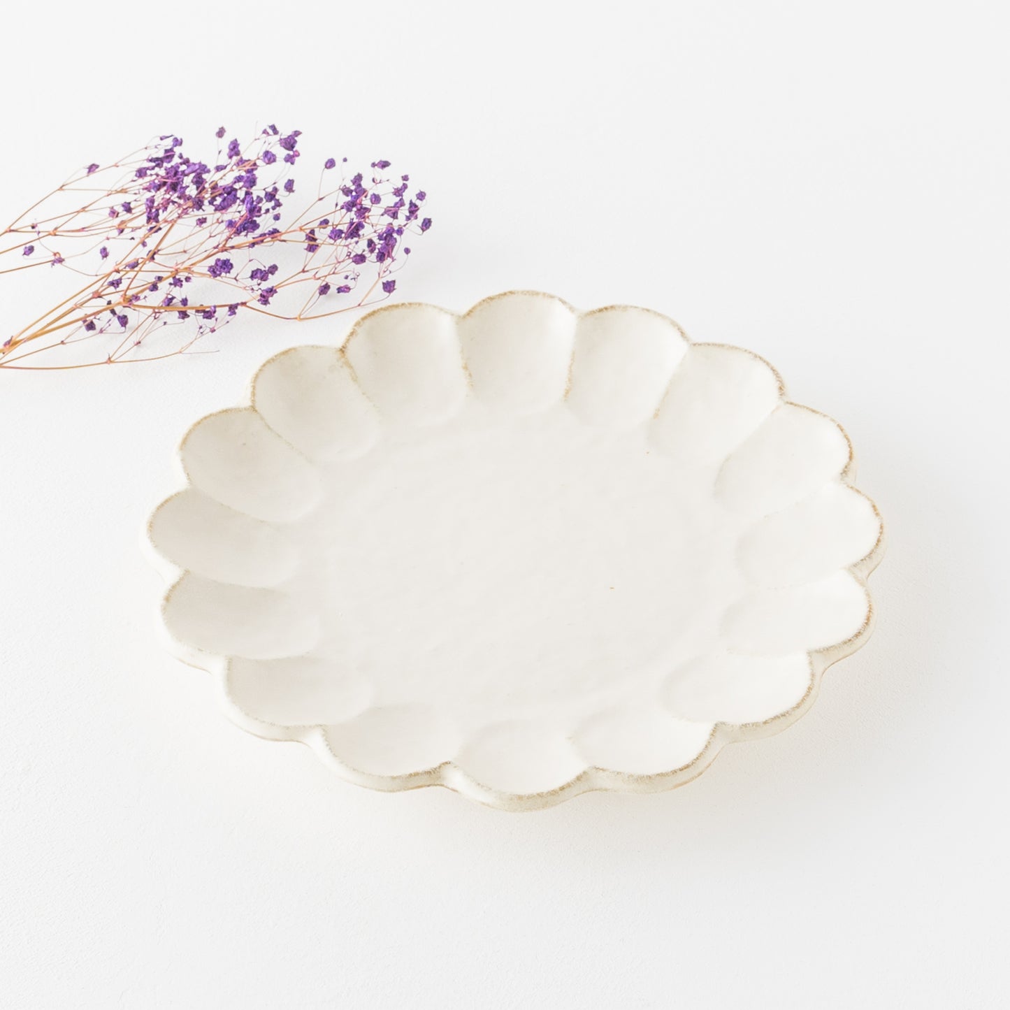 White kneaded flower plate with hand-made warmth. Although it is porcelain, it has a finish that makes you feel like earthenware. White bowls come in handy as they can be used regardless of the season or occasion.