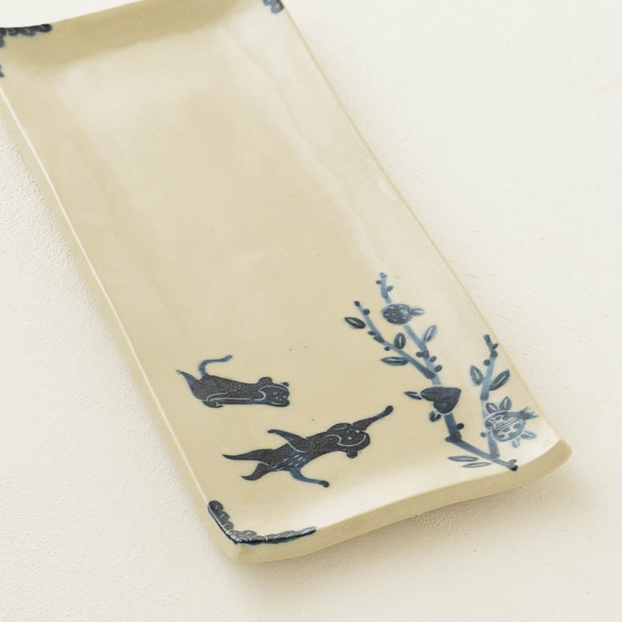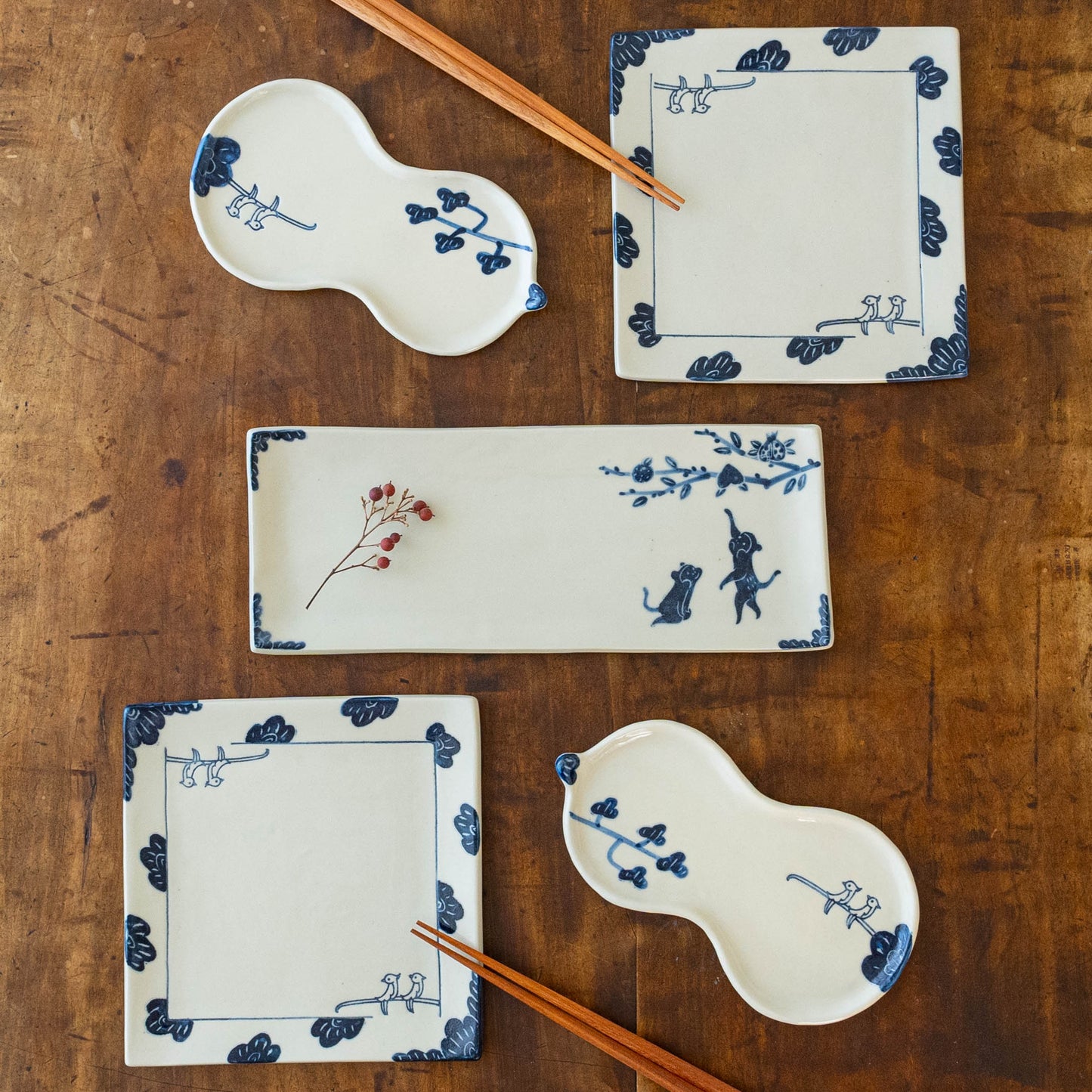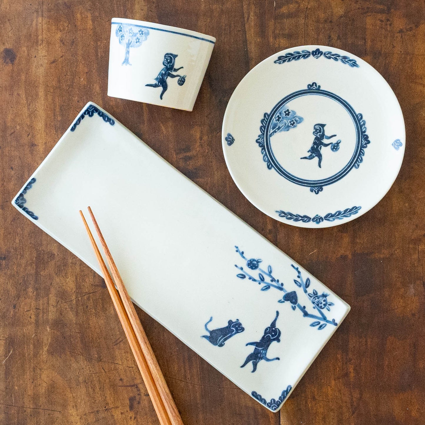 The colors, shapes, and patterns of these pottery pieces make you feel nostalgic, and just looking at them gives you a mysterious charm that makes you feel at ease. The indigo color, like ink, and the animal and flower patterns that appear in old Japanese picture books make you feel comfortable.