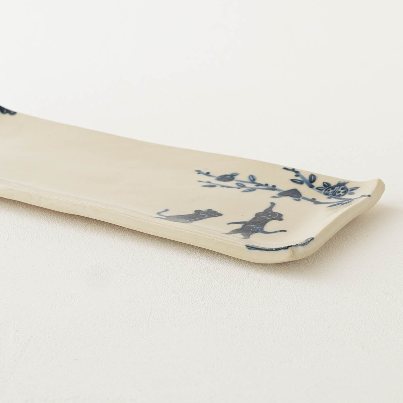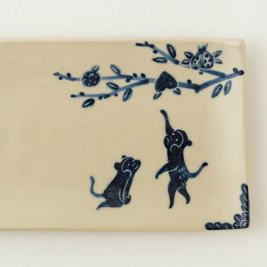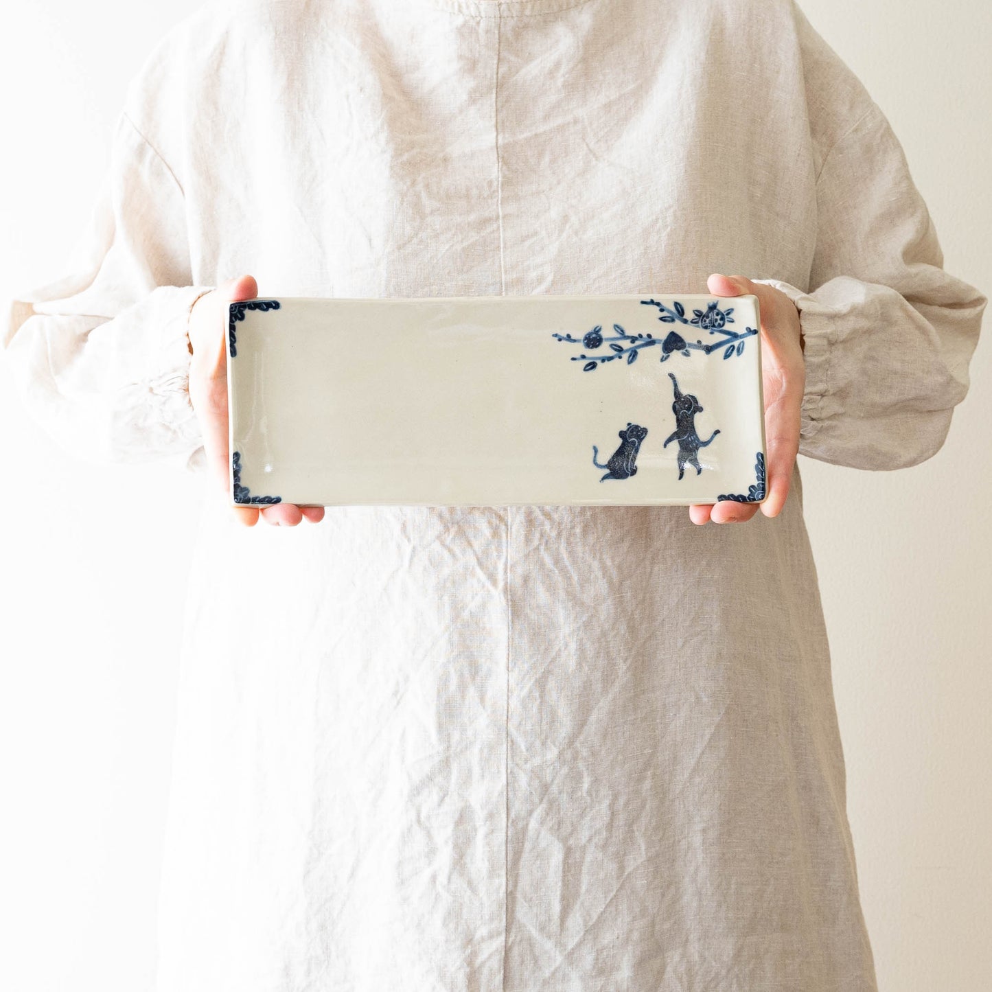 The colors, shapes, and patterns of these pottery pieces make you feel nostalgic, and just looking at them gives you a mysterious charm that makes you feel at ease. The indigo color, like ink, and the animal and flower patterns that appear in old Japanese picture books make you feel comfortable.