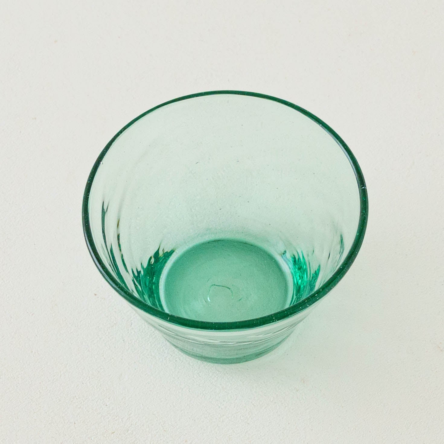 Recycled glass is made from discarded bottles and old glass windows. Used sake bottles are carefully washed, the labels removed, and melted in a furnace. Each piece is spun using the glassblowing technique, and is reborn as a piece that exudes warmth and a soft, gentle glow.