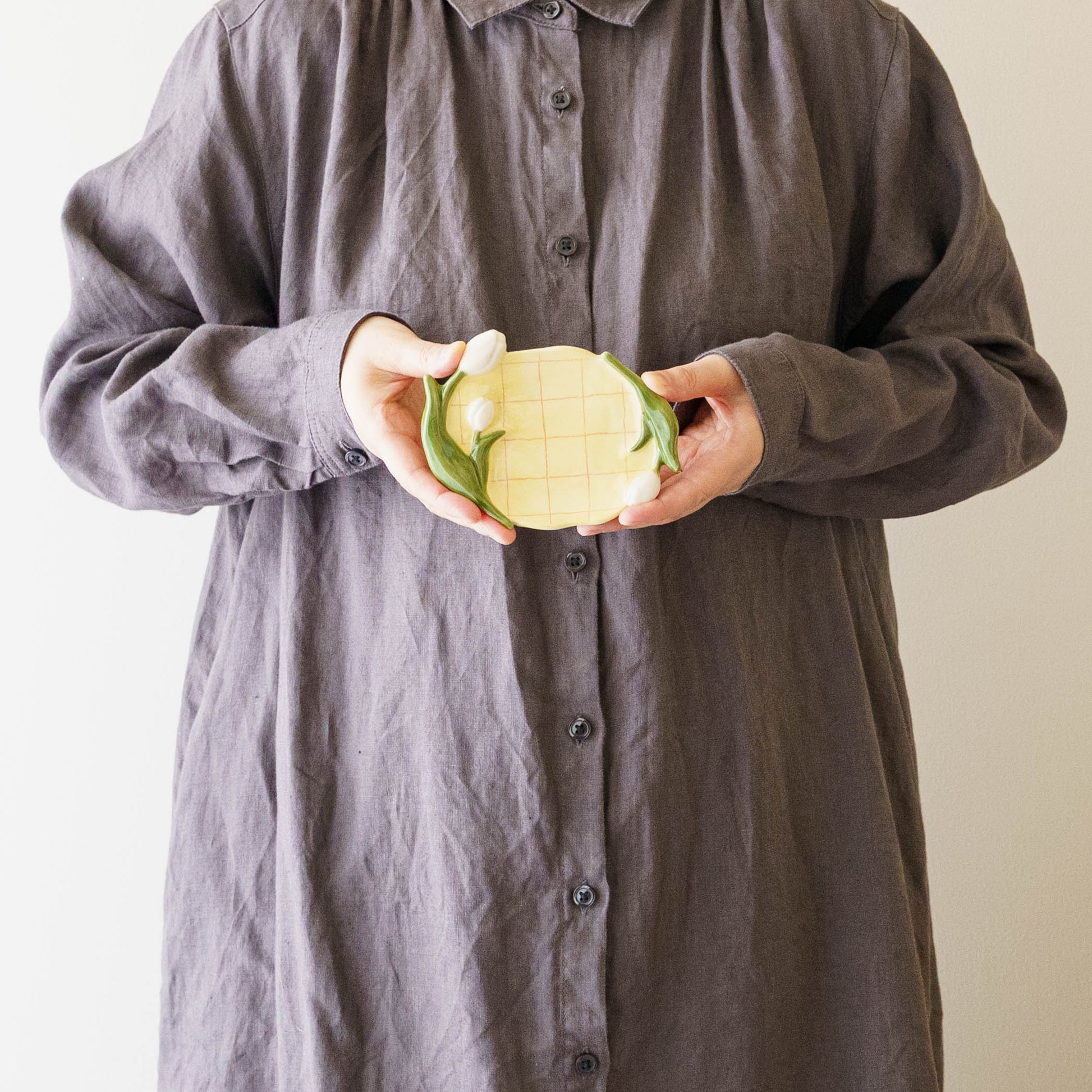 The plump, three-dimensional tulips make you want to touch them with your fingertips. Every time you trace the contours, the quiet memory of the handiwork is embodied in these vessels. They are not just something to look at, but something you will want to touch, use, and keep close by.