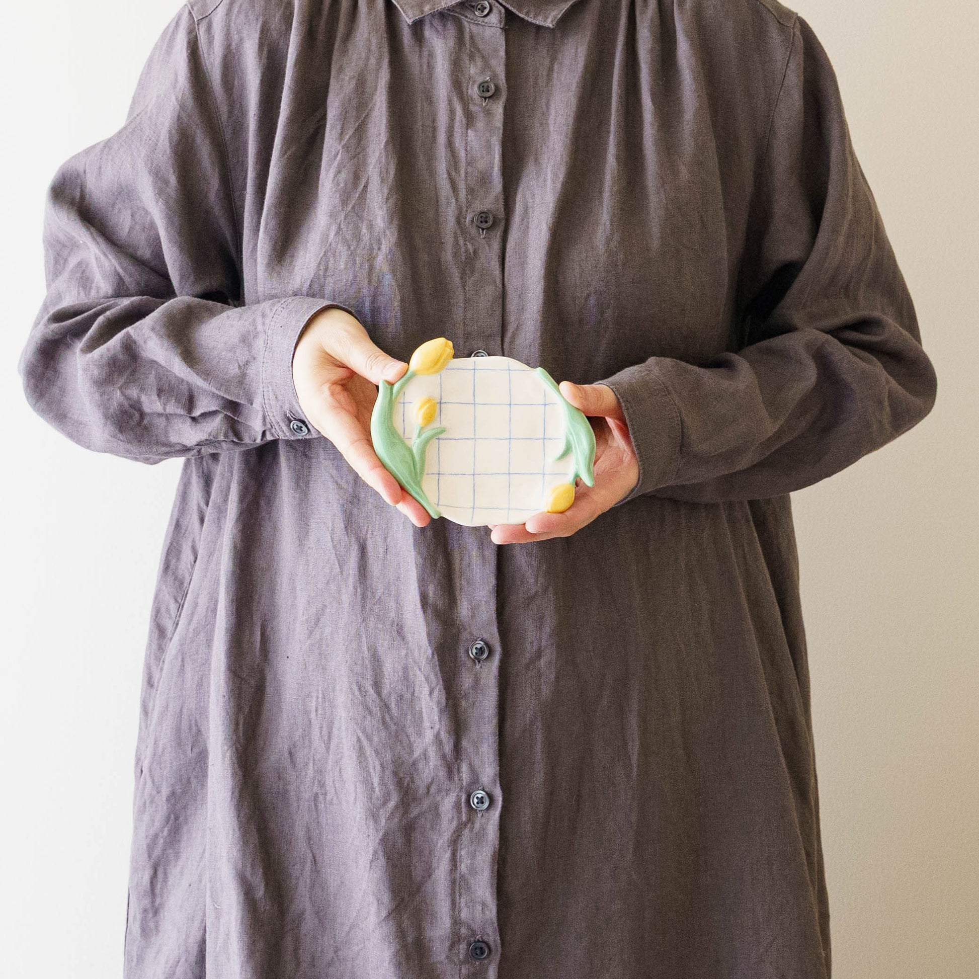 The plump, three-dimensional tulips make you want to touch them with your fingertips. Every time you trace the contours, the quiet memory of the handiwork is embodied in these vessels. They are not just something to look at, but something you will want to touch, use, and keep close by.