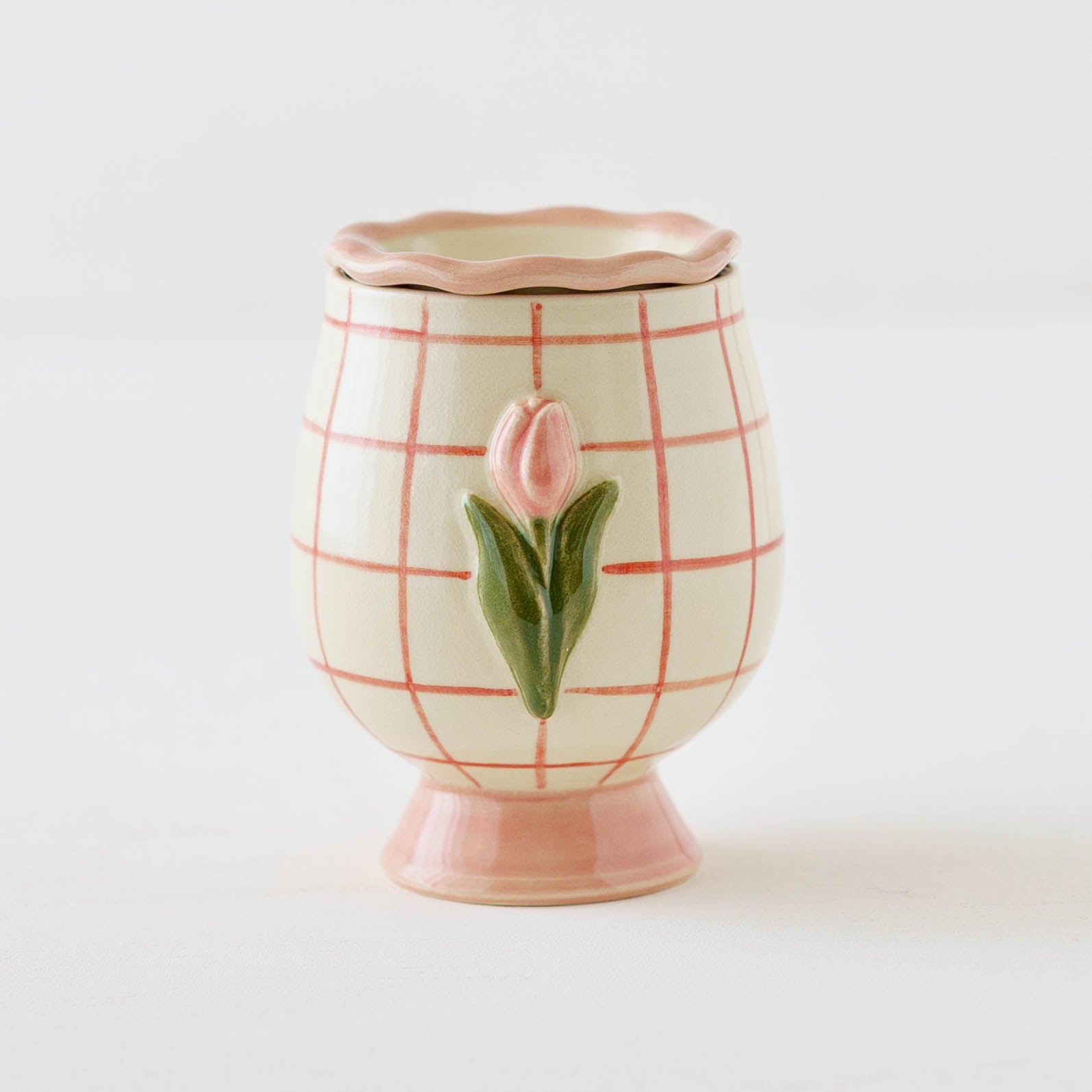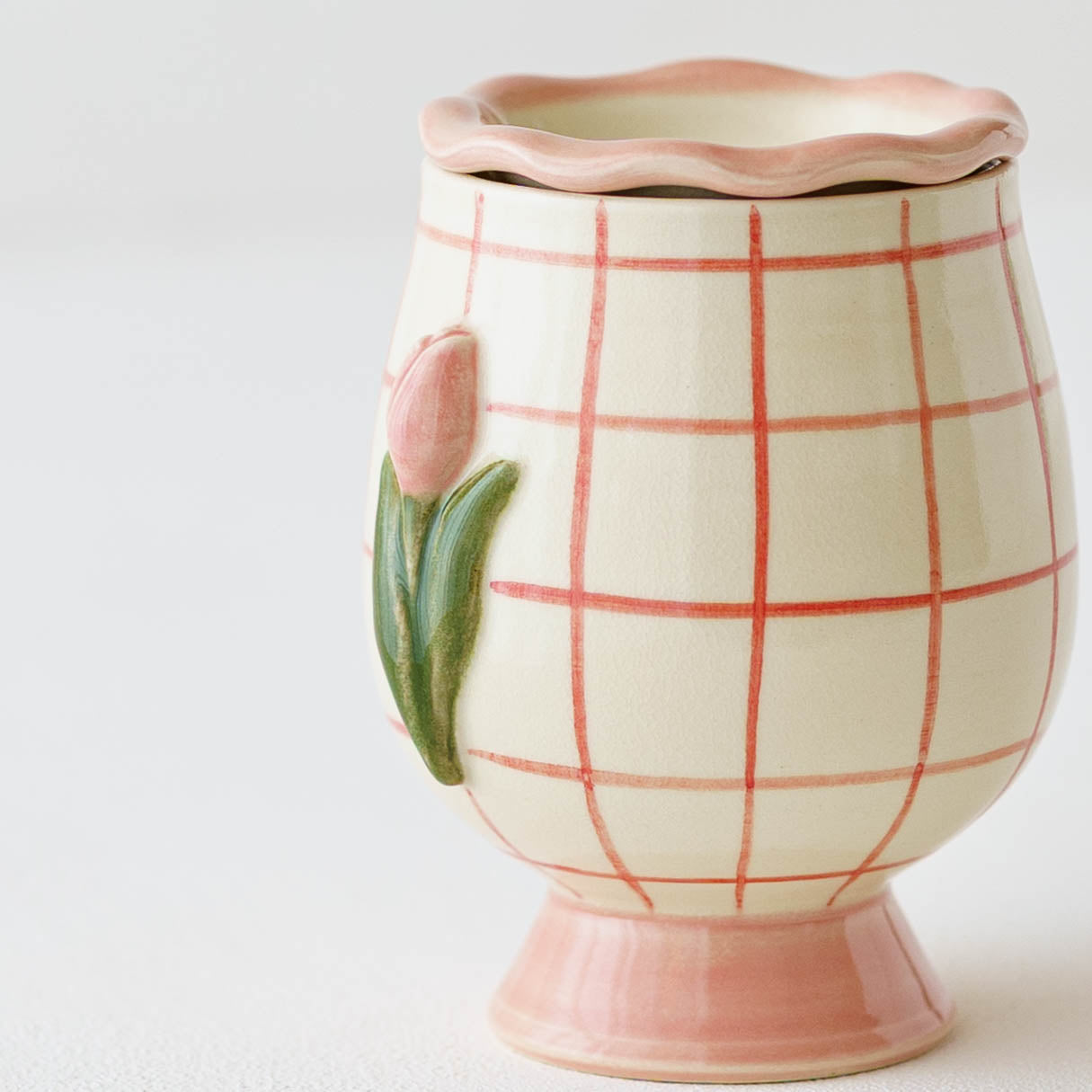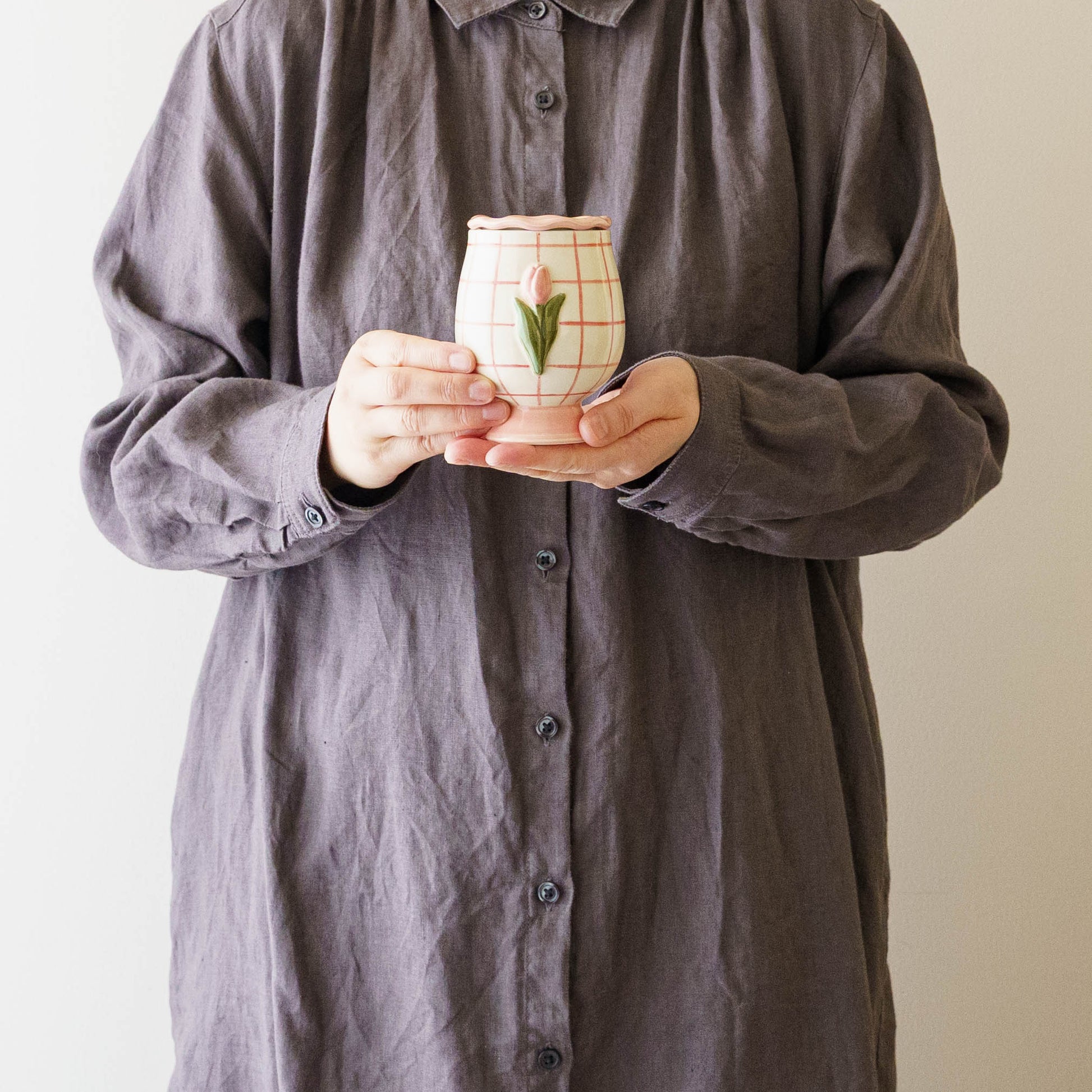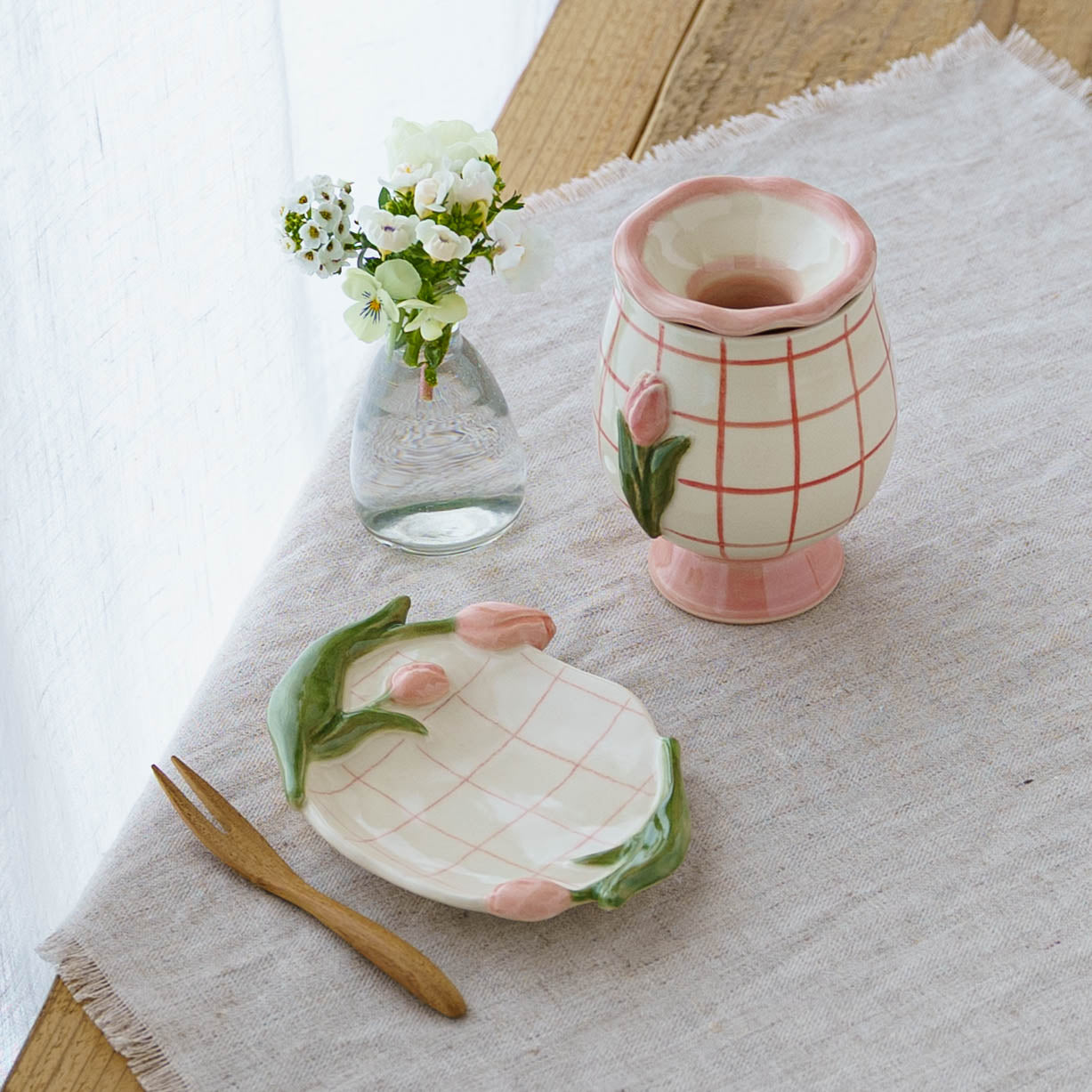 The plump, three-dimensional tulips make you want to touch them with your fingertips. Every time you trace the contours, the quiet memory of the handiwork is embodied in these vessels. They are not just something to look at, but something you will want to touch, use, and keep close by.