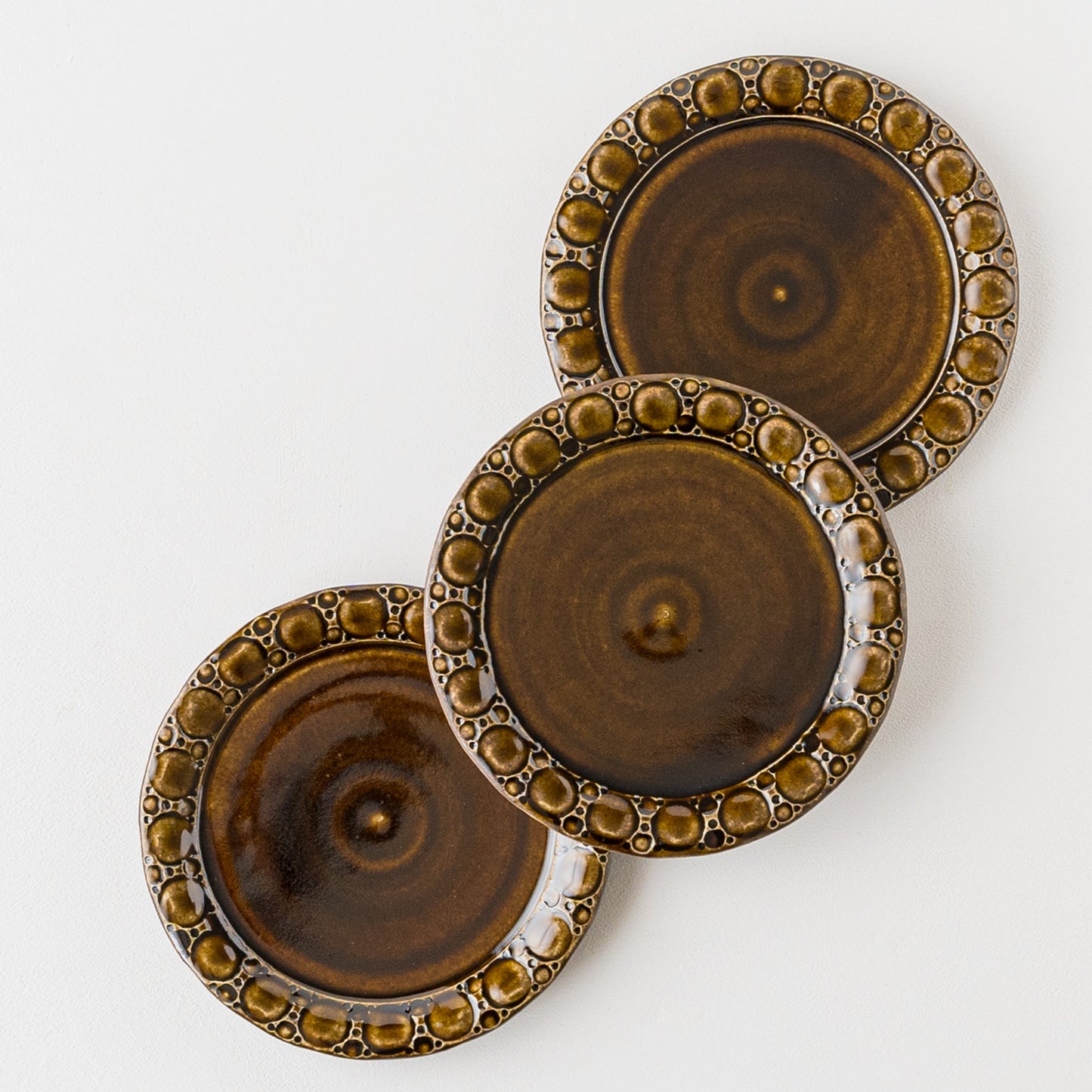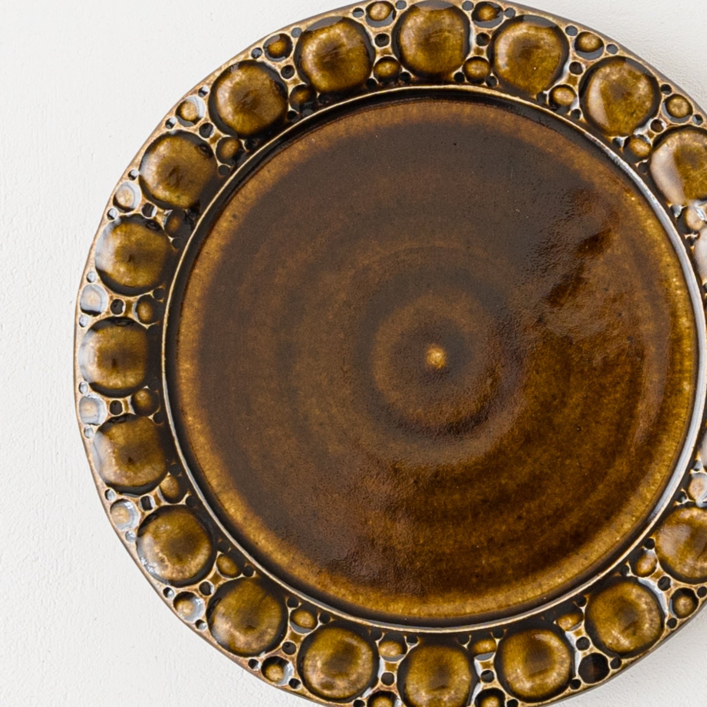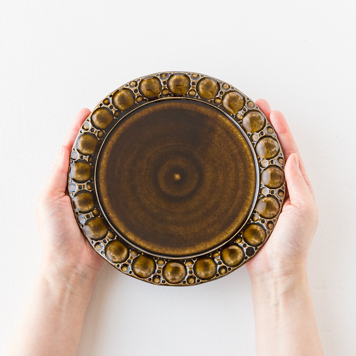 Bread dish round pattern dark brown glaze | Ruriame Koubou