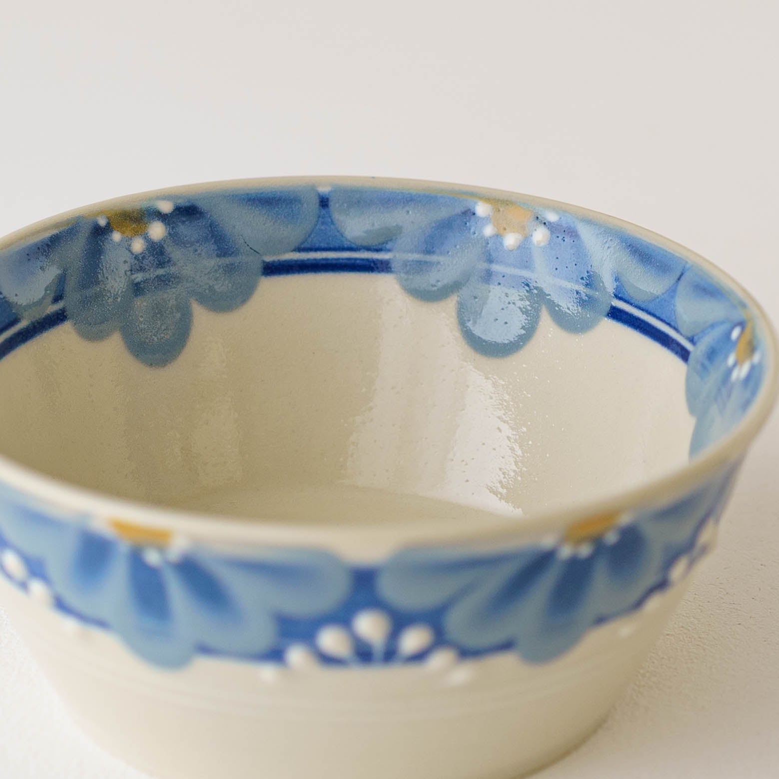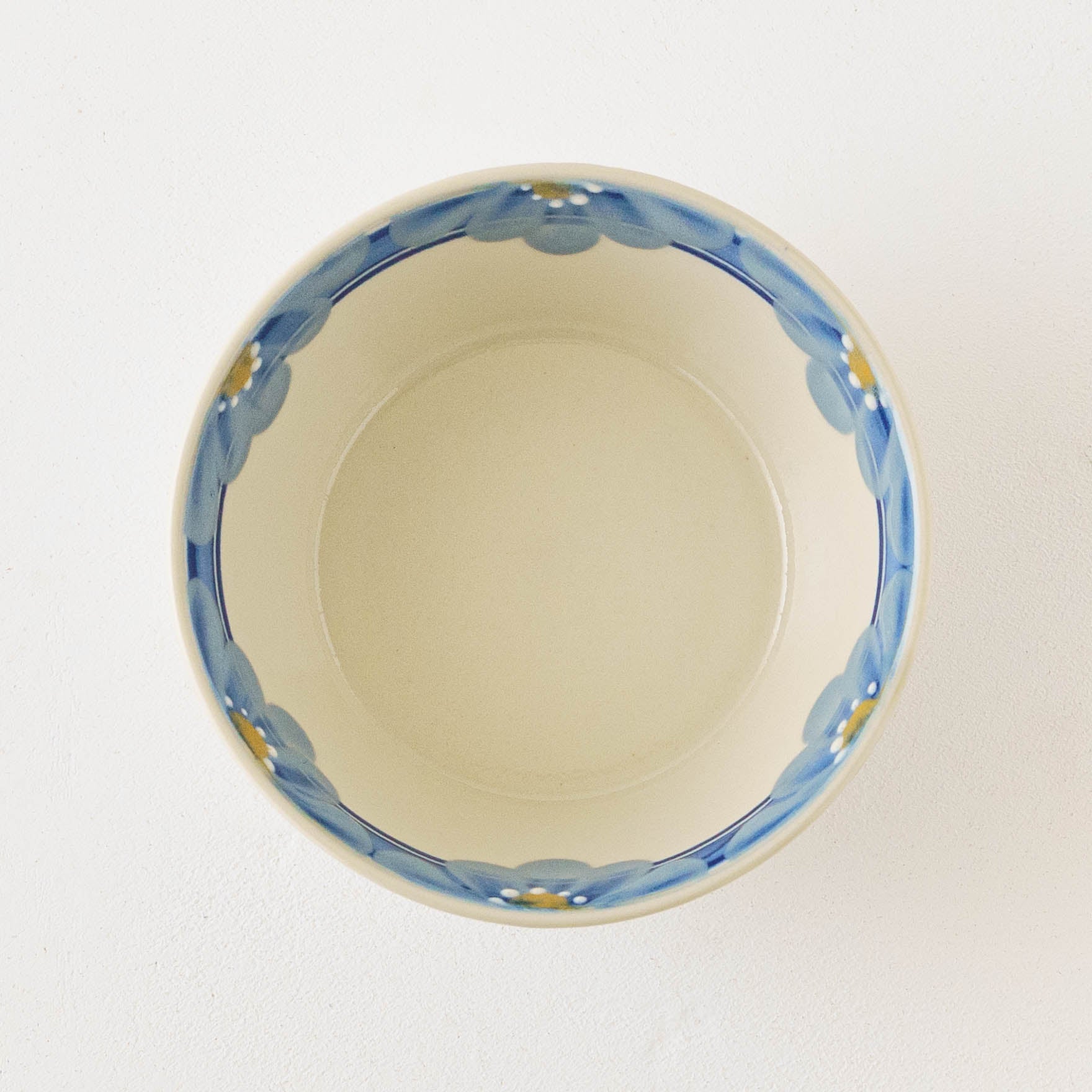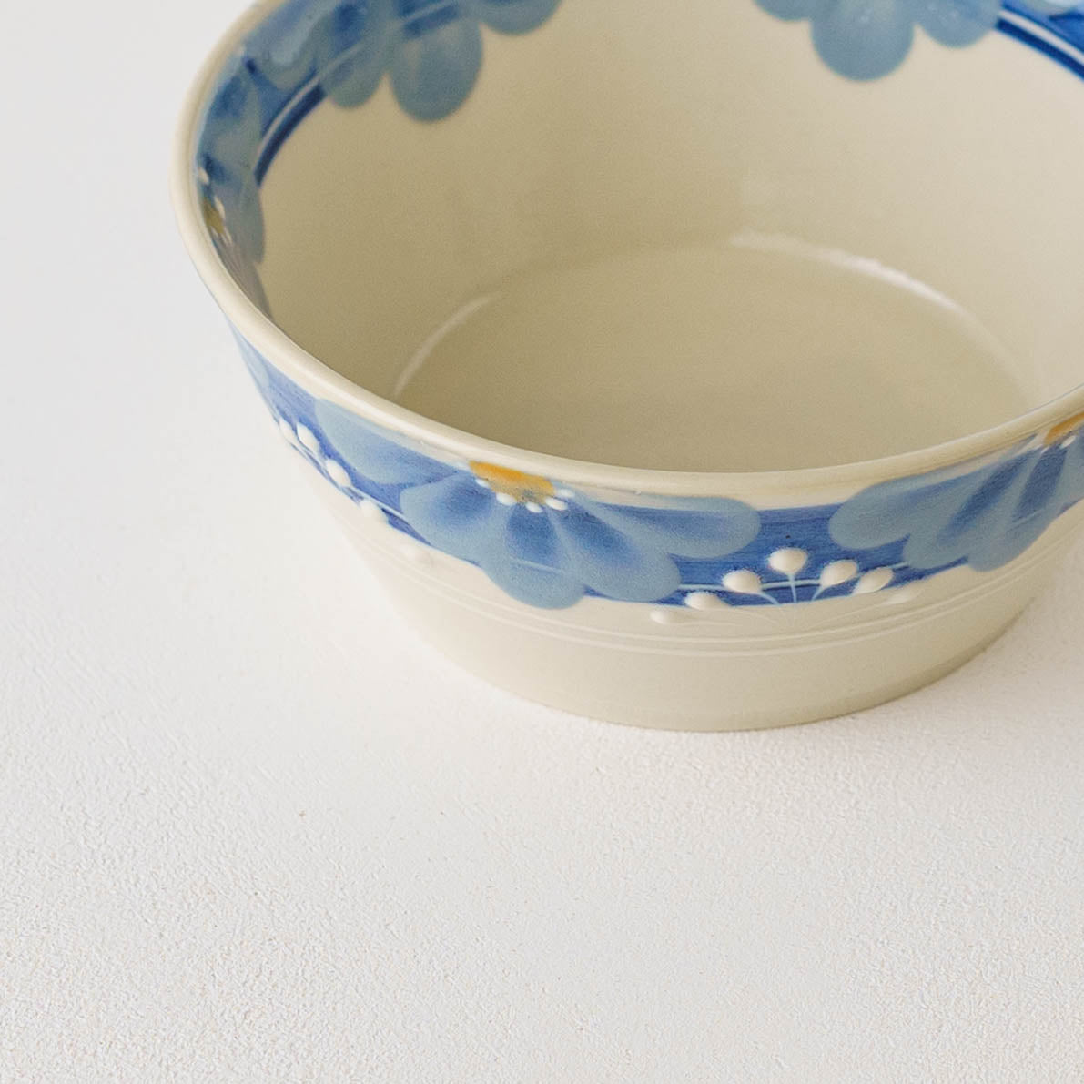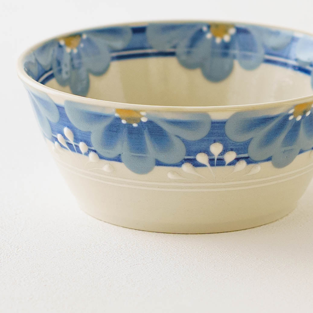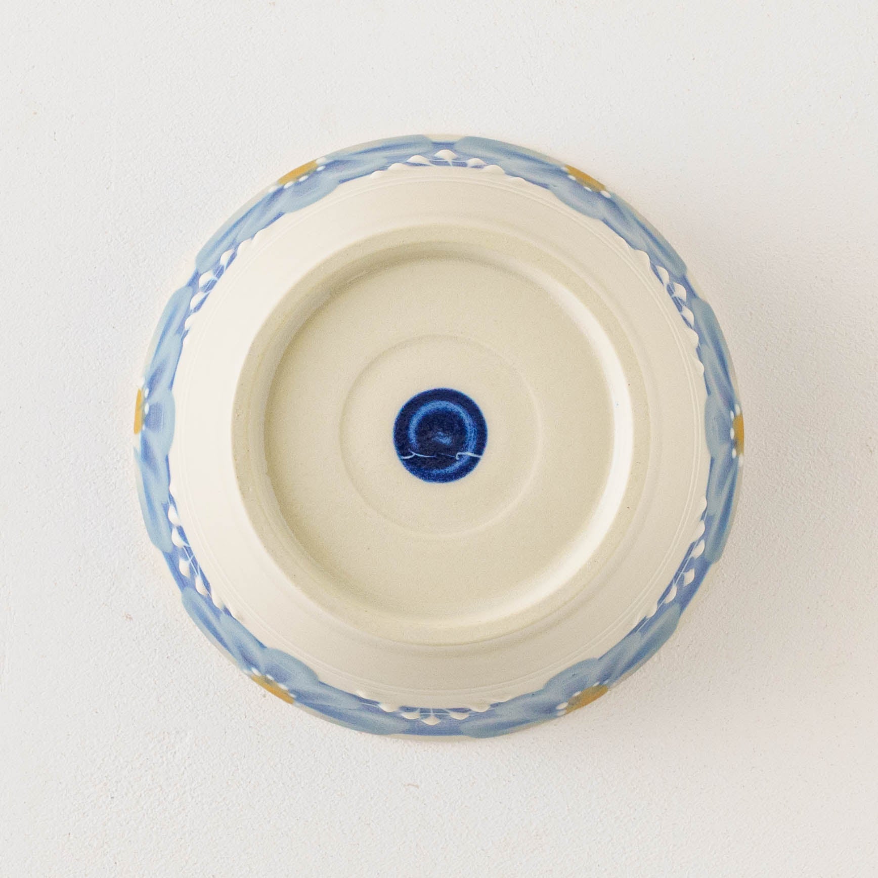 アールデコ調のレトロな絵付けは、凛としていて、どこかあたたかみのある愛らしさを感じます。淡くやさしい色合いは柚子肌釉によるもの。柚子の皮のような細やかな凹凸が光をやわらかく受け止め、うつわ全体に奥行きとぬくもりをもたらしています。