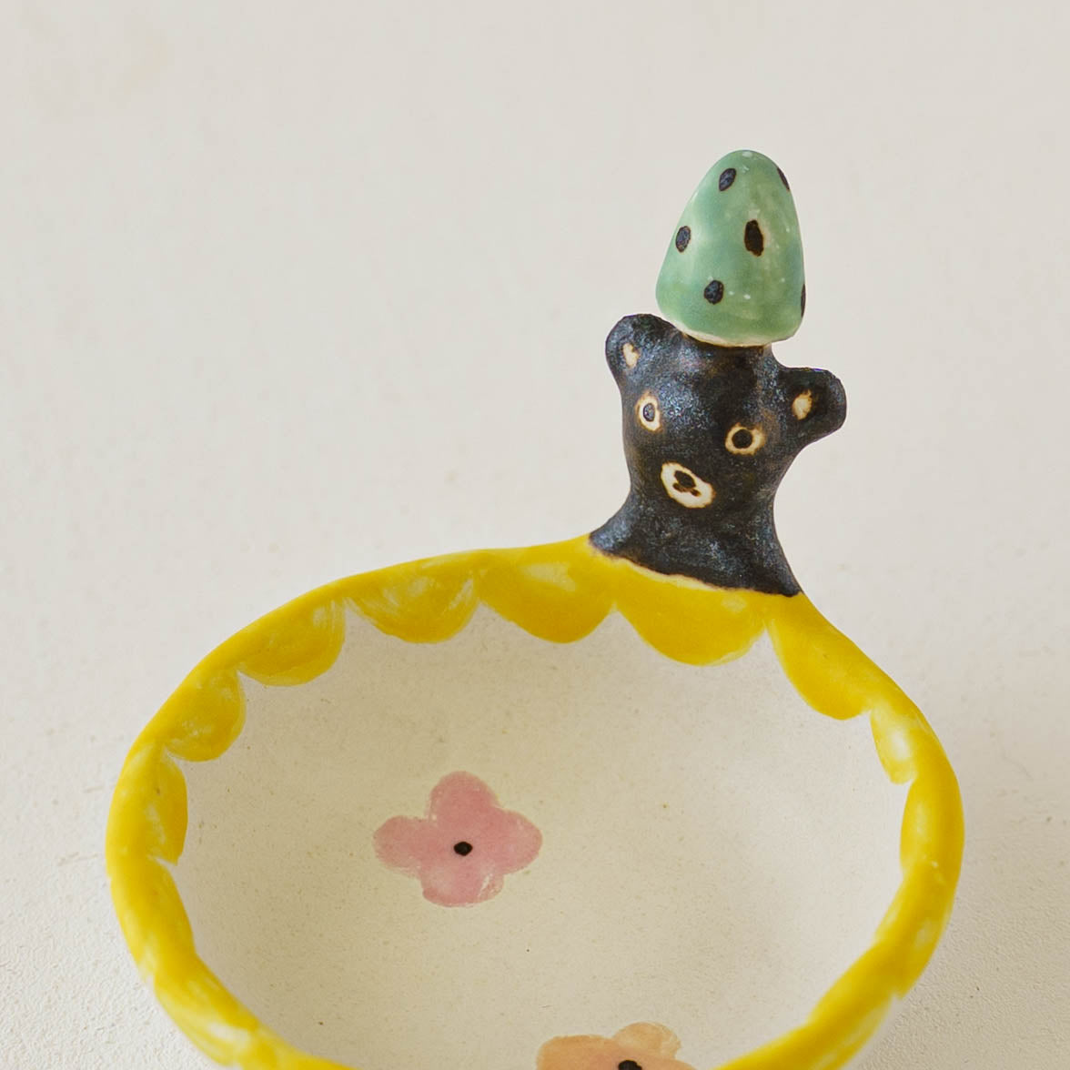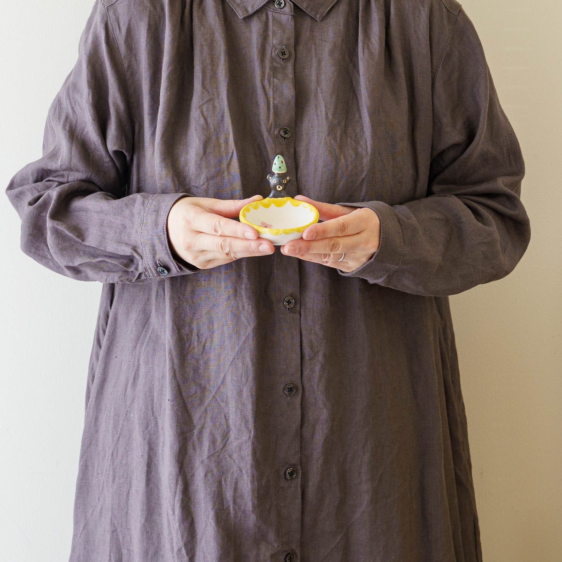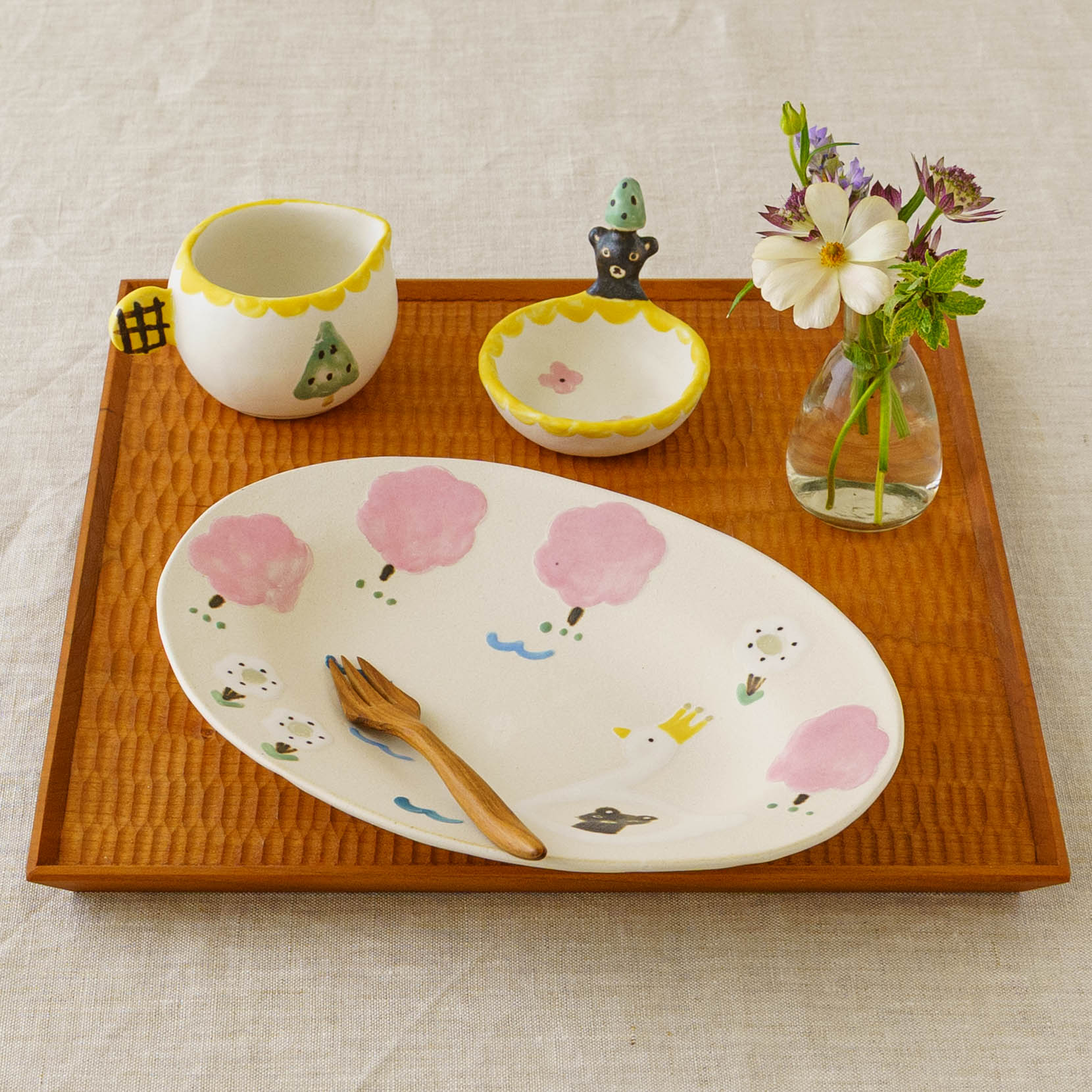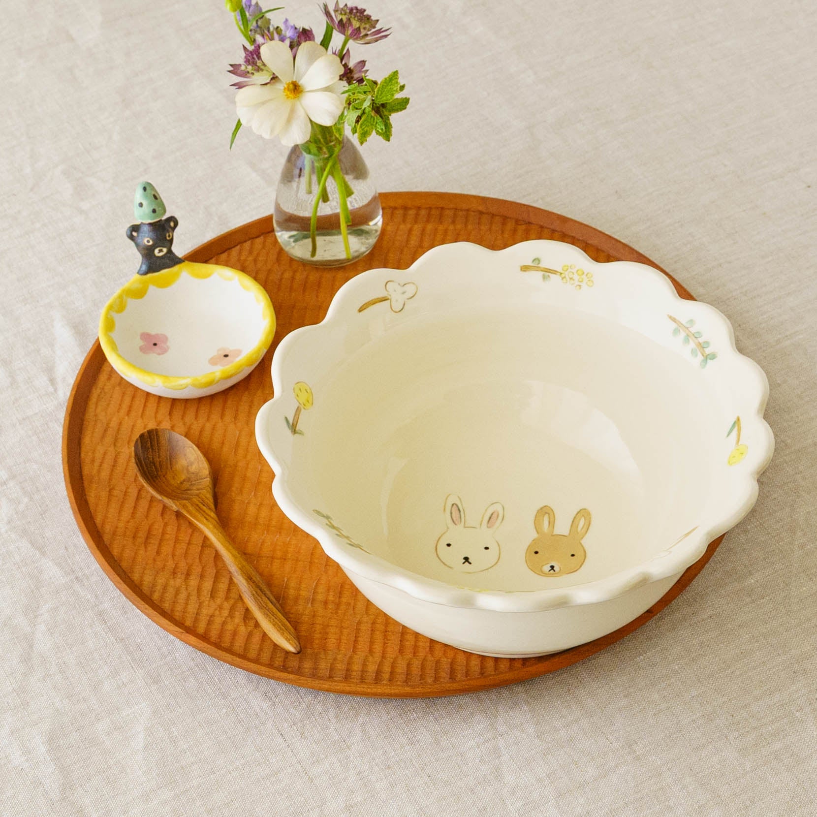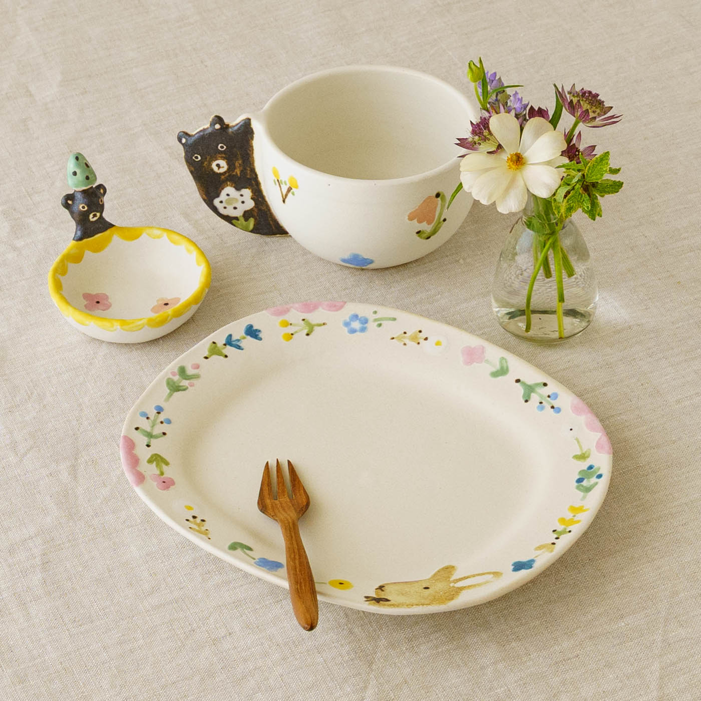 手しごとのぬくもりや安らぎを感じる色合い、風合い、思わず微笑んでしまう動植物の絵柄に気持ちがふんわり安らぎます。小さな幸せをそっと届けてくれるうつわです。