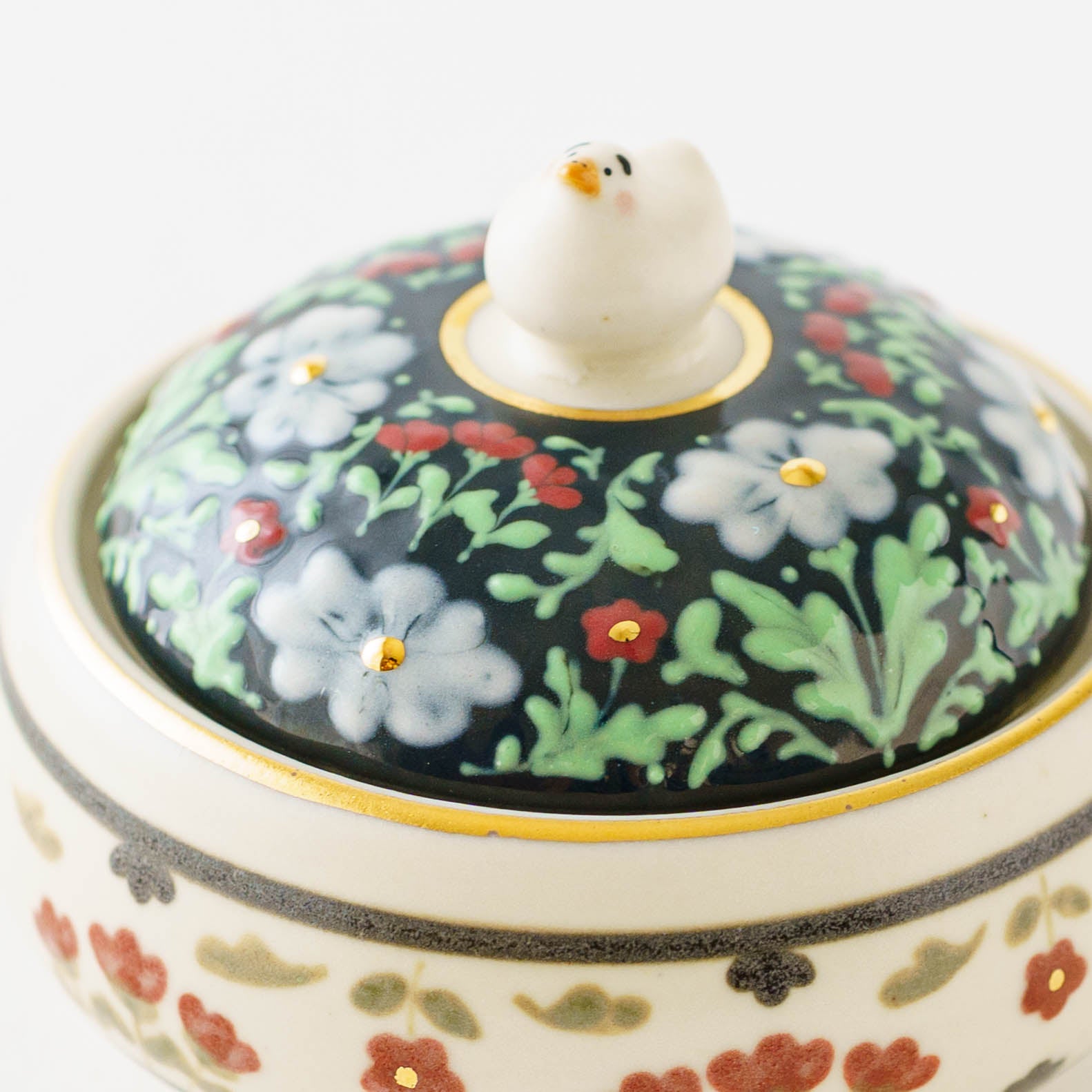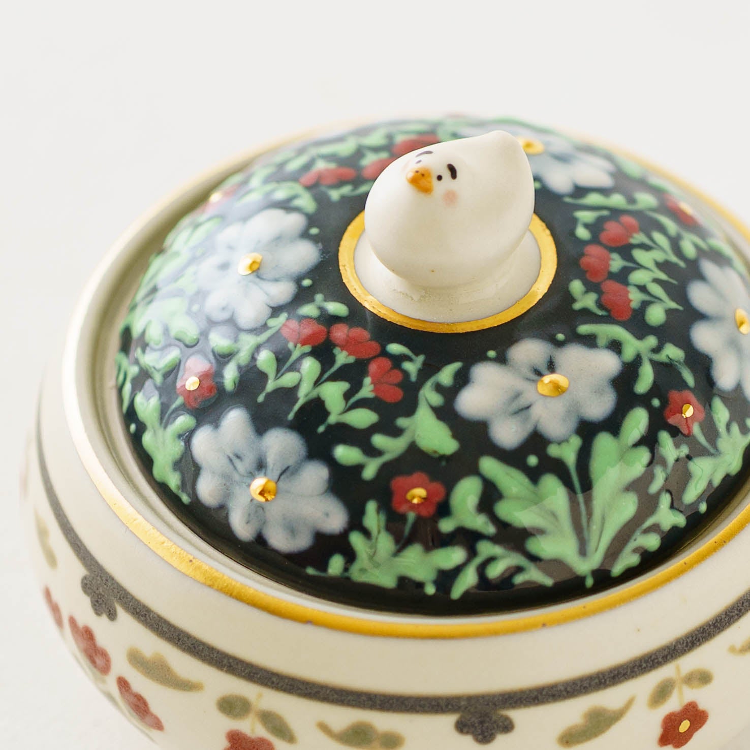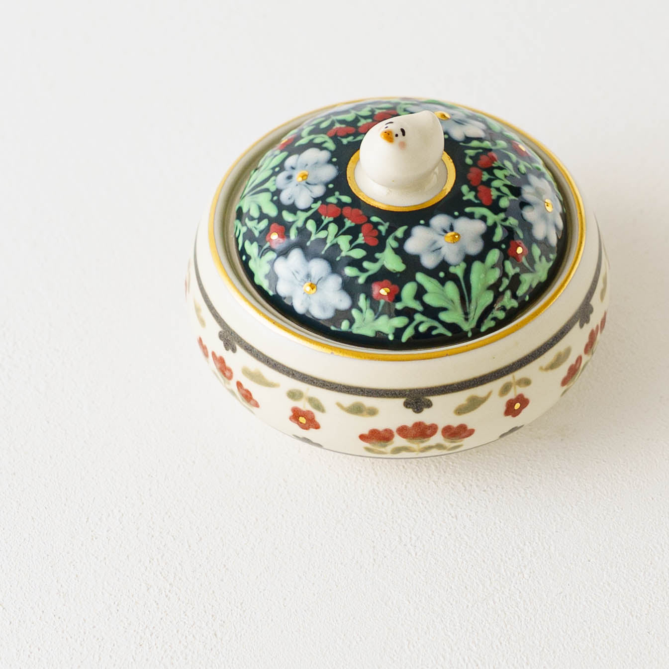 繊細かつ大胆な構図に目を見張るスリップウェアには息をのむ美しさが宿り、淡くやさしい風合いの和紙染めのアヒルちゃんたちは見る人の心をやさしく癒してくれます。金彩が上品に煌めくレリーフシリーズはまた異なる華やかさを放ち、ひとりの作り手から生まれたとは思えないほど、多彩な物語を奏でています。