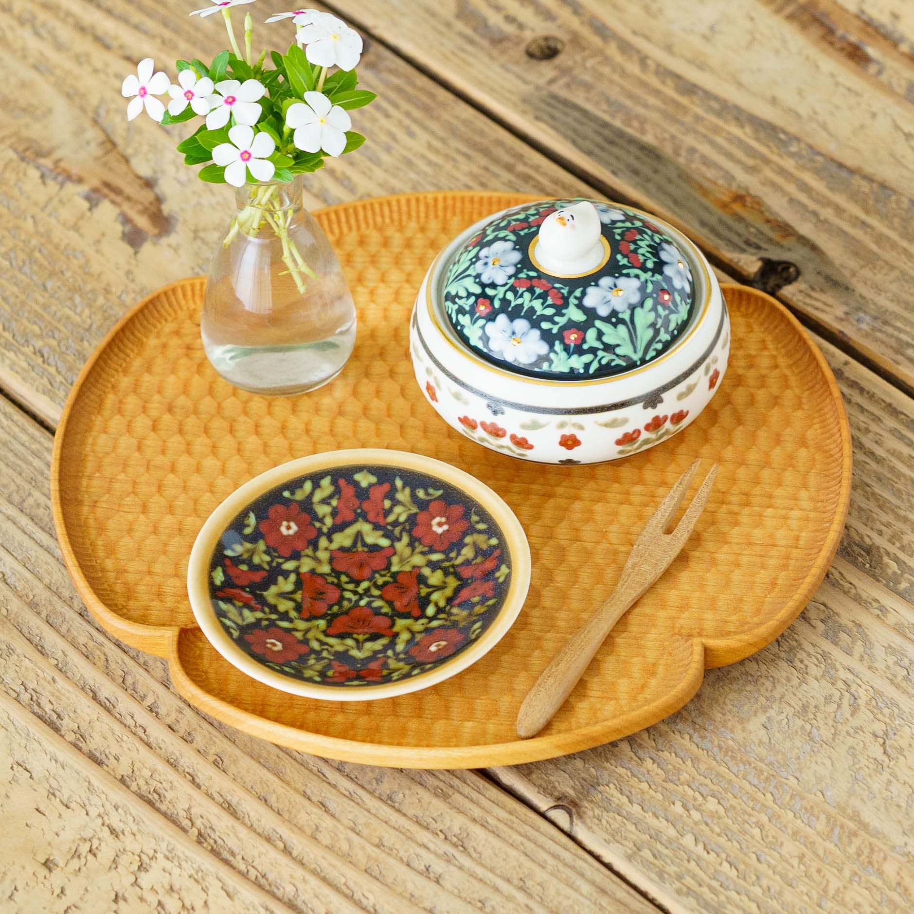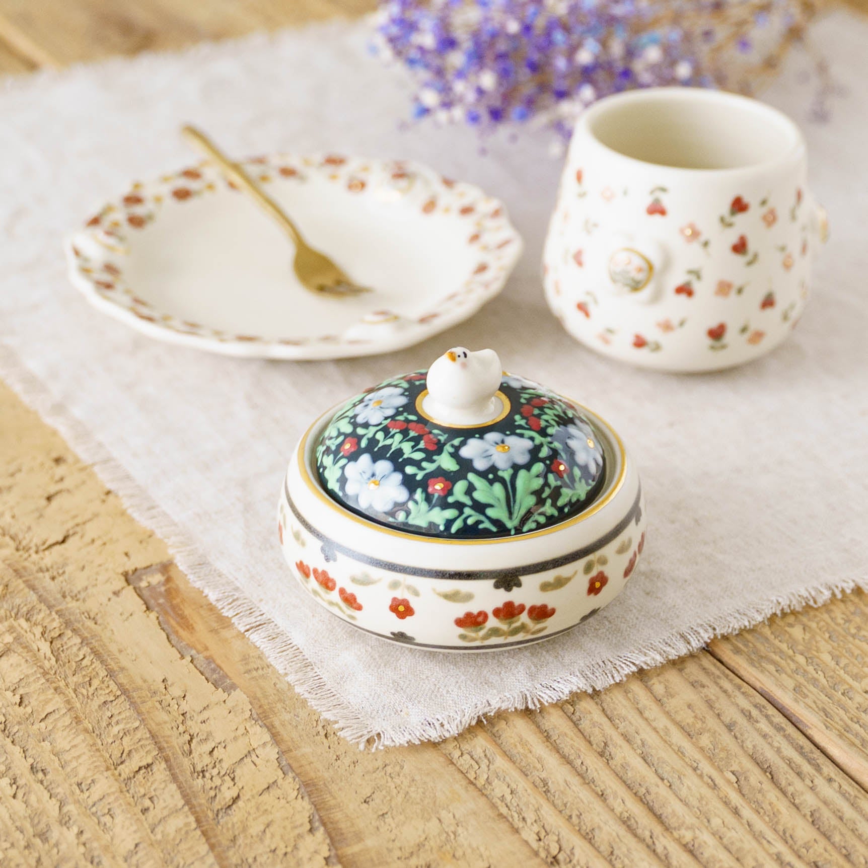 落ち着きのある色合いに、モダンでたおやかな佇まい。どこか懐かしさを感じさせる雰囲気ながら、見るたびに新しい発見を運んでくれます。日々の食卓にそっと並べるだけで、自然と心がほどけ、穏やかで幸せな時を運んでくれます。