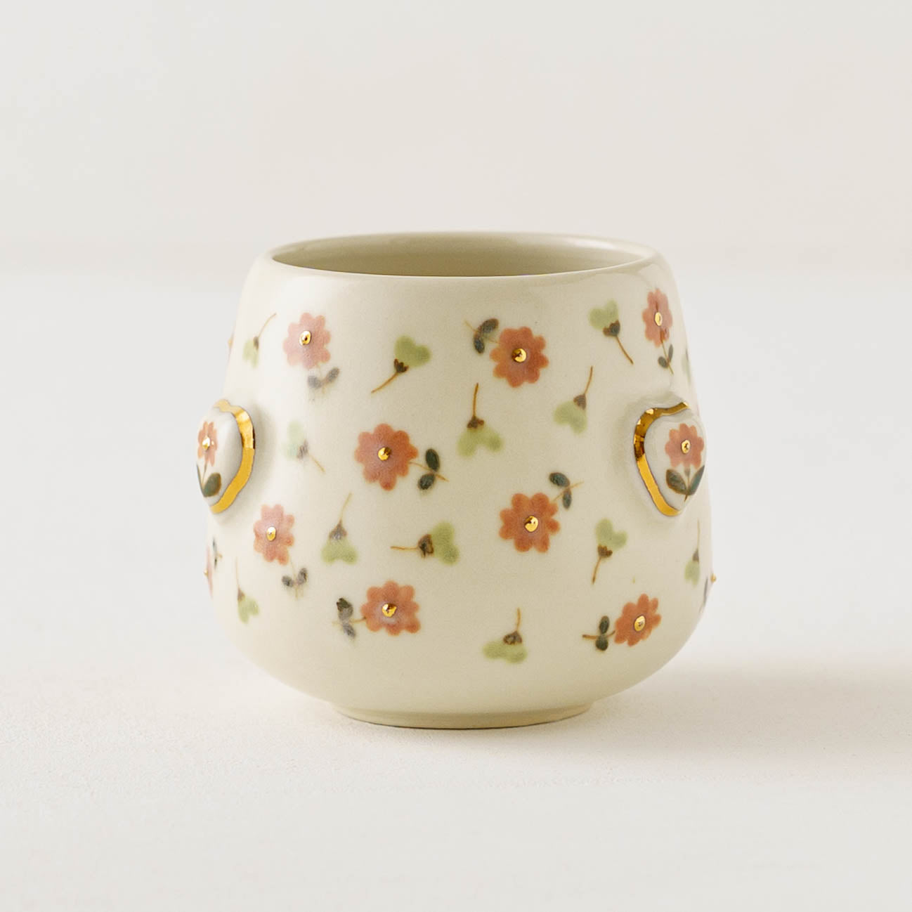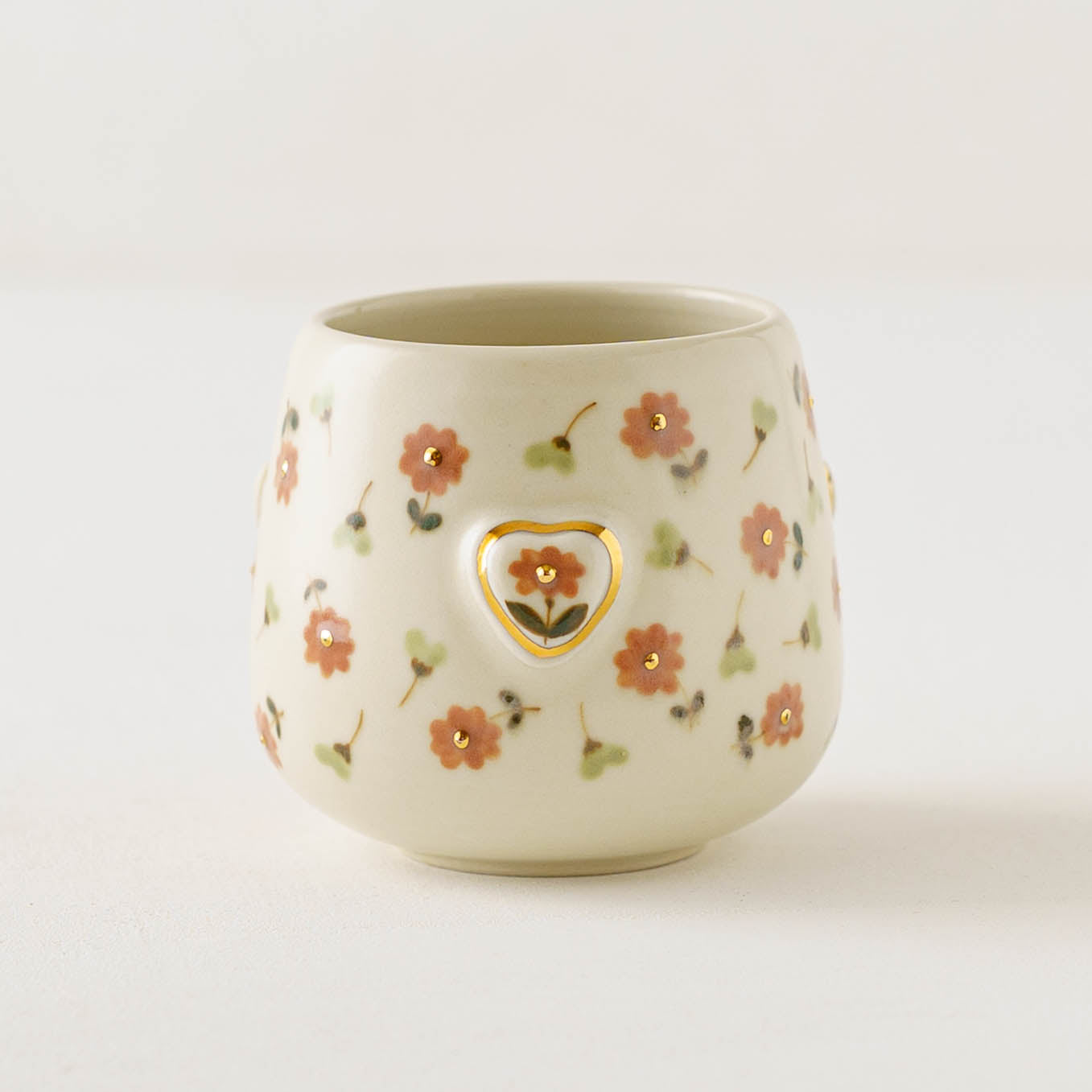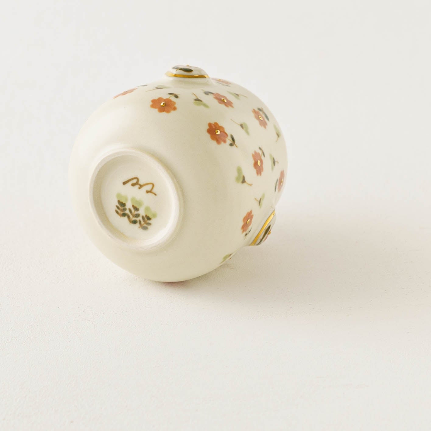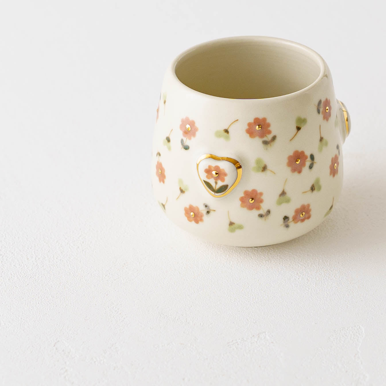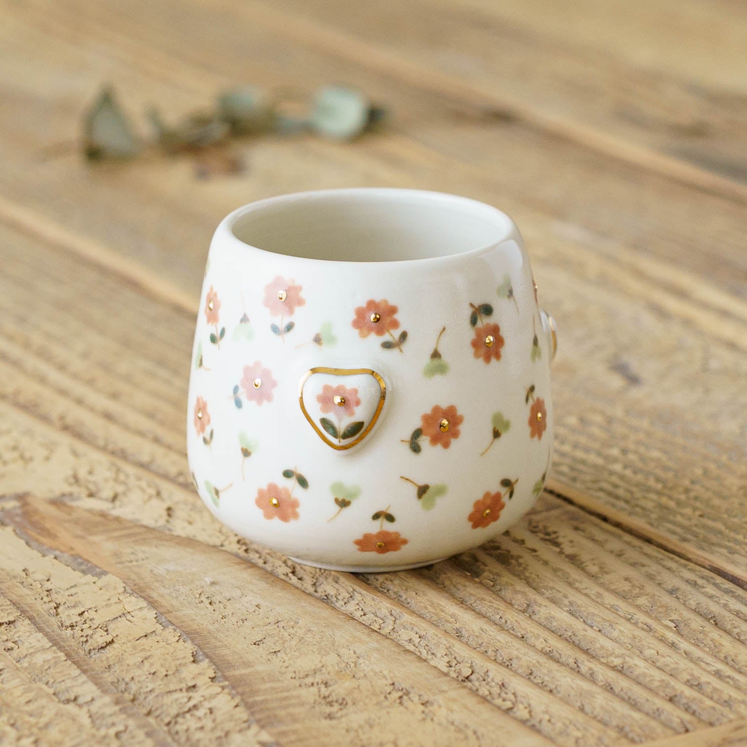 静かに咲く小花が、ひとつひとつ丁寧に手描きされたレリーフシリーズ。楚々とした花々は、草原を渡るやわらかな風や、かすかに漂う花の香りを思わせます。淡くひろがる花模様は、時の流れさえゆるやかにしてくれるような穏やかさ。金彩は控えめに光を受け、まるで夕暮れの光がそっと触れるようにきらめきます。