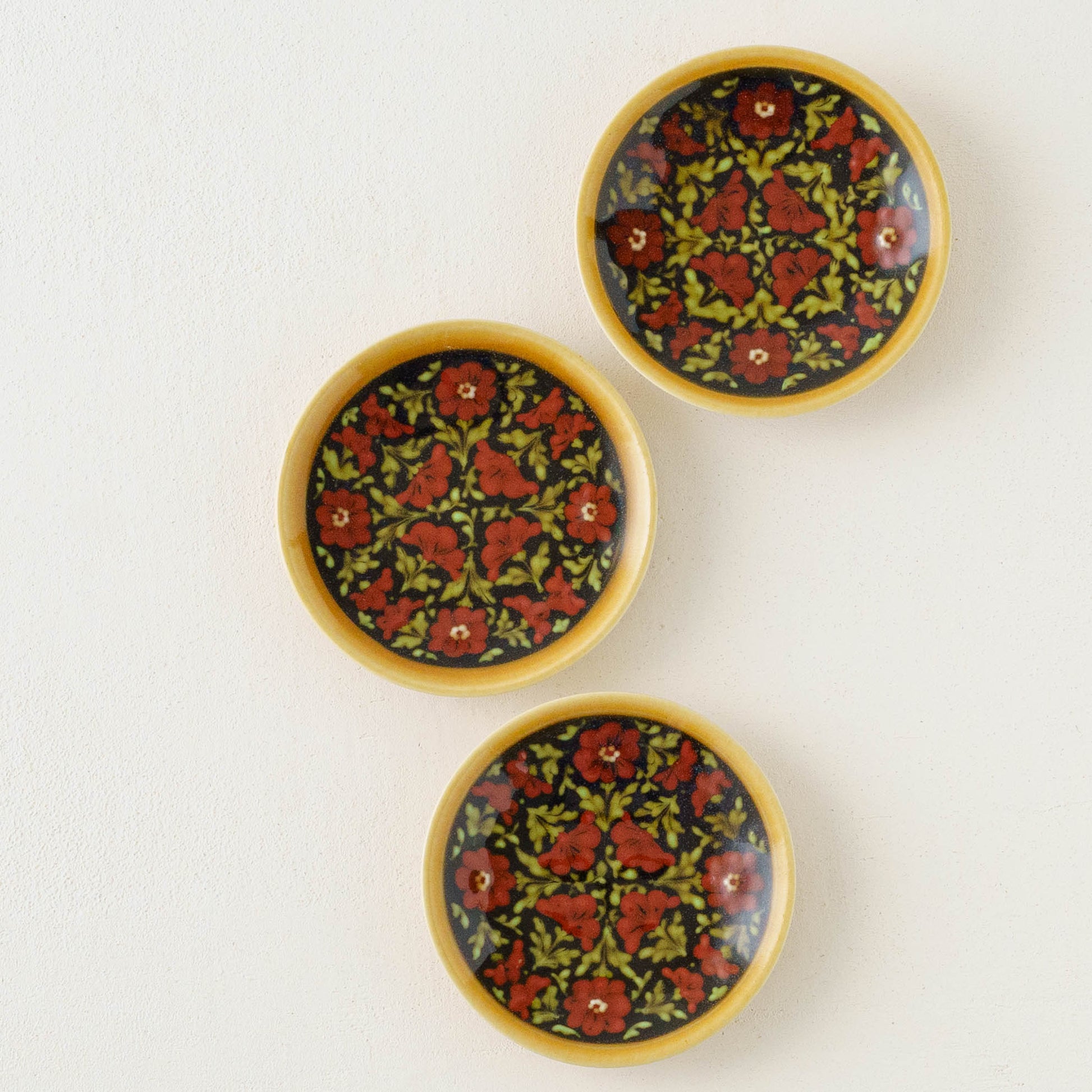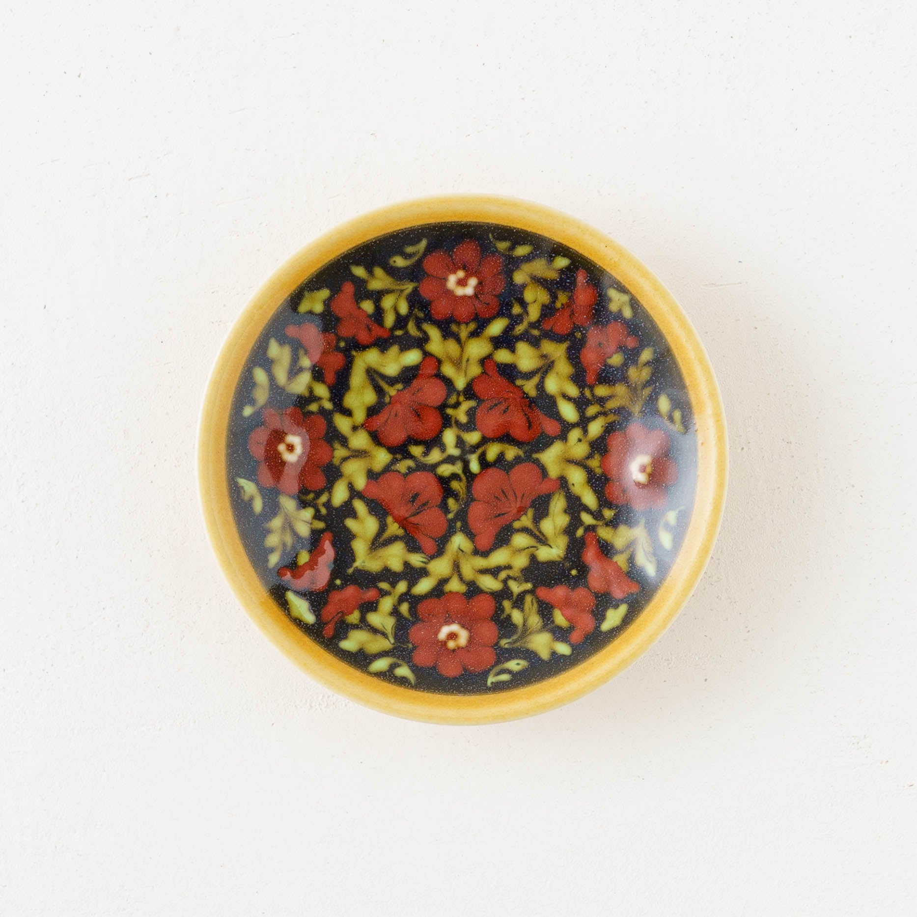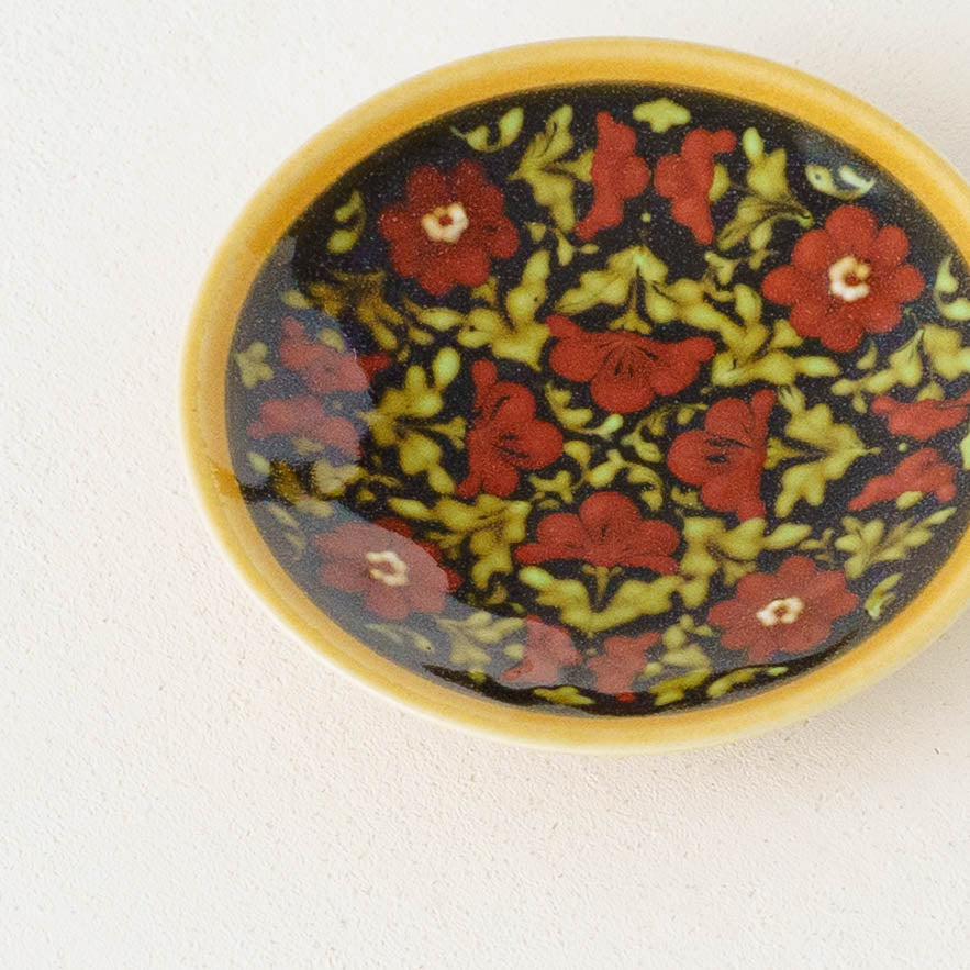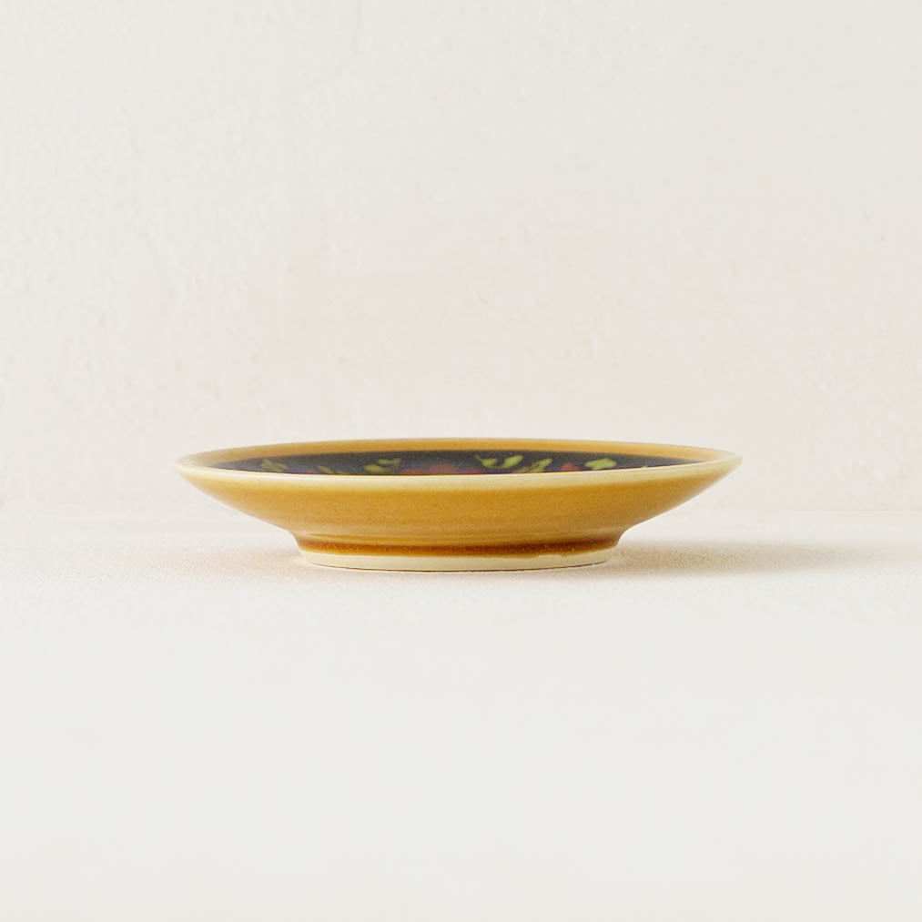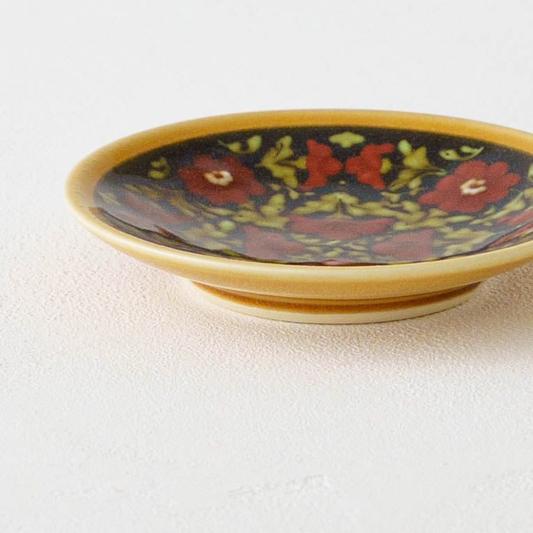 下描きはせず、一気呵成に描きあげるスリップウェア。釉薬が乾く前の一瞬しかないからこそ、流れるように描かれた草花模様は、どこか自由で、風が吹き抜けるような軽やかさをまとっています。