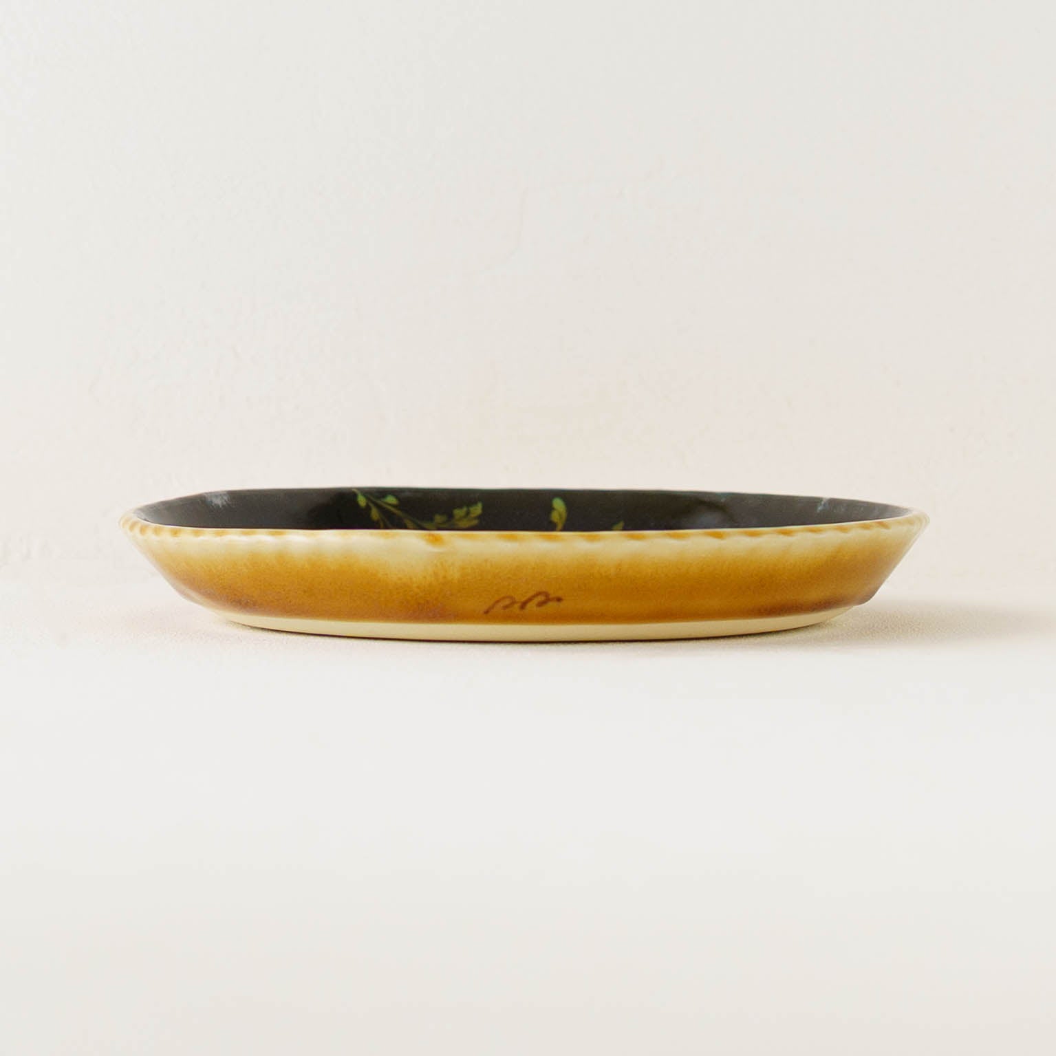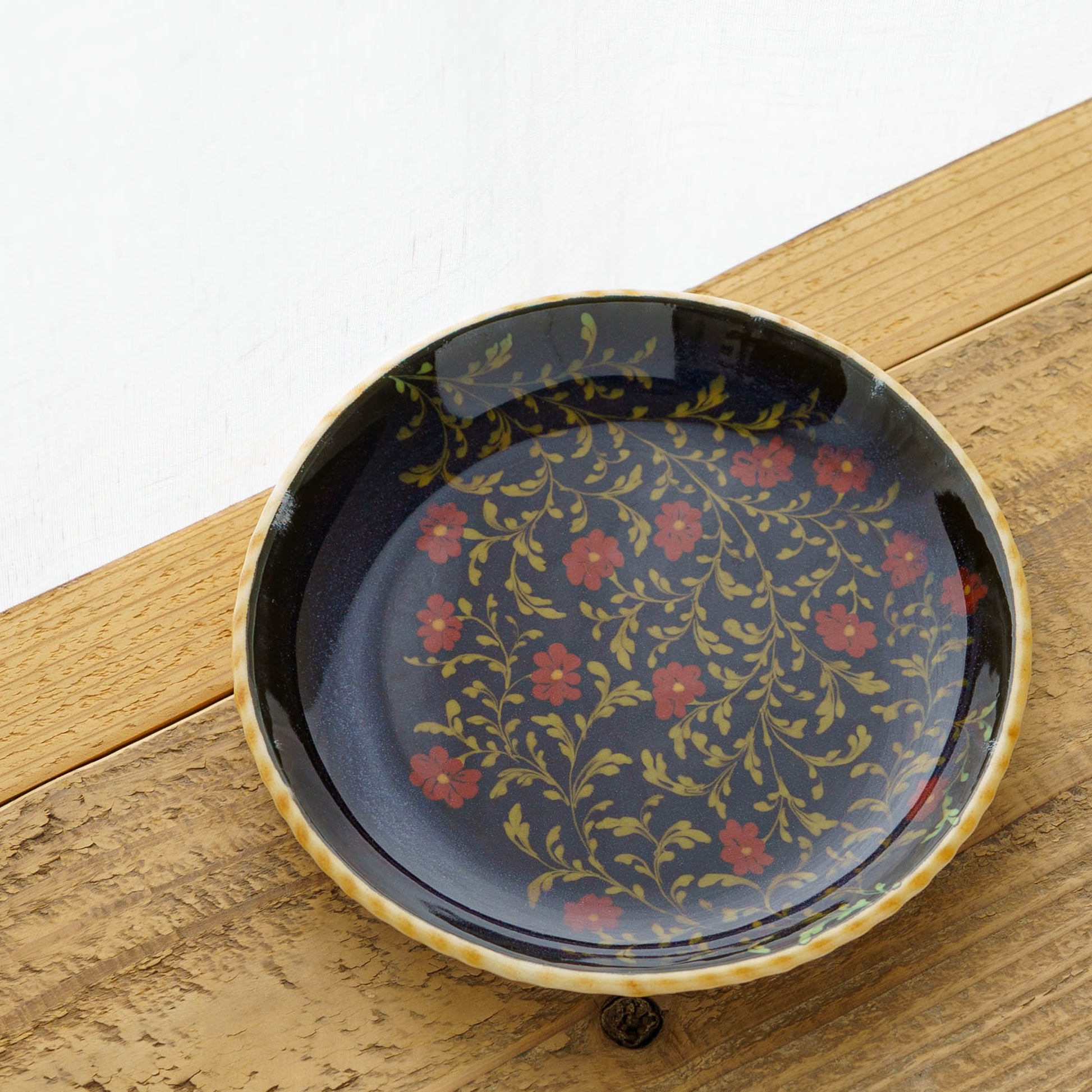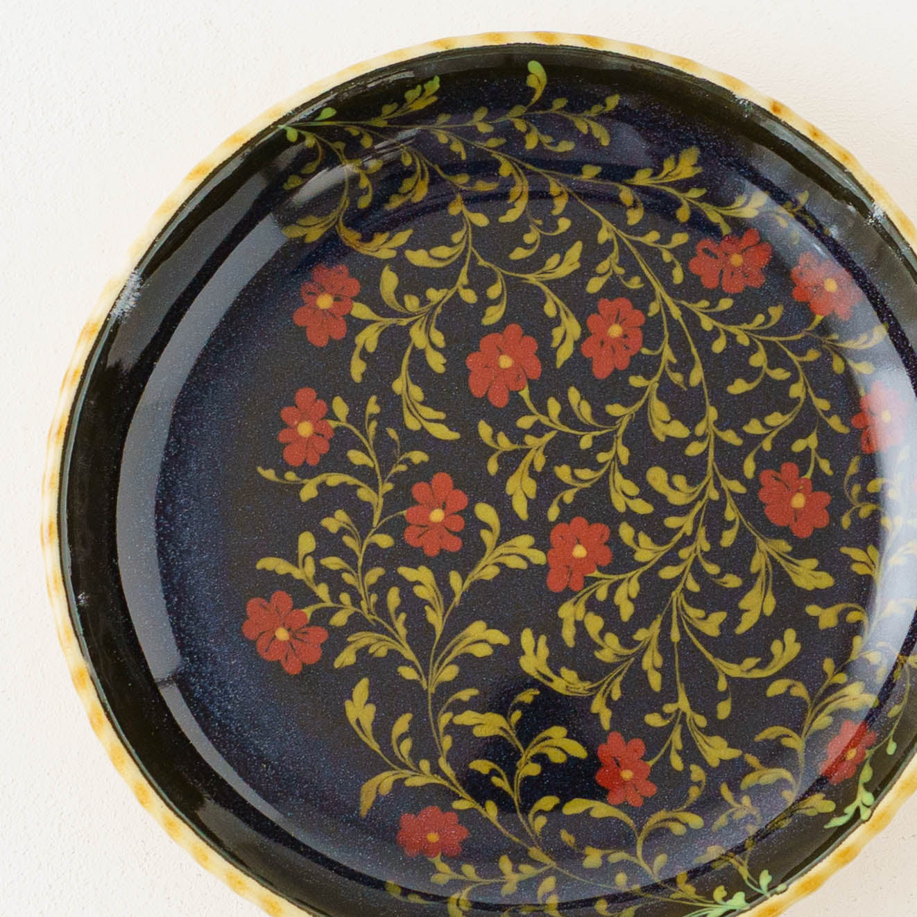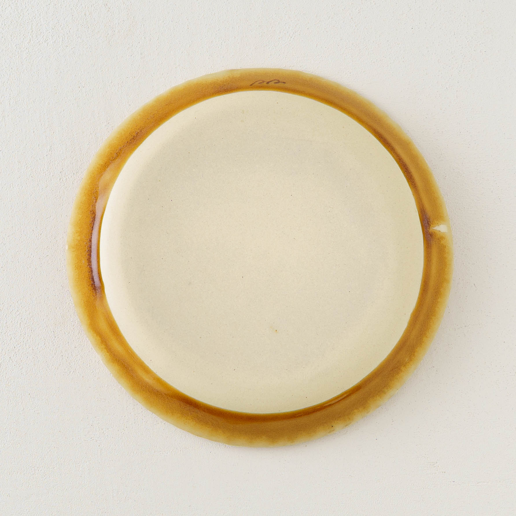 下描きはせず、一気呵成に描きあげるスリップウェア。釉薬が乾く前の一瞬しかないからこそ、流れるように描かれた草花模様は、どこか自由で、風が吹き抜けるような軽やかさをまとっています。