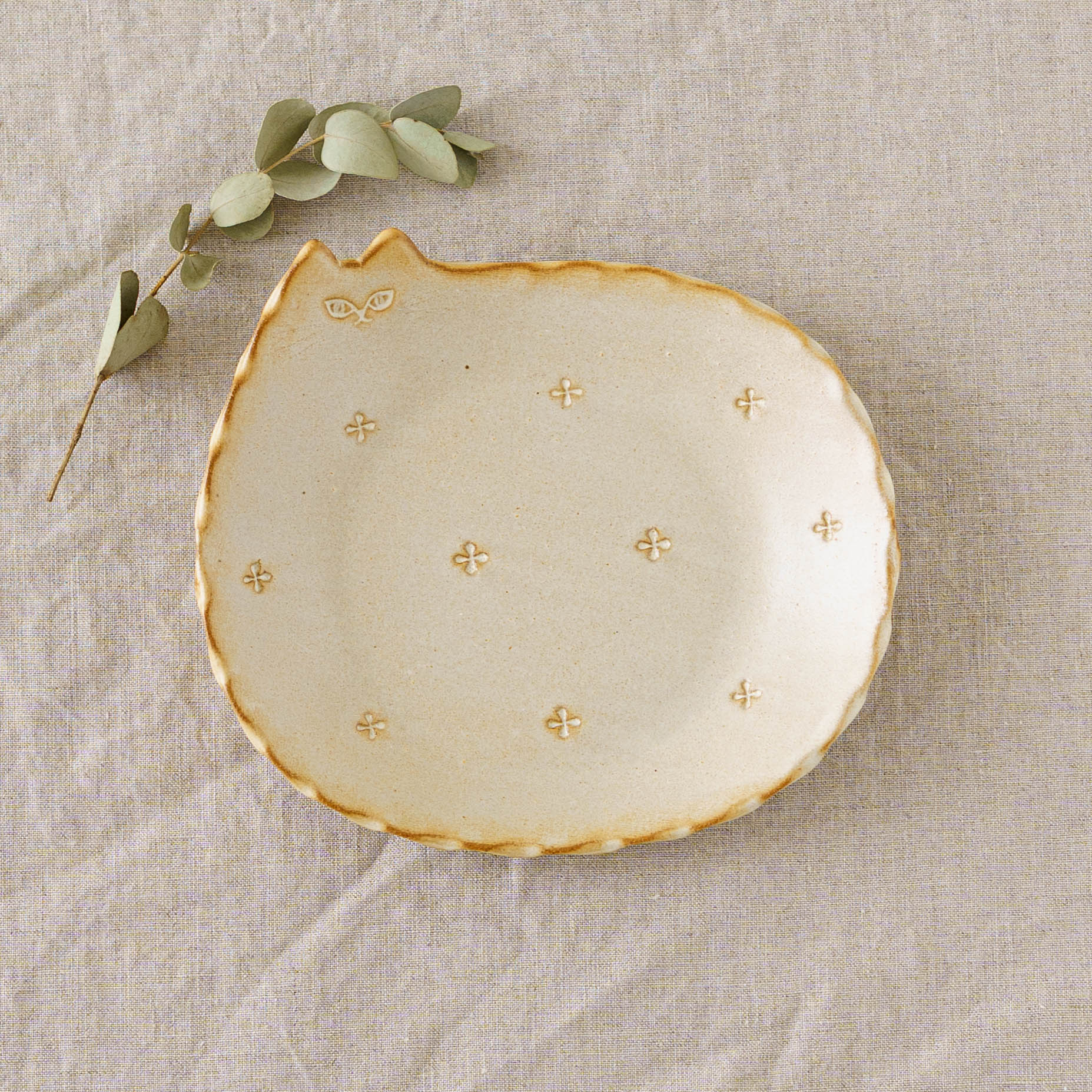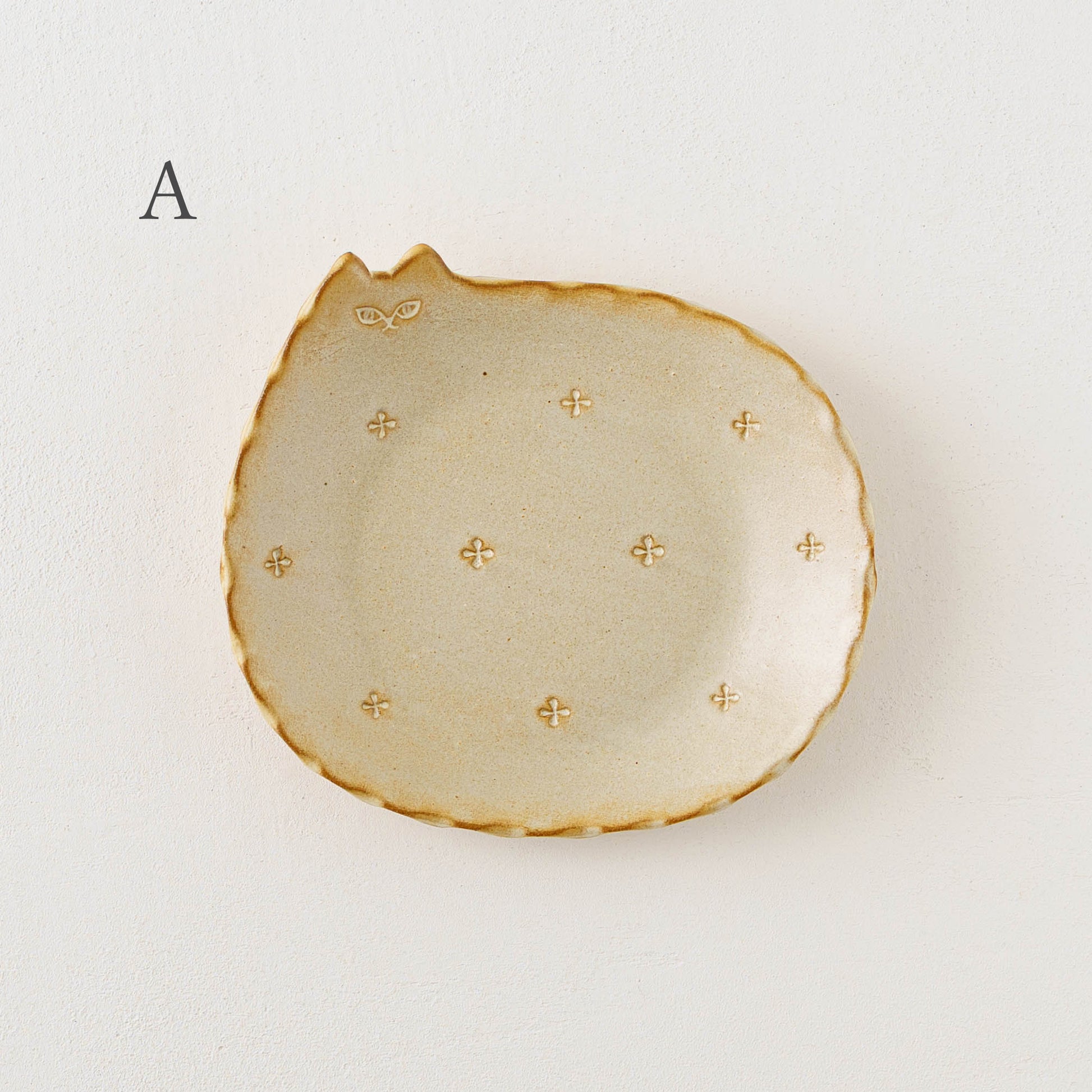 ねこさん皿 小花 小|アトリエ モノラー
