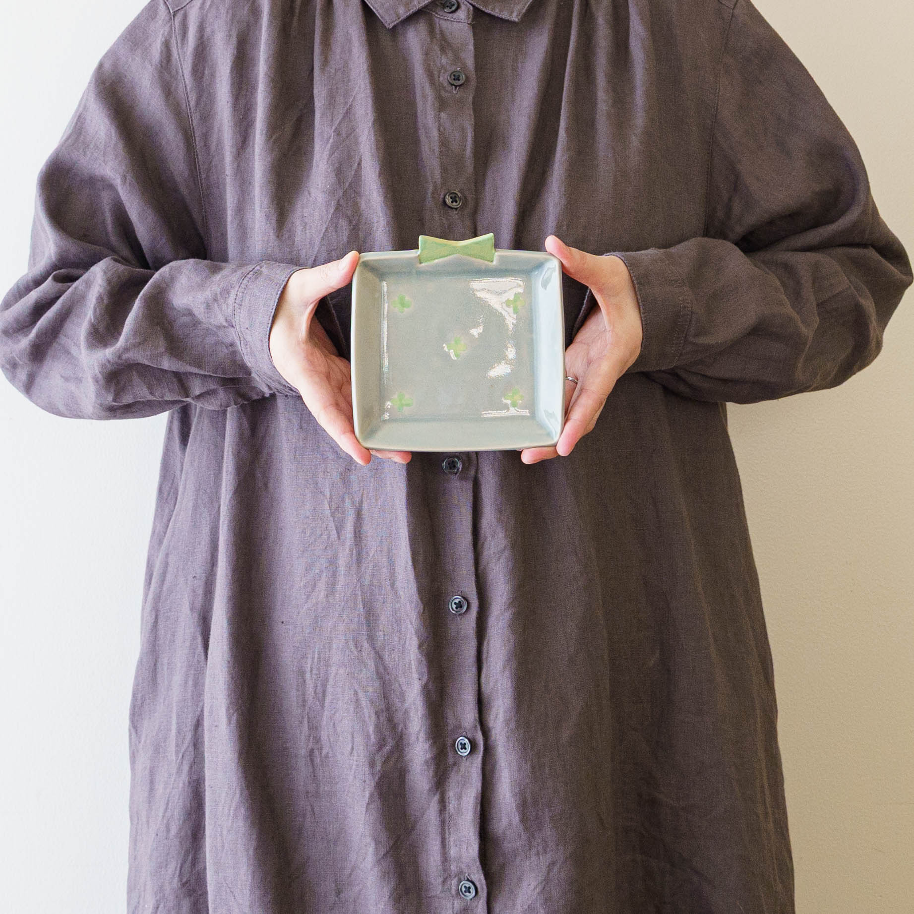 土を板状にして形をつくる「たたら作り」で生まれたかたち。ろくろとはまた違う、やわらかな揺らぎが残り、手のぬくもりがそのまま息づいています。その表情には大地の色や香りがやさしく溶け込んでいます。