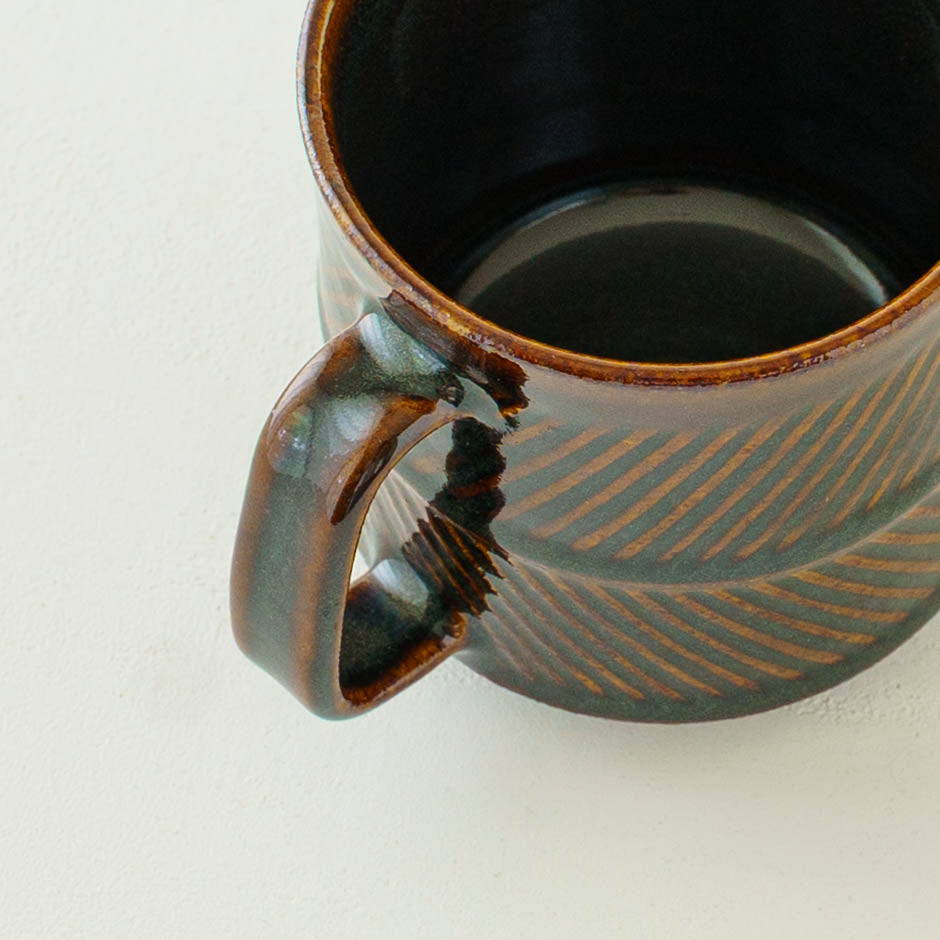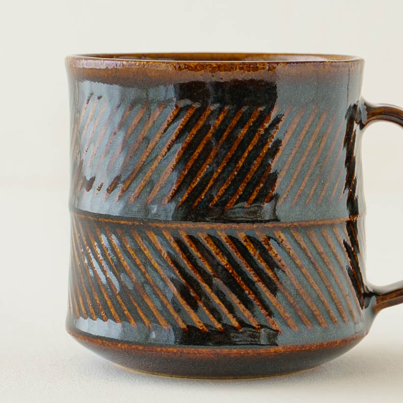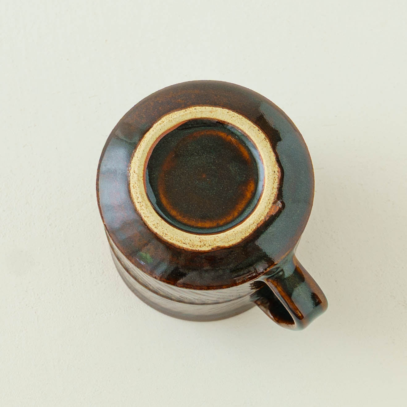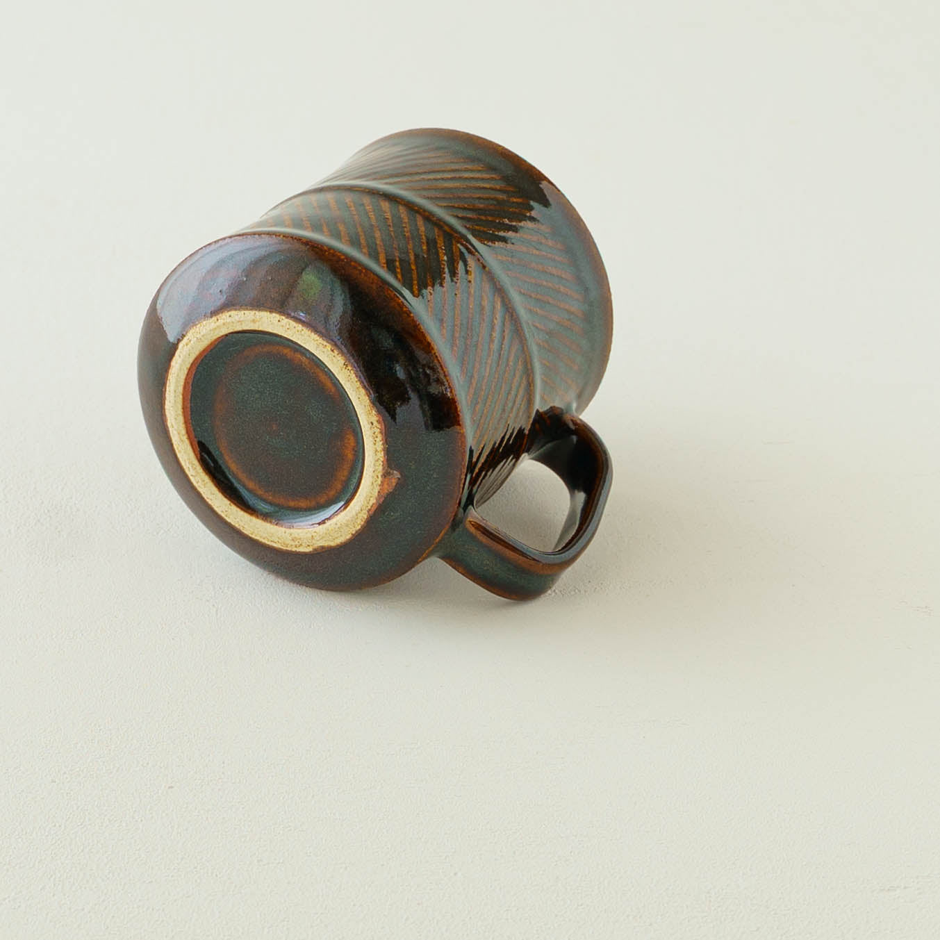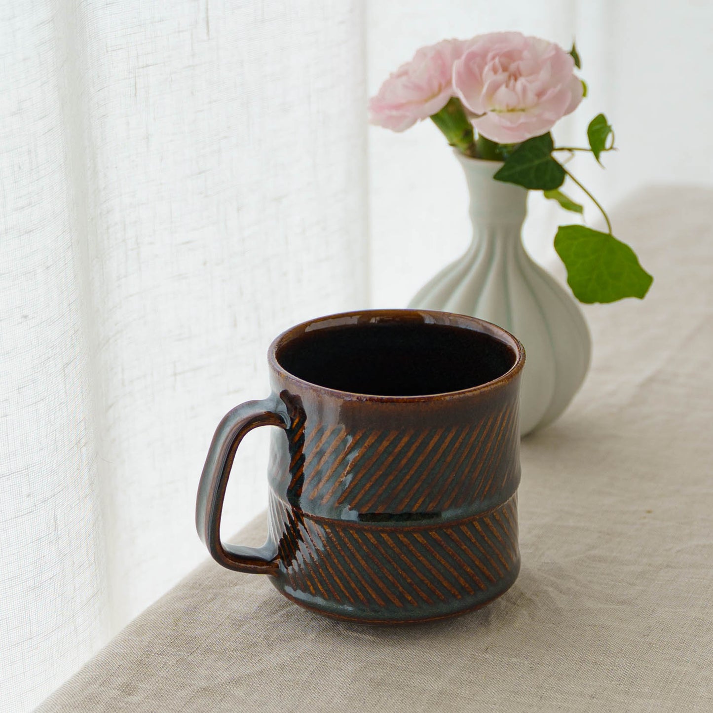 こっくり濃いめの飴釉は上品でシックな風合い。益子の土でつくられた陶器のうつわならではの、土のあたたかさと鎬(しのぎ)の凹凸に溶け込むように流れ込んだ釉薬の濃淡が、表情の奥行きと豊かさを生み出しています。