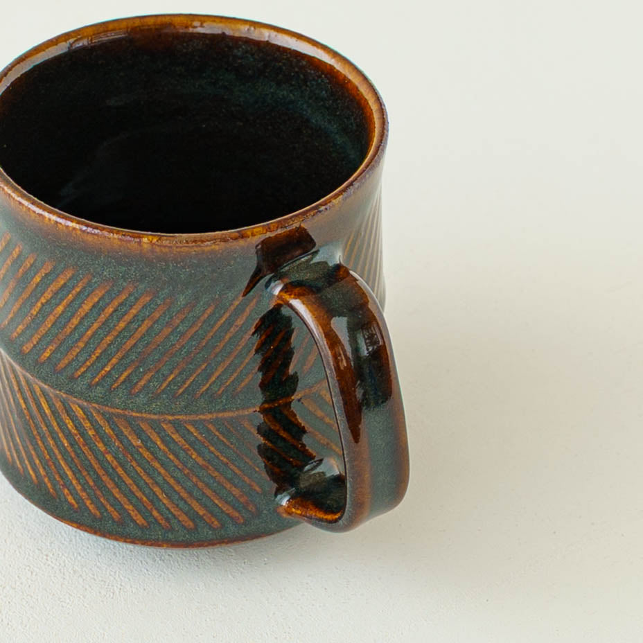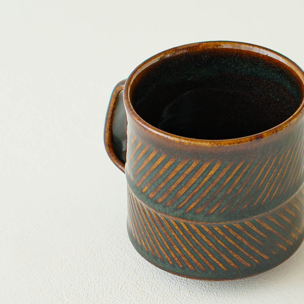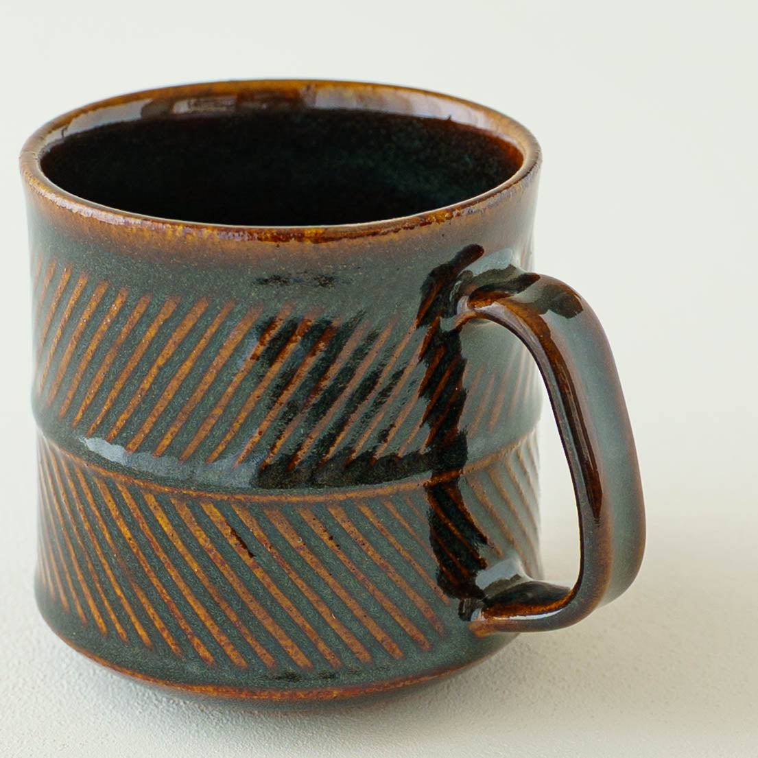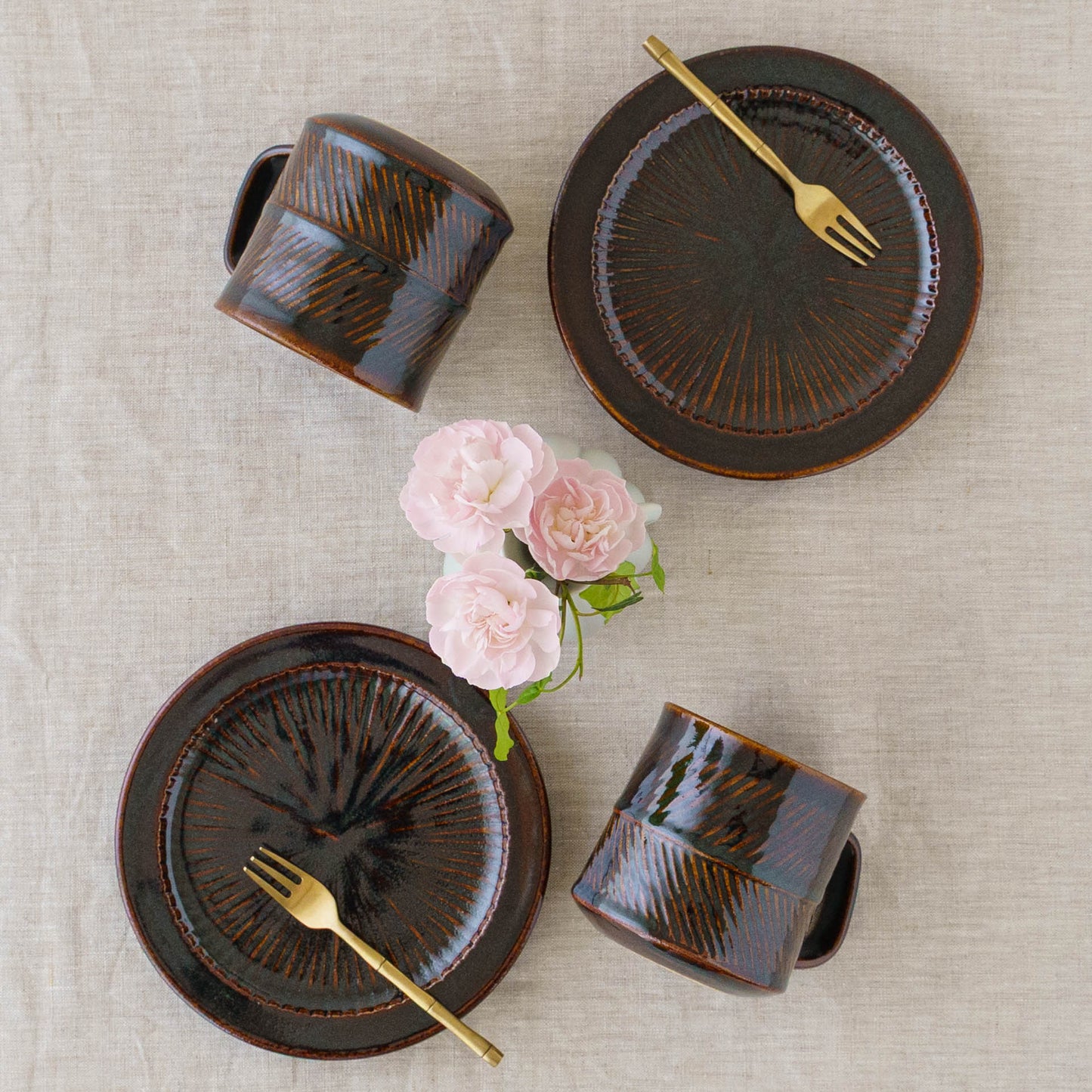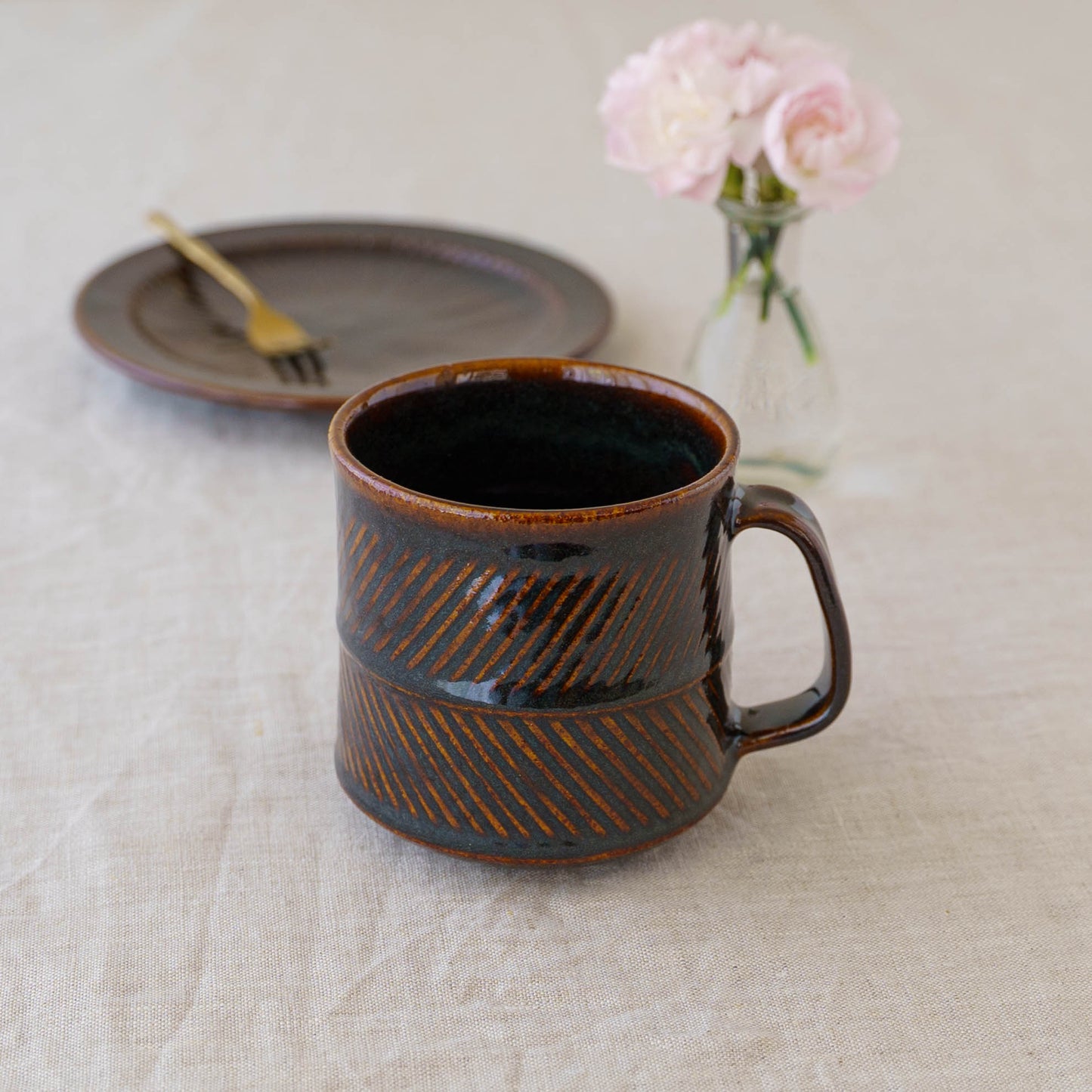 こっくり濃いめの飴釉は上品でシックな風合い。益子の土でつくられた陶器のうつわならではの、土のあたたかさと鎬(しのぎ)の凹凸に溶け込むように流れ込んだ釉薬の濃淡が、表情の奥行きと豊かさを生み出しています。