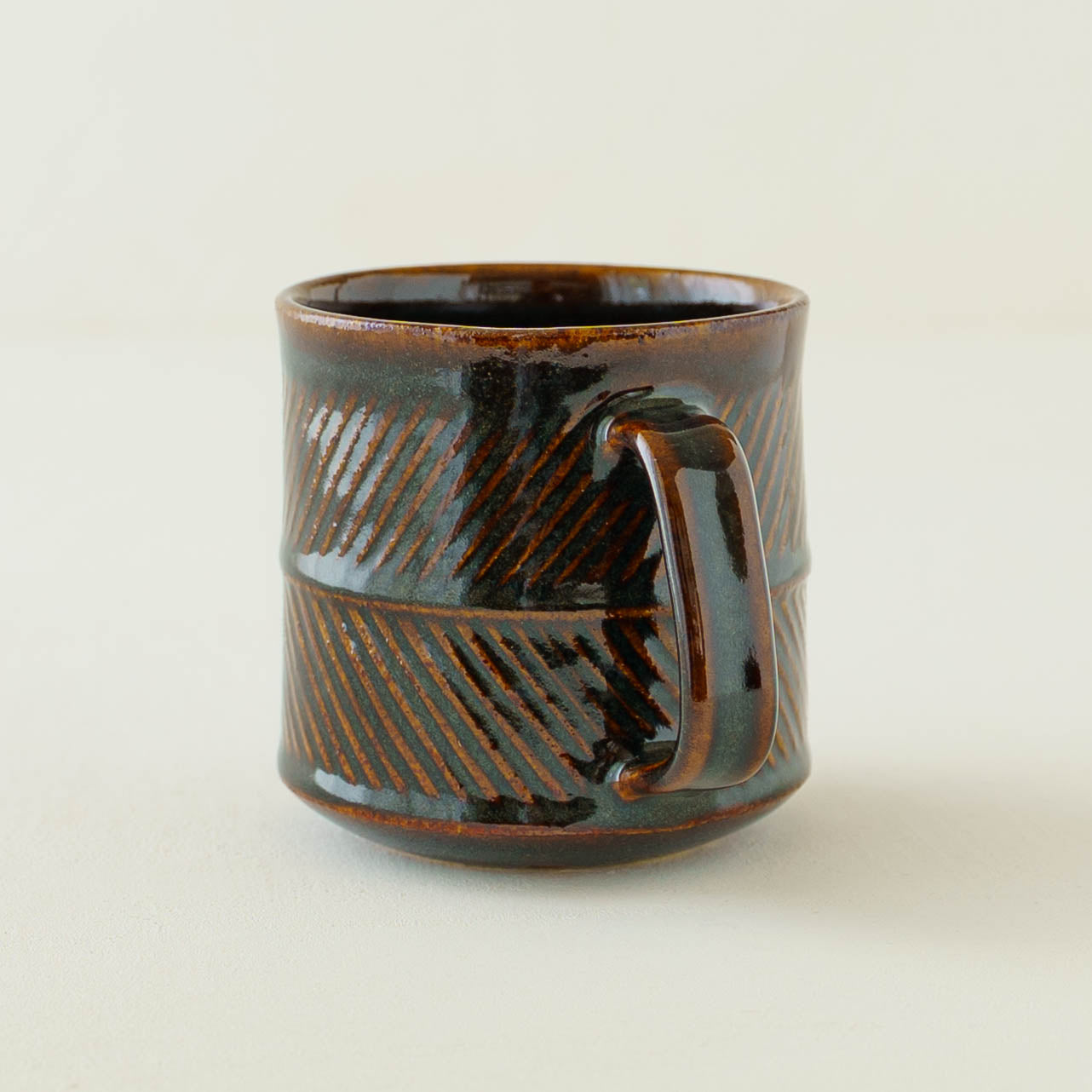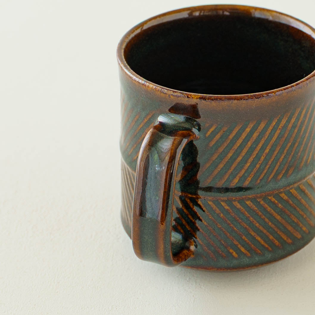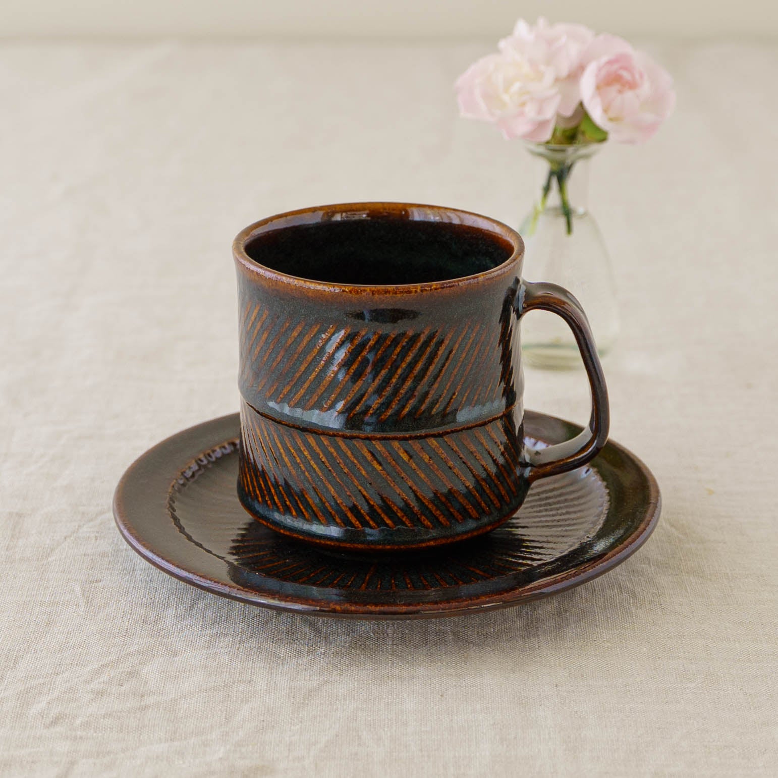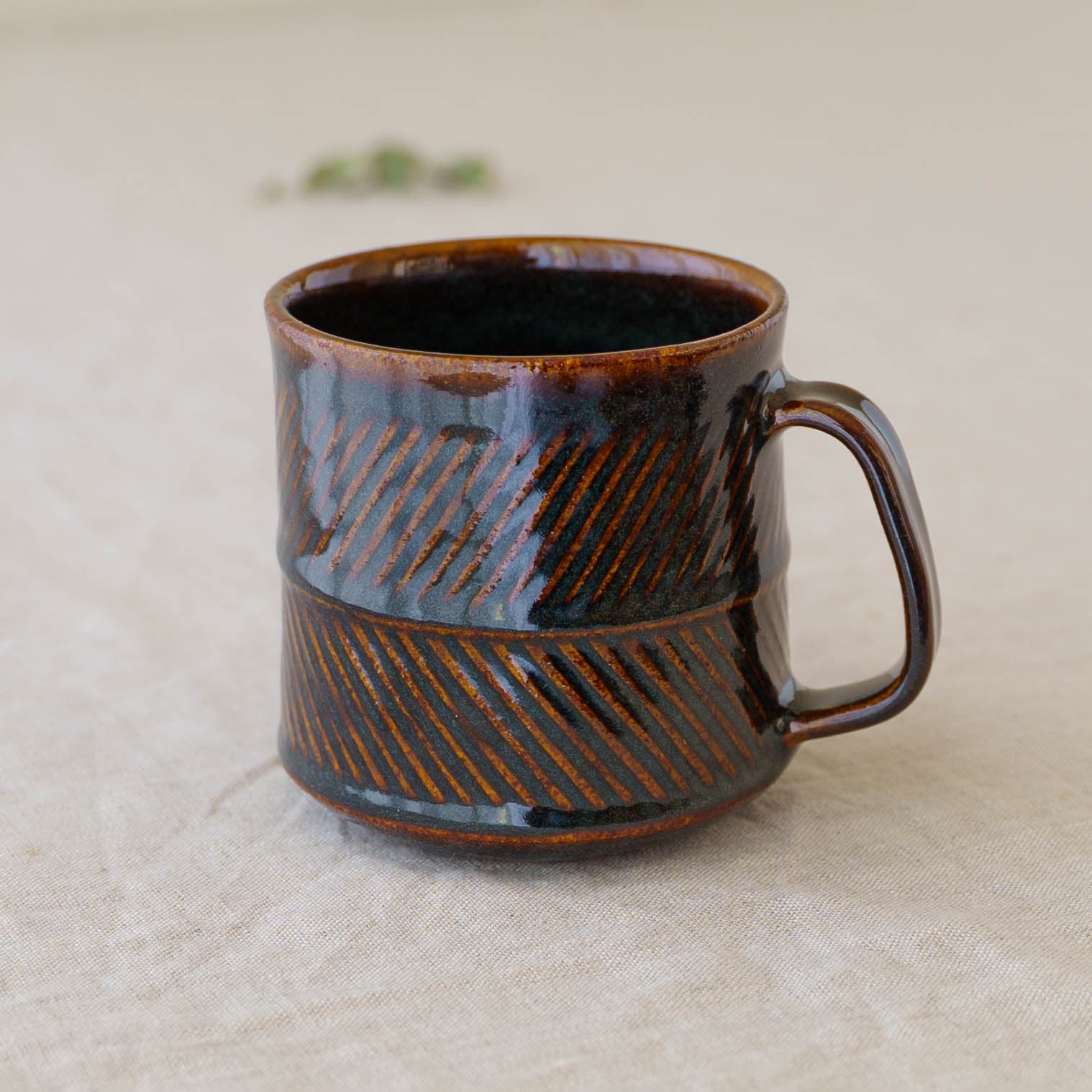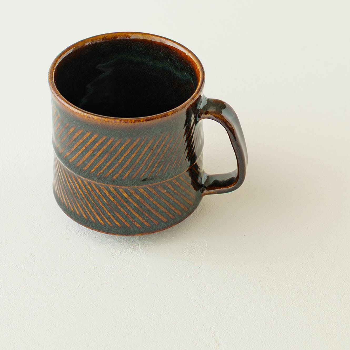 こっくり濃いめの飴釉は上品でシックな風合い。益子の土でつくられた陶器のうつわならではの、土のあたたかさと鎬(しのぎ)の凹凸に溶け込むように流れ込んだ釉薬の濃淡が、表情の奥行きと豊かさを生み出しています。