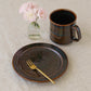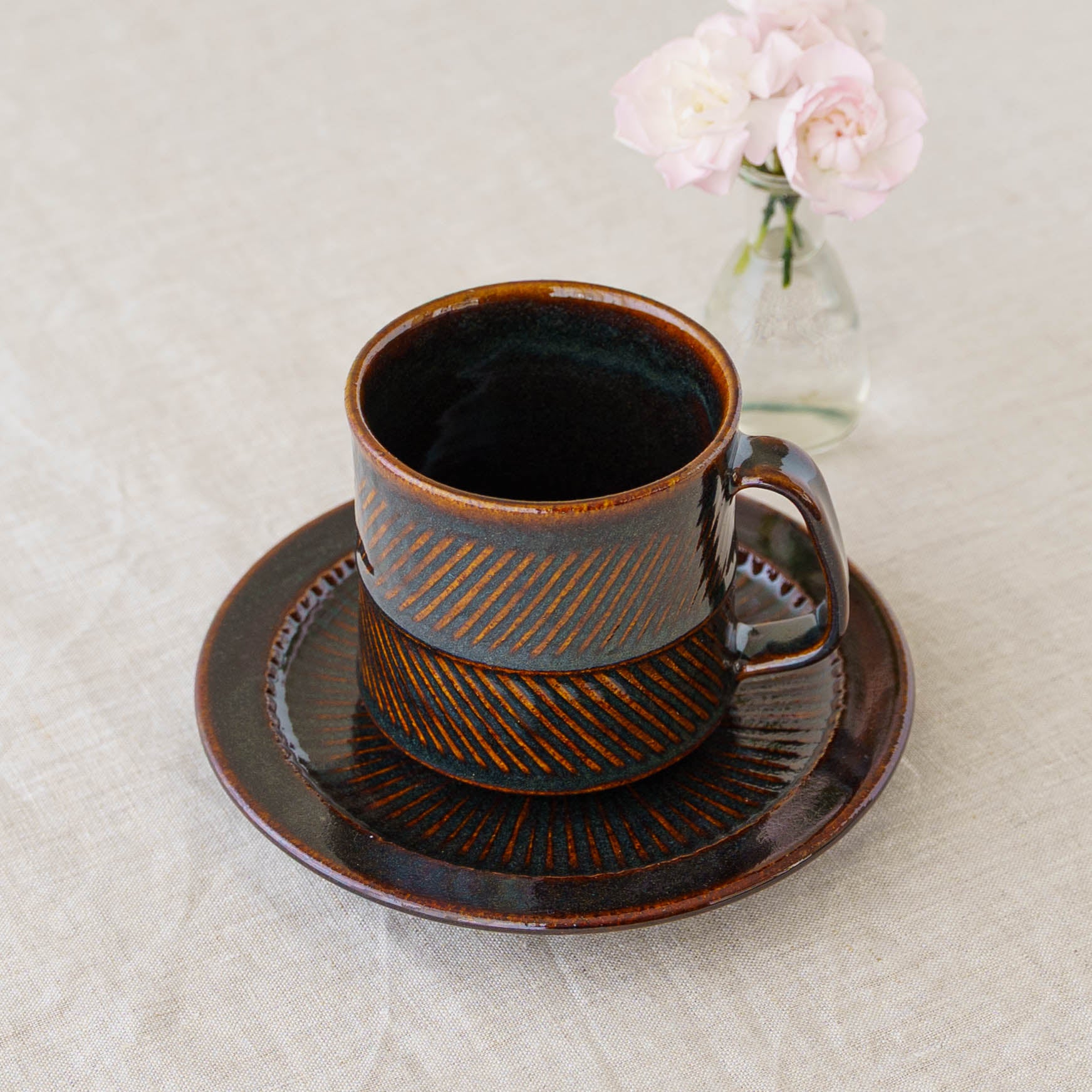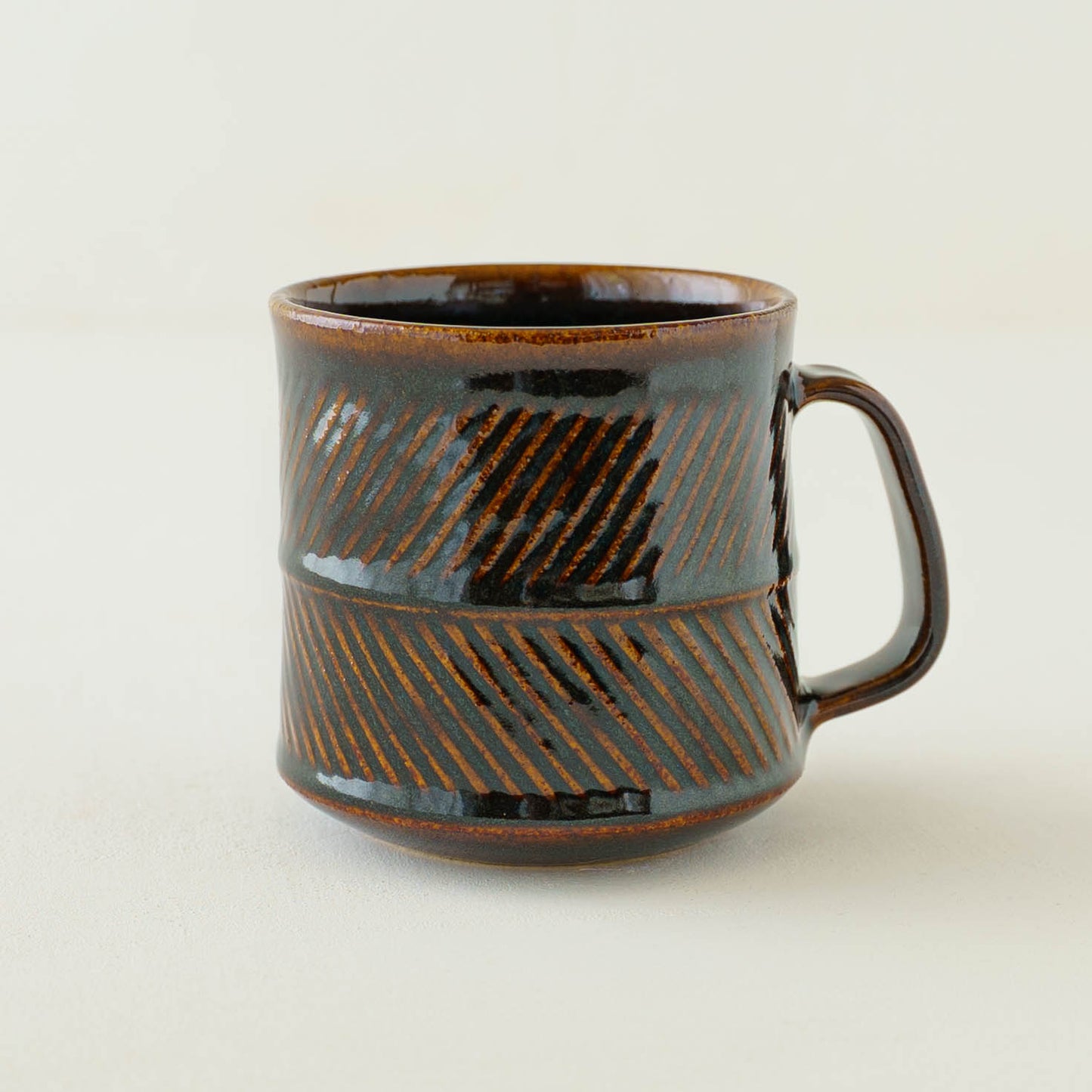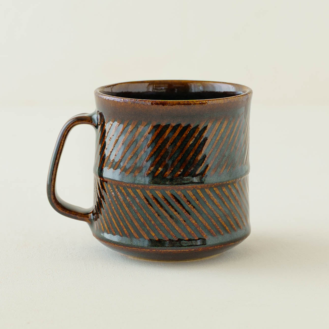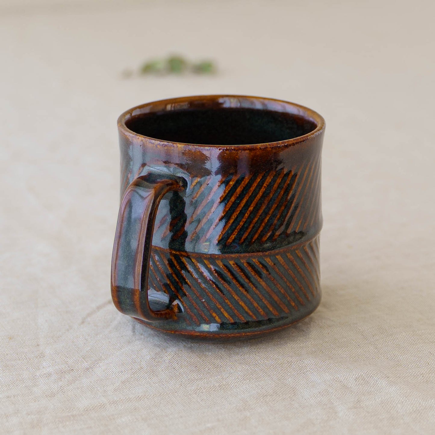 こっくり濃いめの飴釉は上品でシックな風合い。益子の土でつくられた陶器のうつわならではの、土のあたたかさと鎬(しのぎ)の凹凸に溶け込むように流れ込んだ釉薬の濃淡が、表情の奥行きと豊かさを生み出しています。
