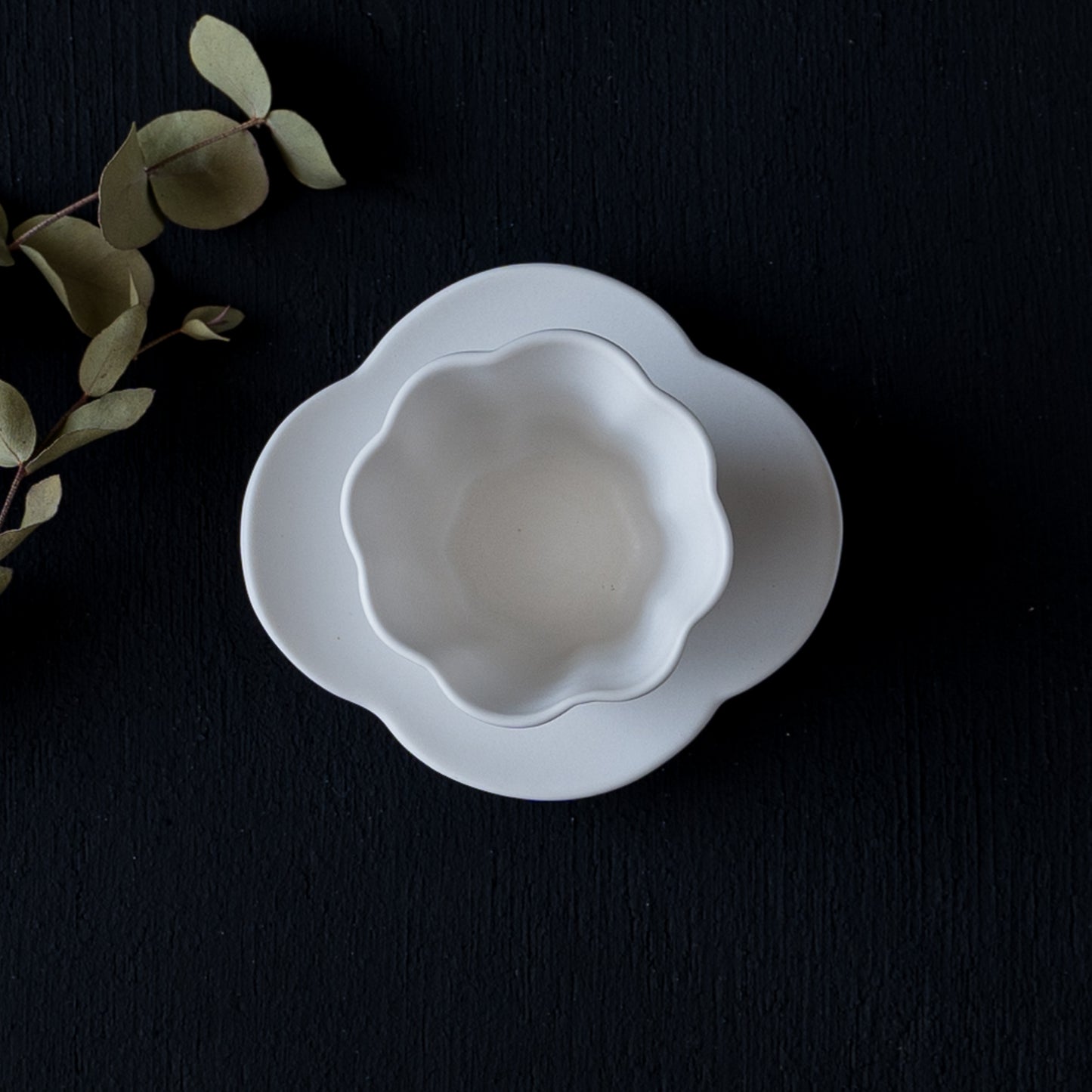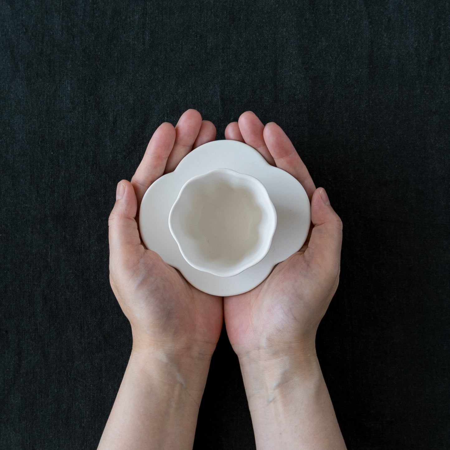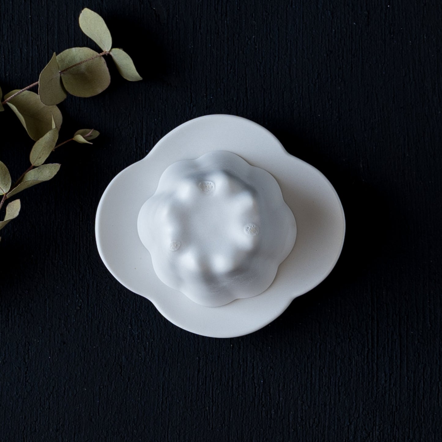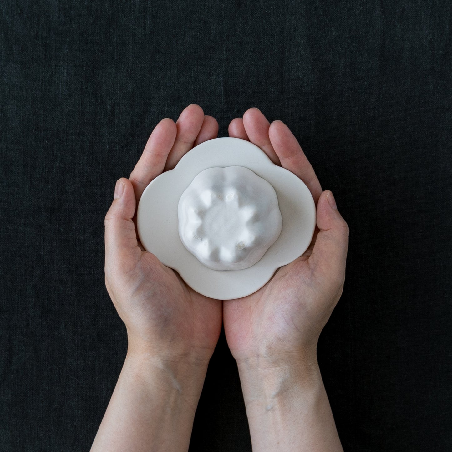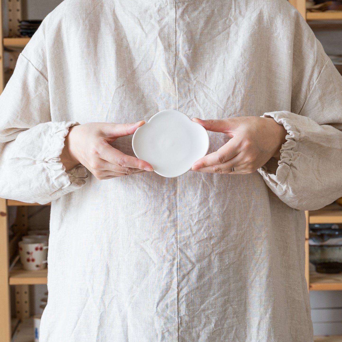 なんともやさしく柔らかな風合いの白。きめ細やかなマットな質感としっとりとしたやさしい触り心地にうっとりとした気持ちにしてくれます。