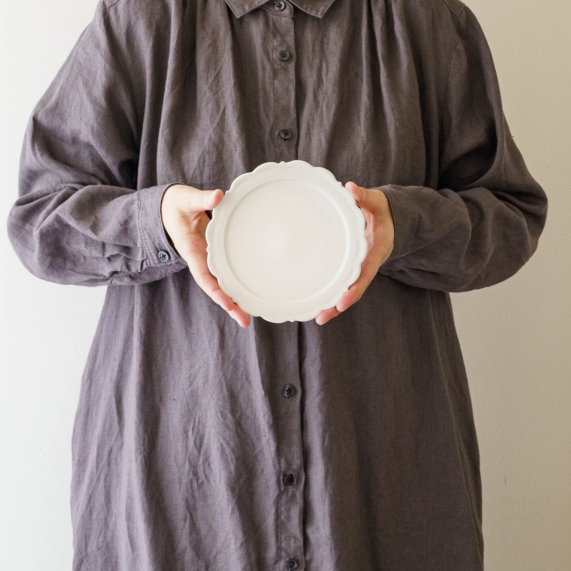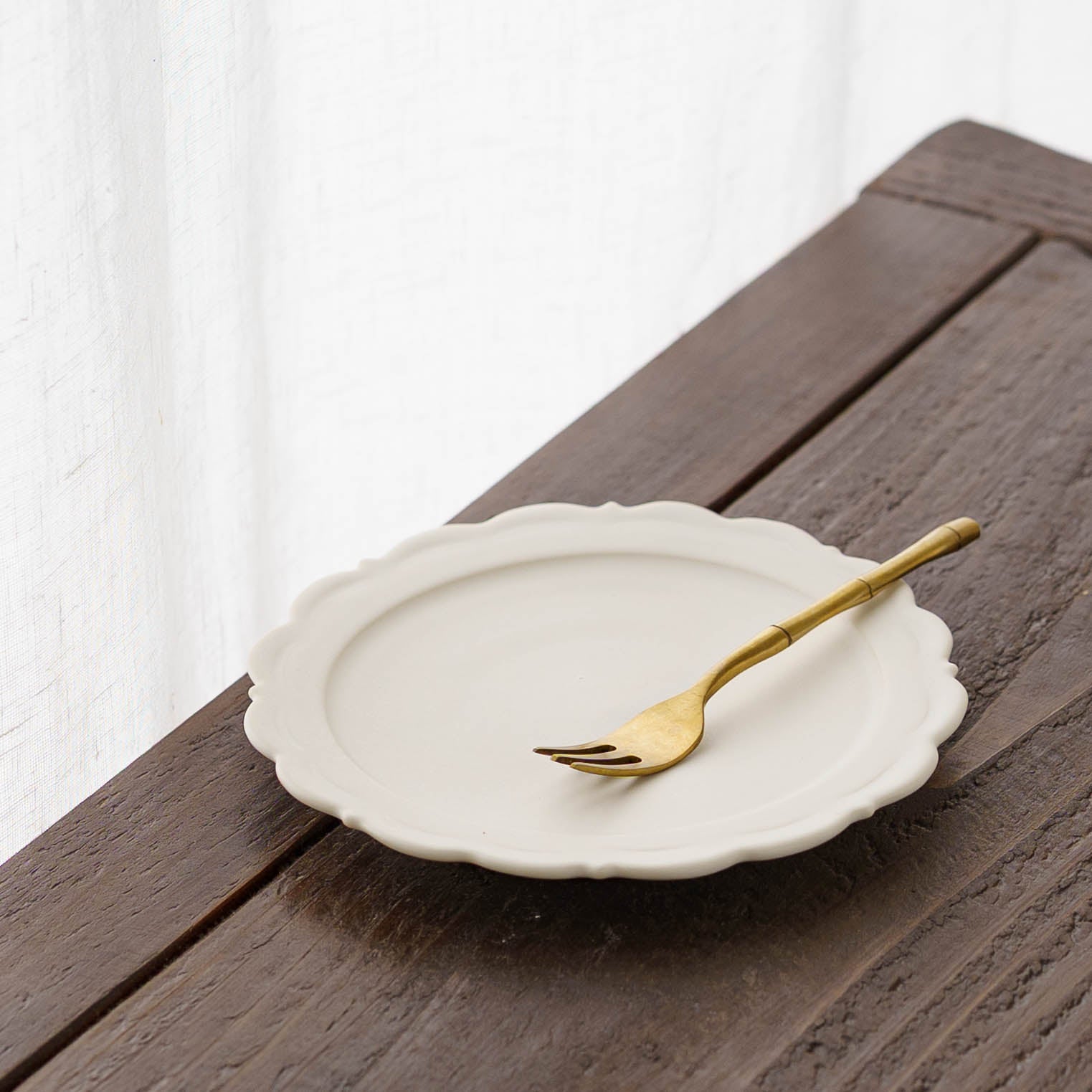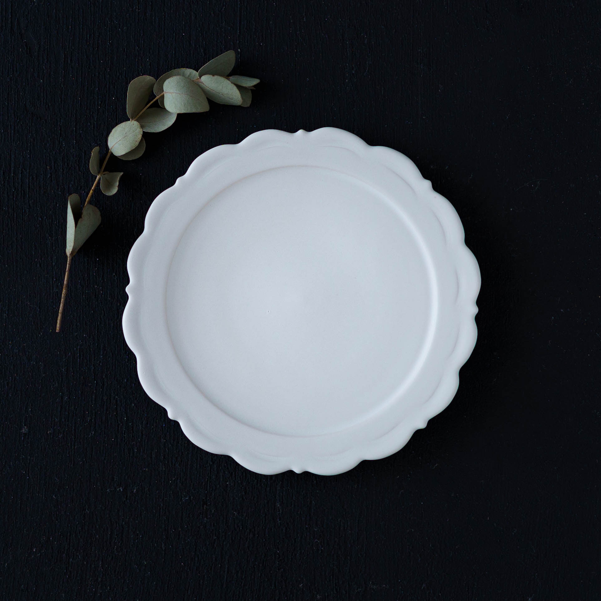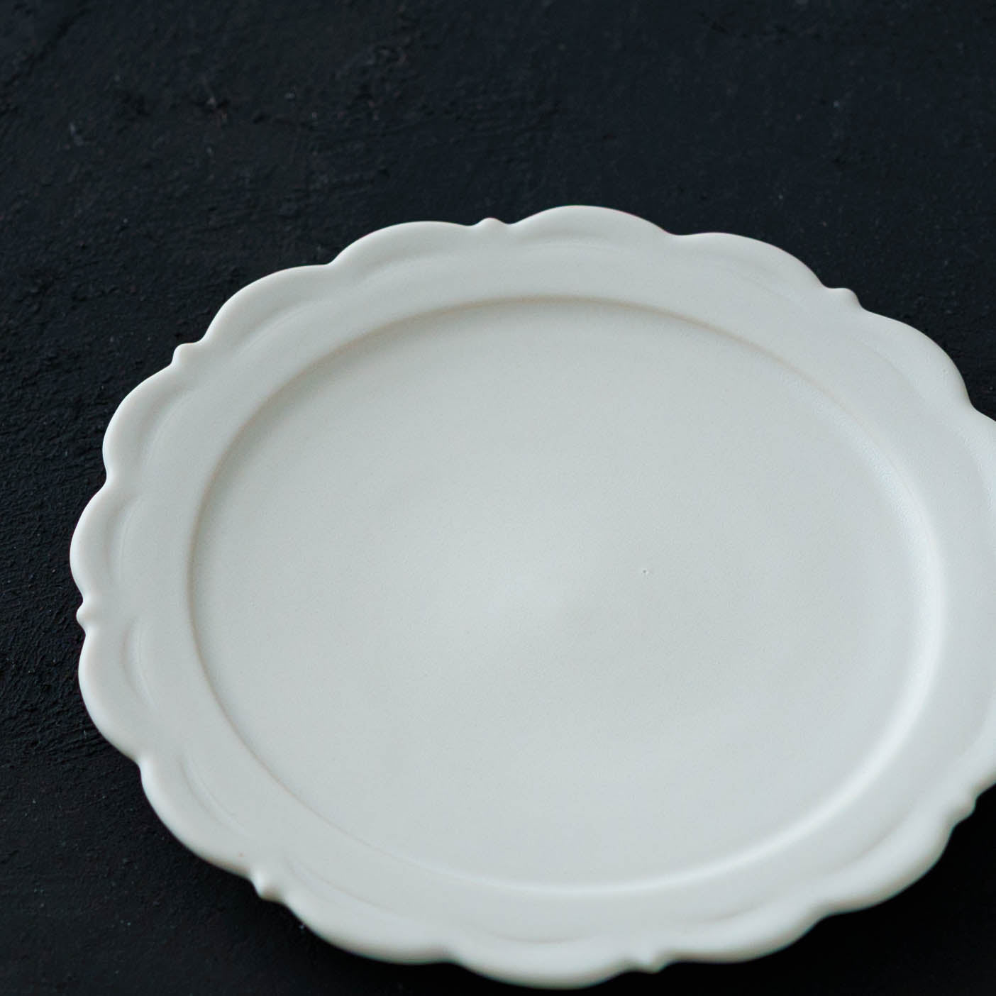 おやつの時間にもぴったりで、ケーキや焼き菓子、和菓子をのせるだけで特別感のあるひとときに。シンプルでありながらぬくもりを感じる白磁のデザインは、日常に小さな華やぎを添えてくれます。