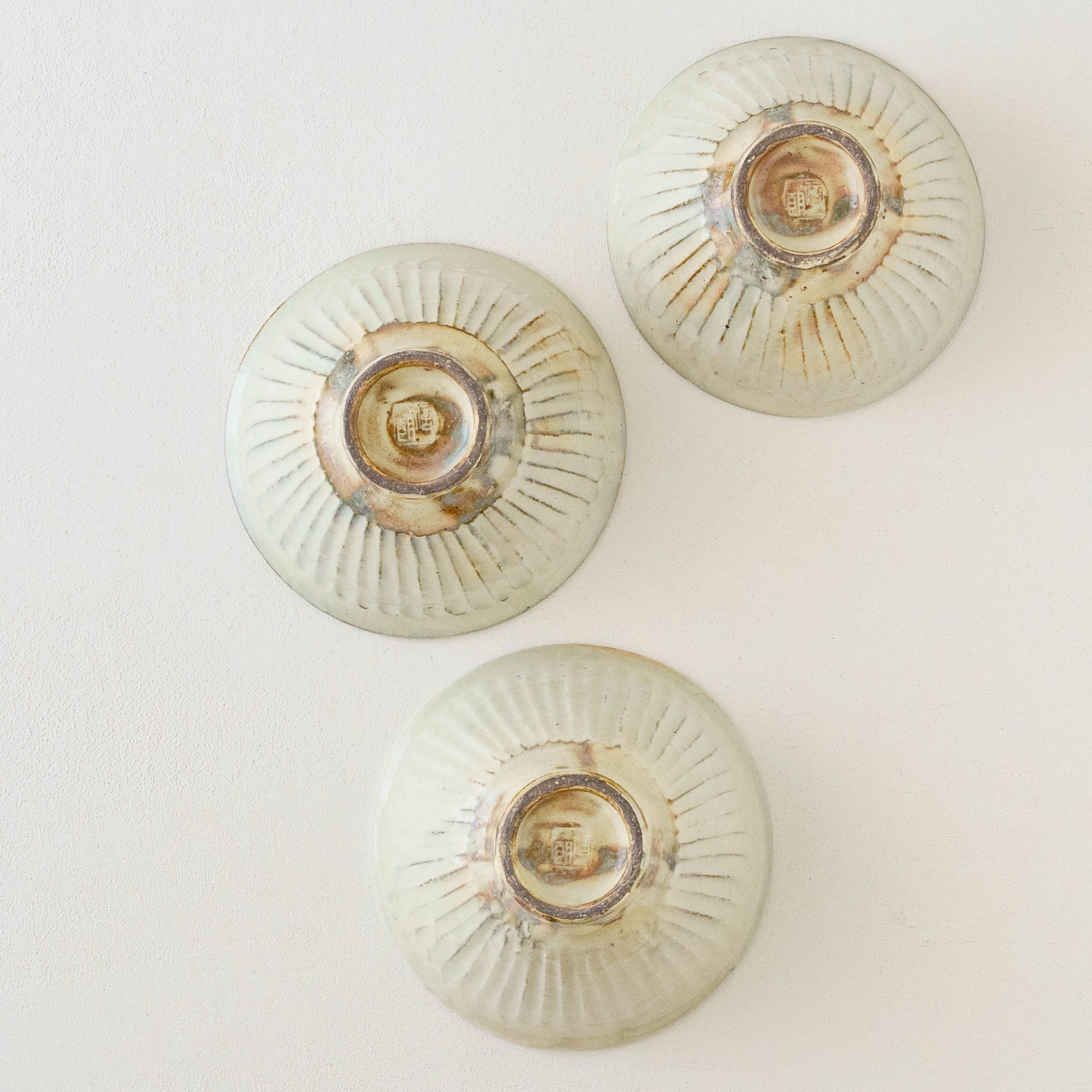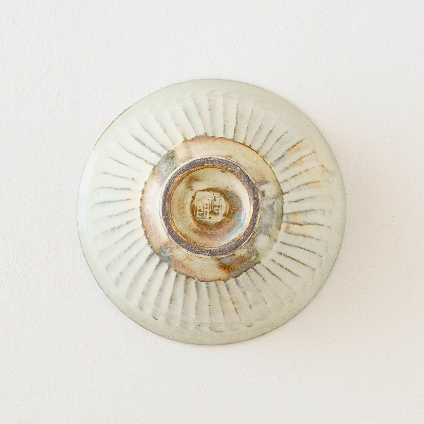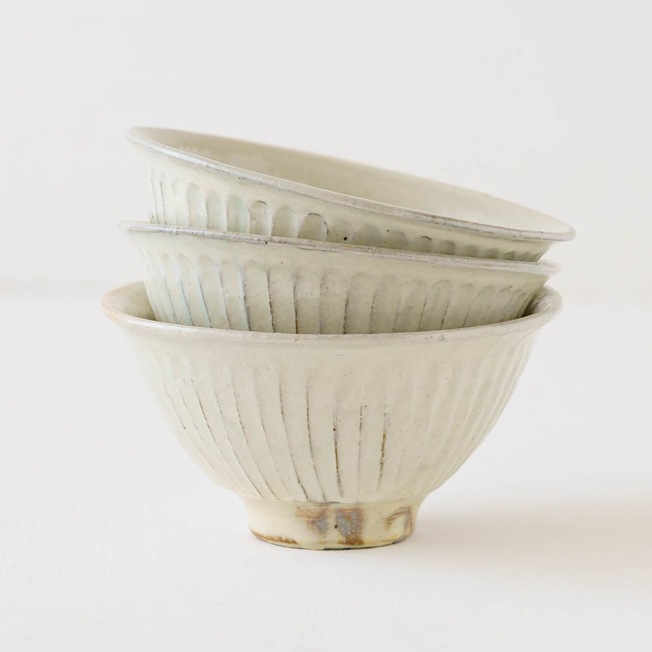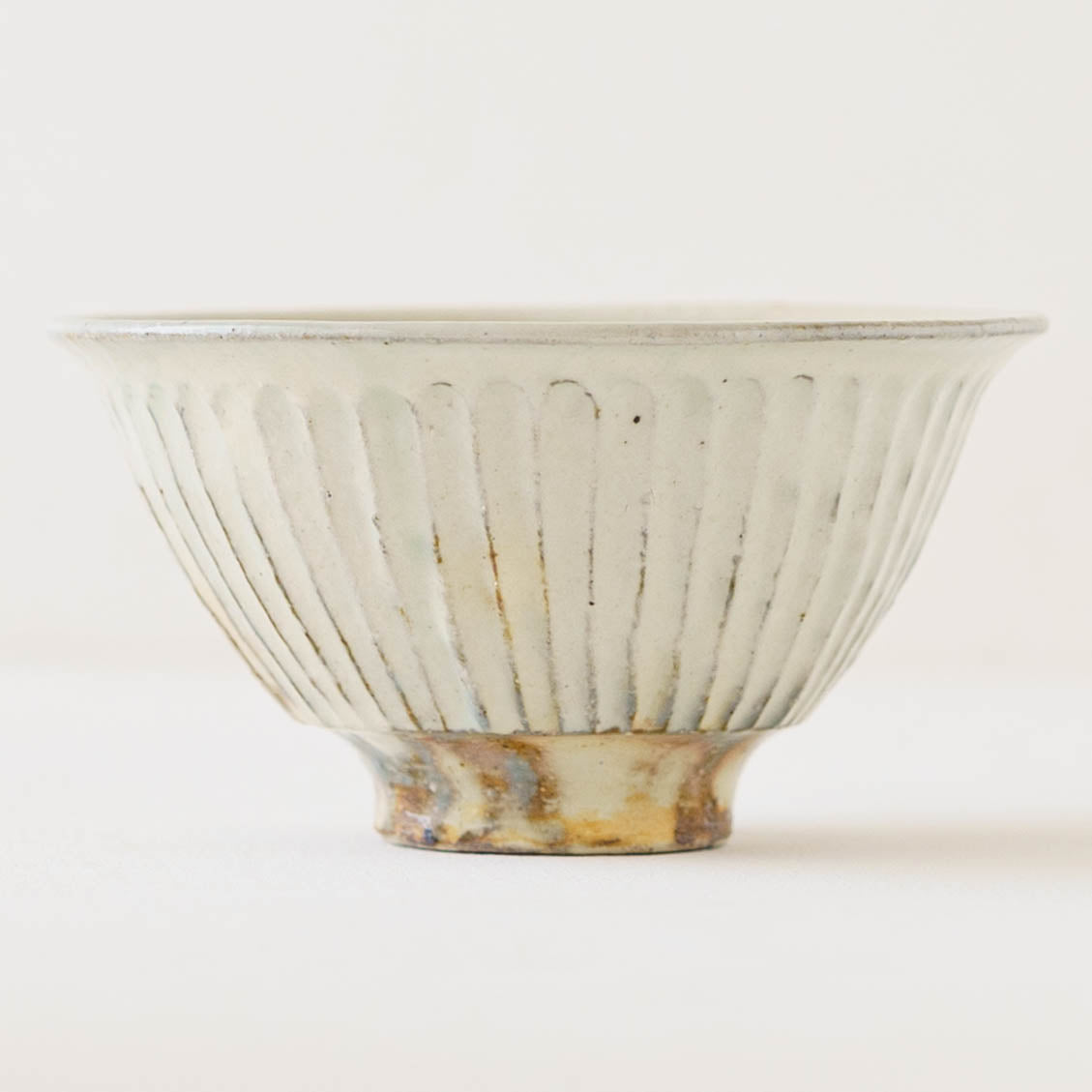 素朴であたたかみのある白い粉引にたて鉄線とうっすらと表れた御本の赤みがなんとも言えない風合いをもたらしています。一本一本丁寧に入れられた彫り。素朴であたたかみがあり、ほかほかご飯をもっと美味しくしてくれます。