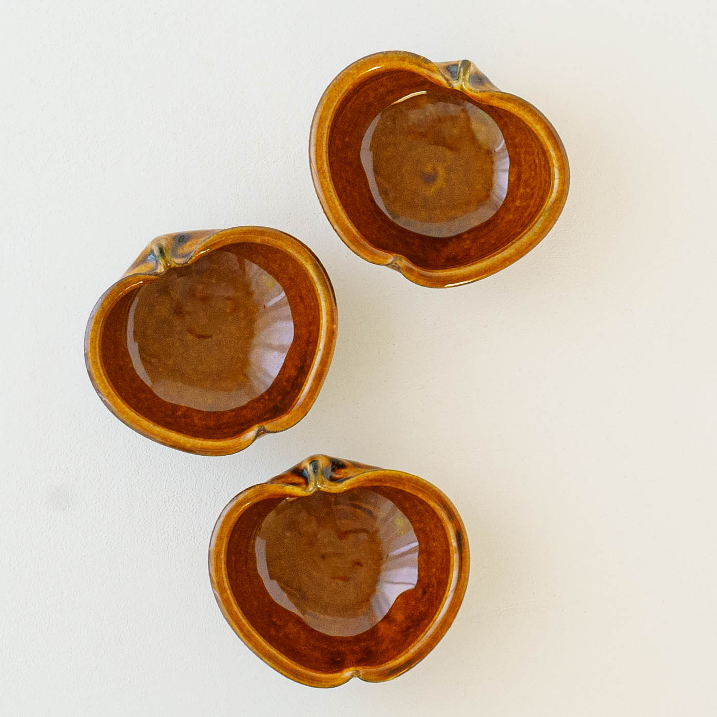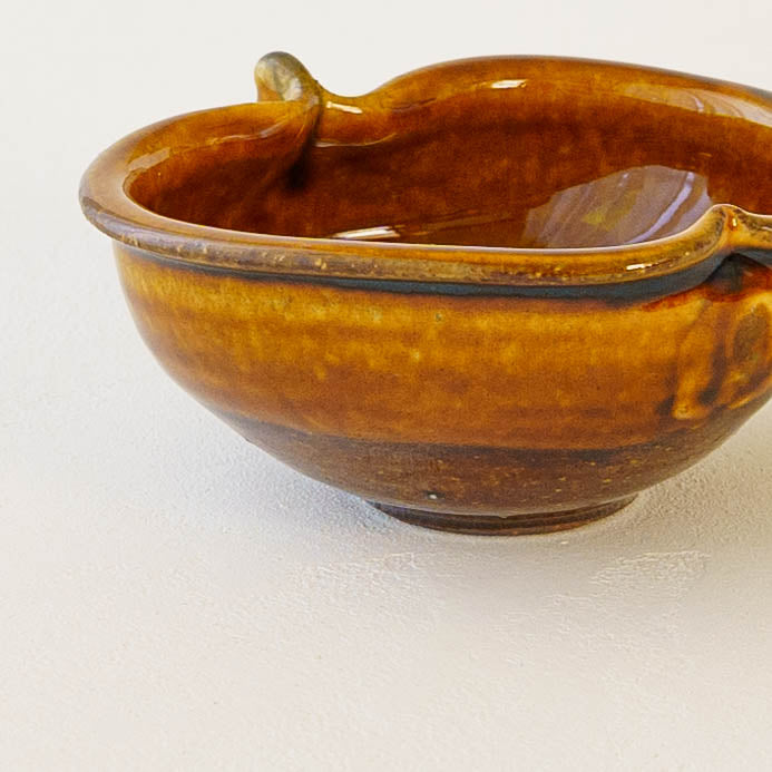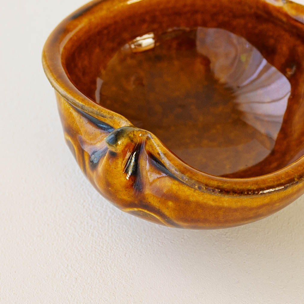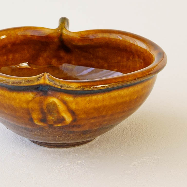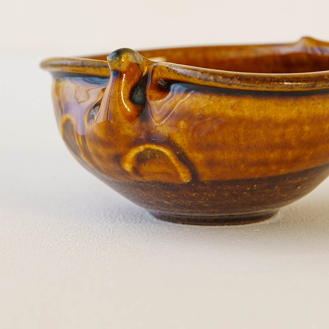 ひとつひとつ手仕事で制作しているので、形や大きさなど微妙に違って、また、アメ釉の褐色の表情を眺めるのも楽しみのひとつです。