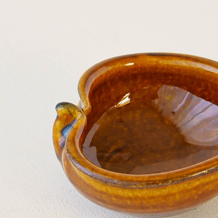 明るい茶色から黒に近い色まで複雑に輝くアメ釉が美しく、ついつい見入ってしまいます。 味わい深くて煌びやかな光沢が食卓を華やかにしてくれます。