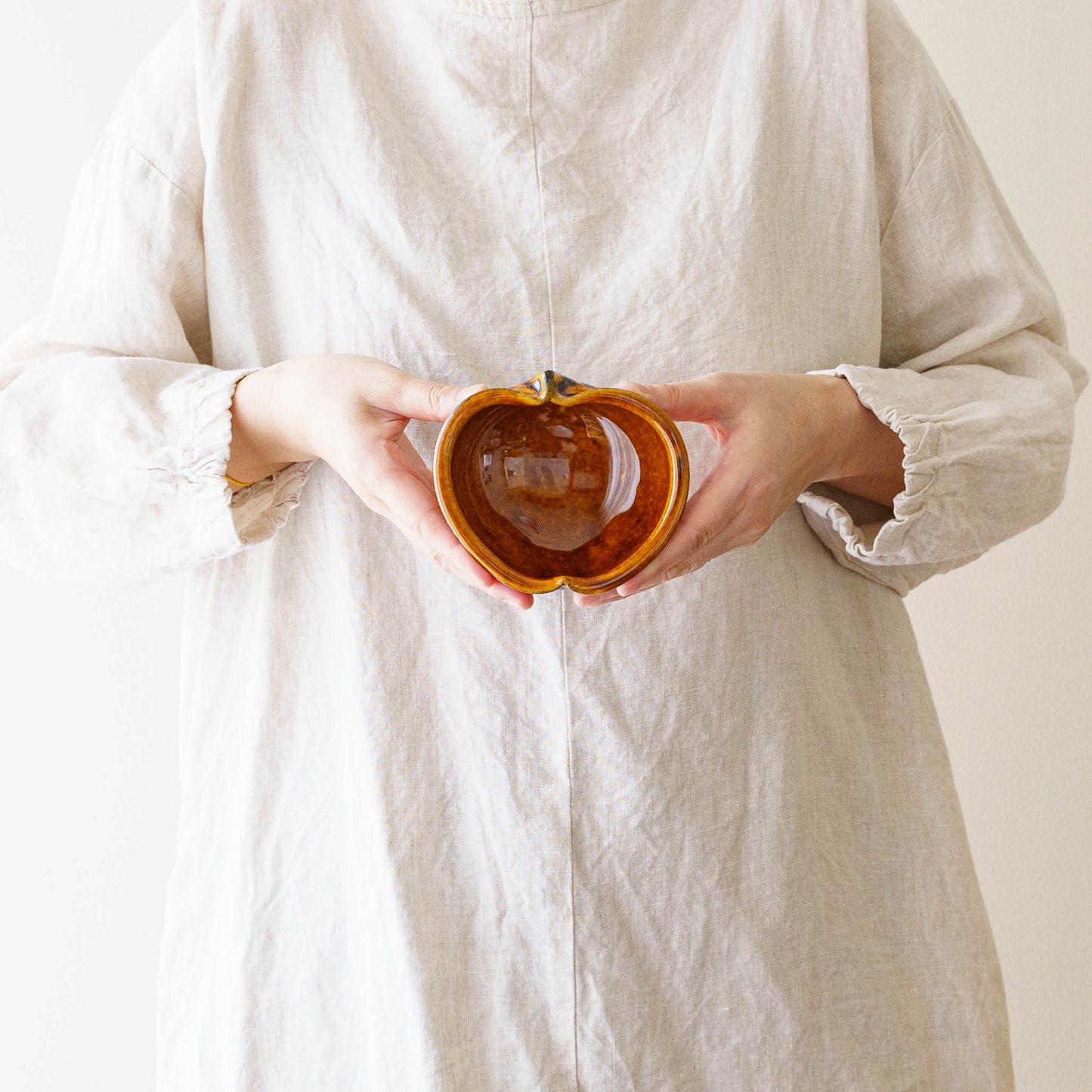 やさしさが伝わってくるかたちに、左右非対称感のあるりんごの断面がまた可愛らしく、ヘタ部分のくぼみにもほっこり癒されます。
