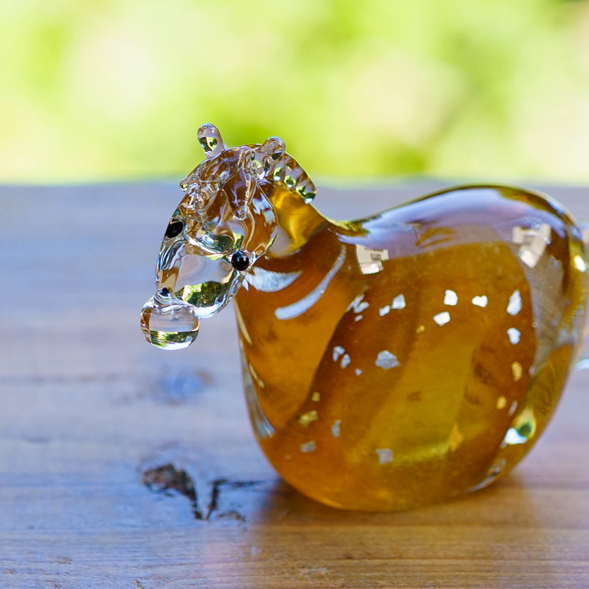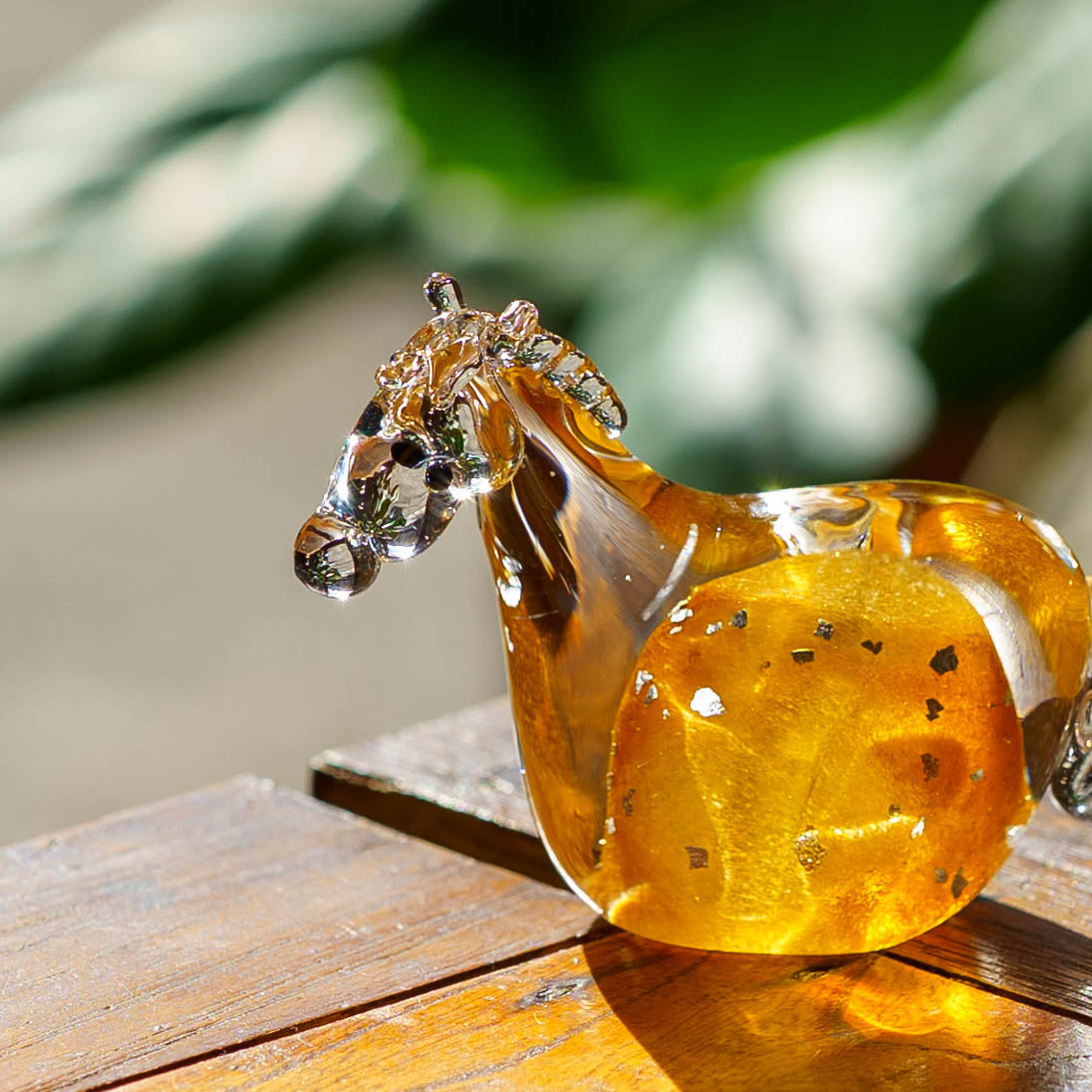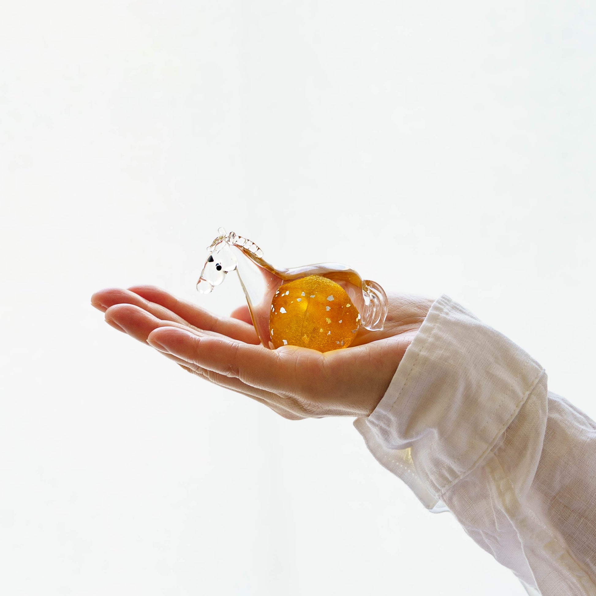 ひとつひとつ、吹きガラスで丁寧に作られた小さな午の飾り。やわらかな光を受けてきらめく姿は、その時々で違う表情を見せてくれます。少しかしげた首やつぶらな瞳がどこか親しげで、思わず笑顔になってしまうような愛らしさです。