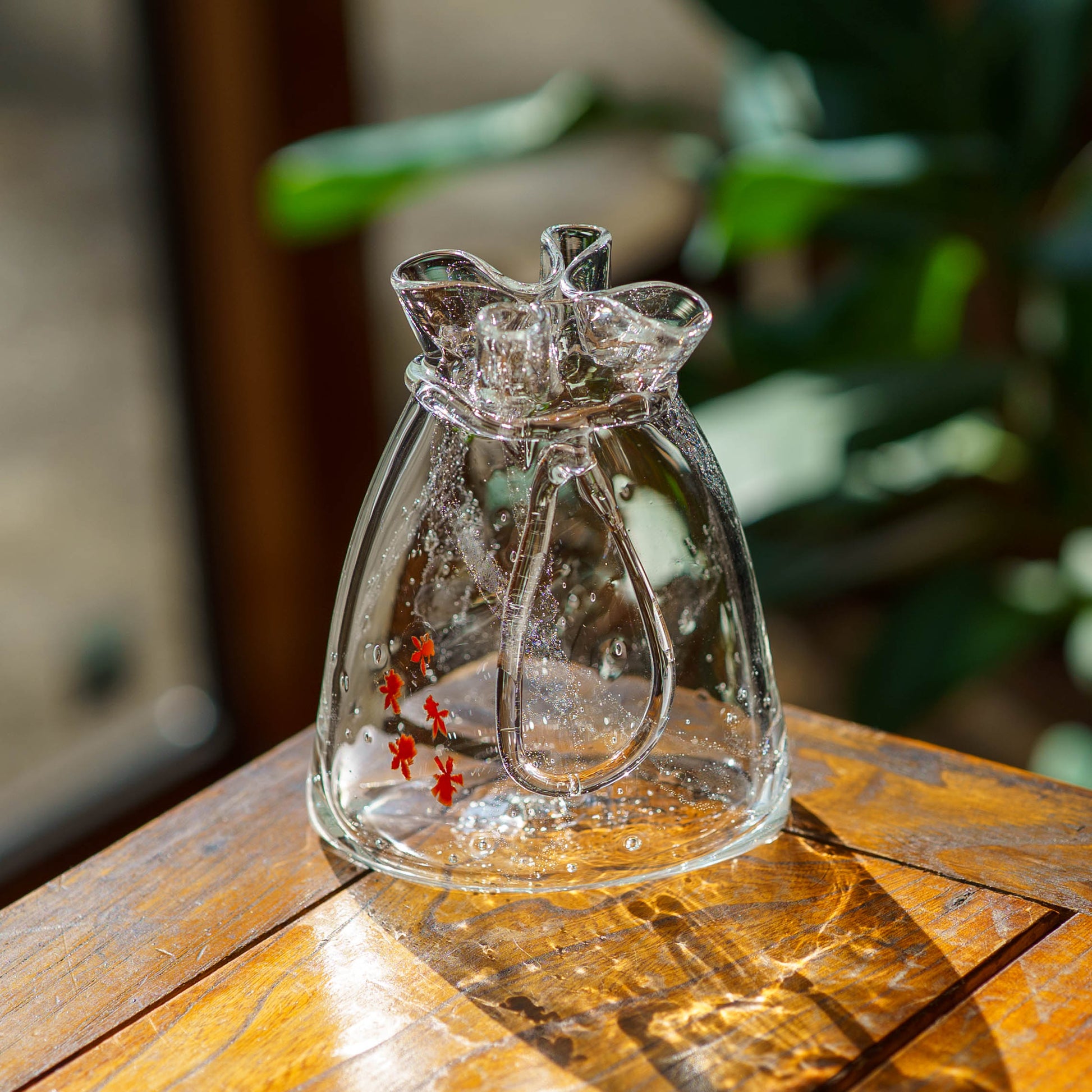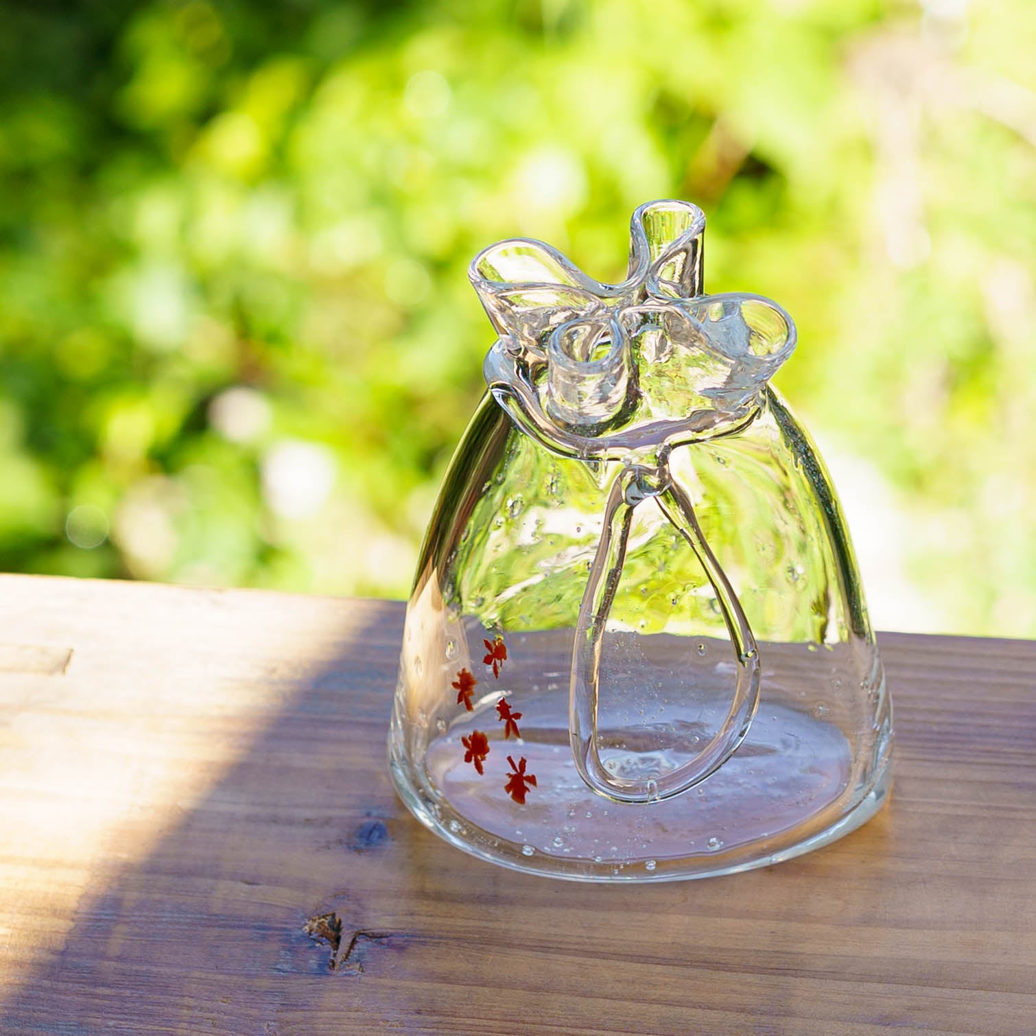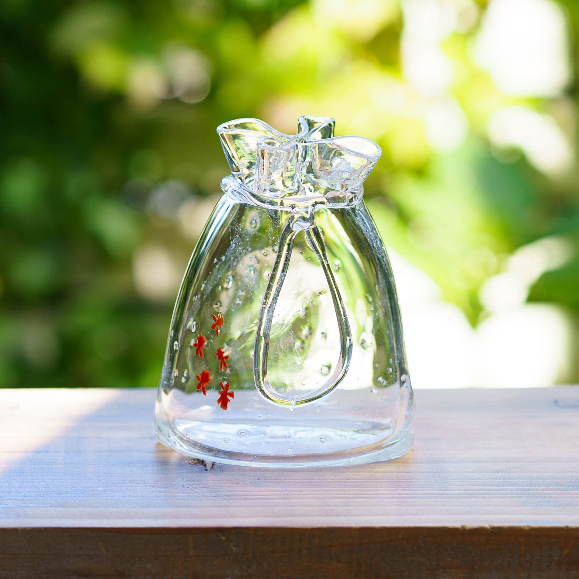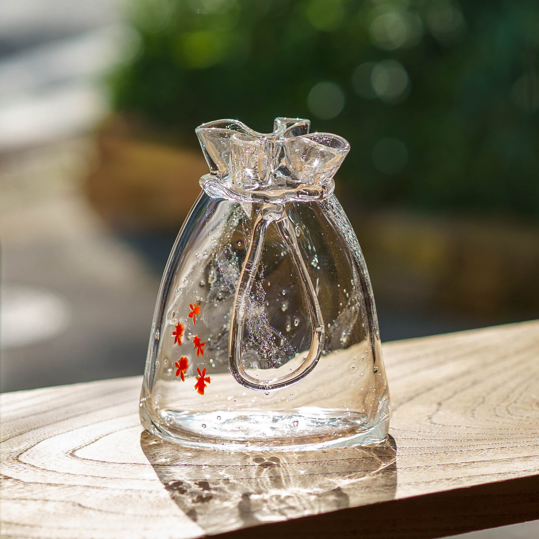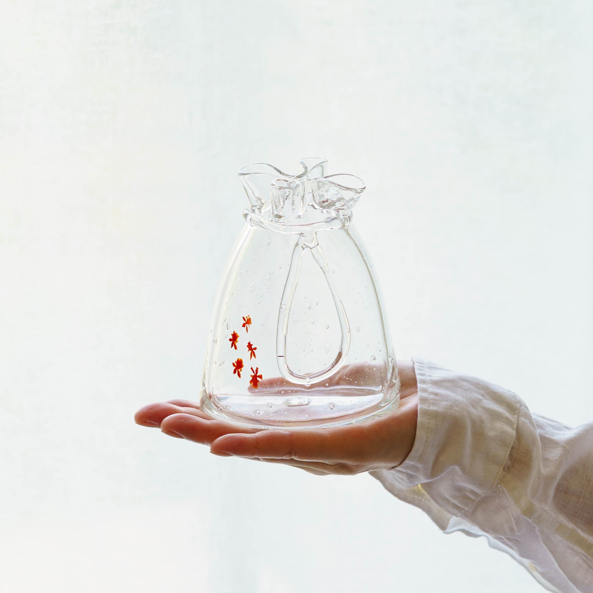 極楽寺がらす工房さんの金魚巾着一輪挿し中クリア