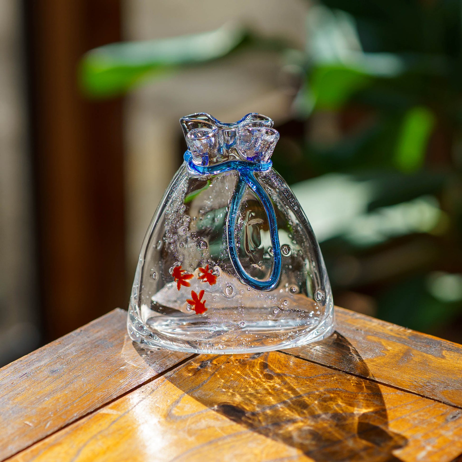 極楽寺がらす工房さんの金魚巾着一輪挿し小青