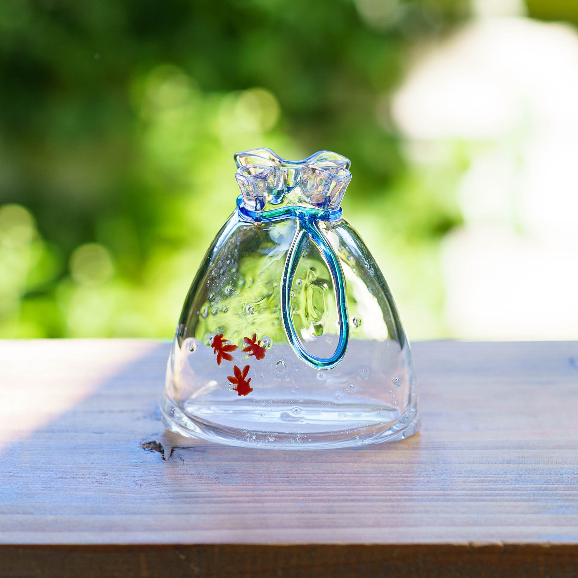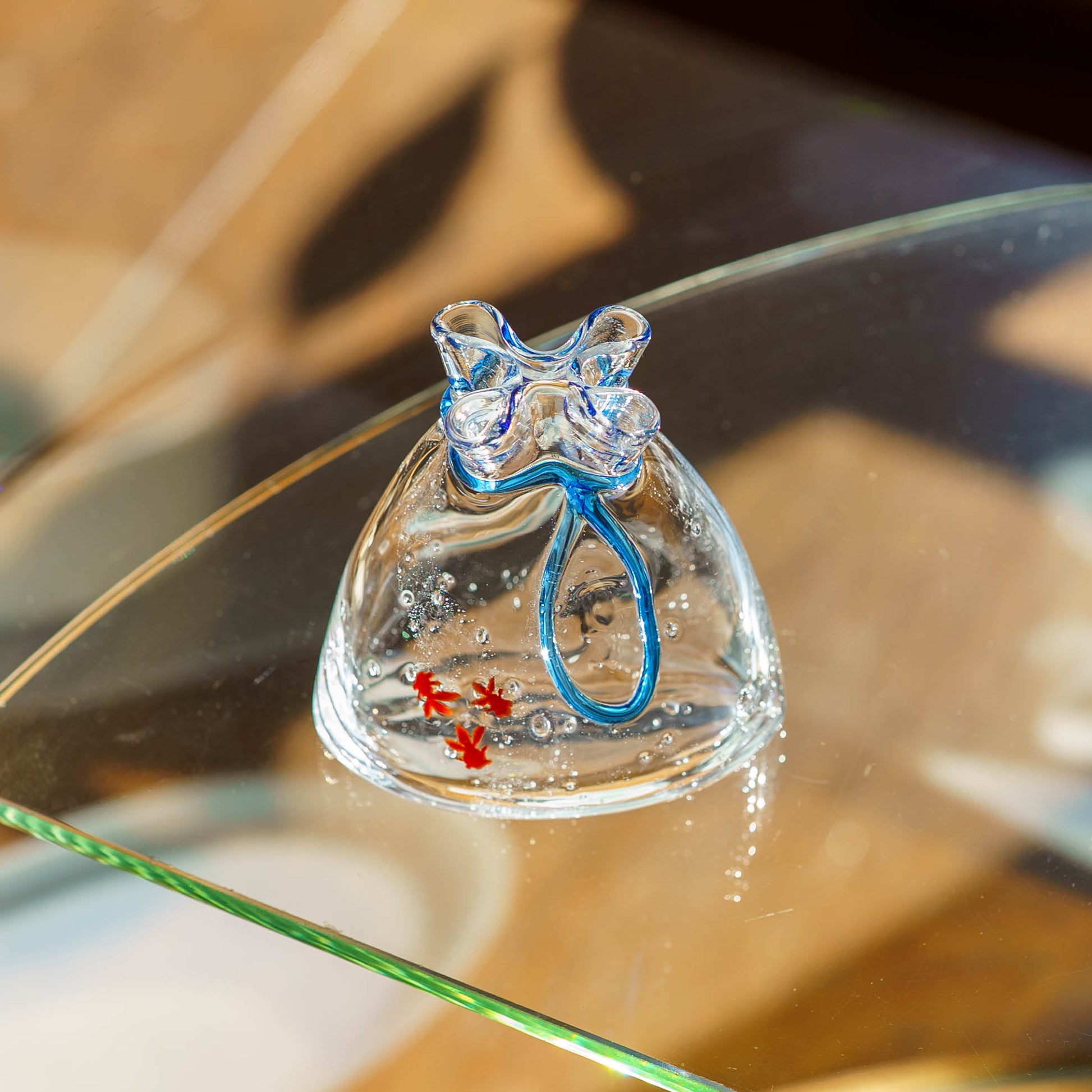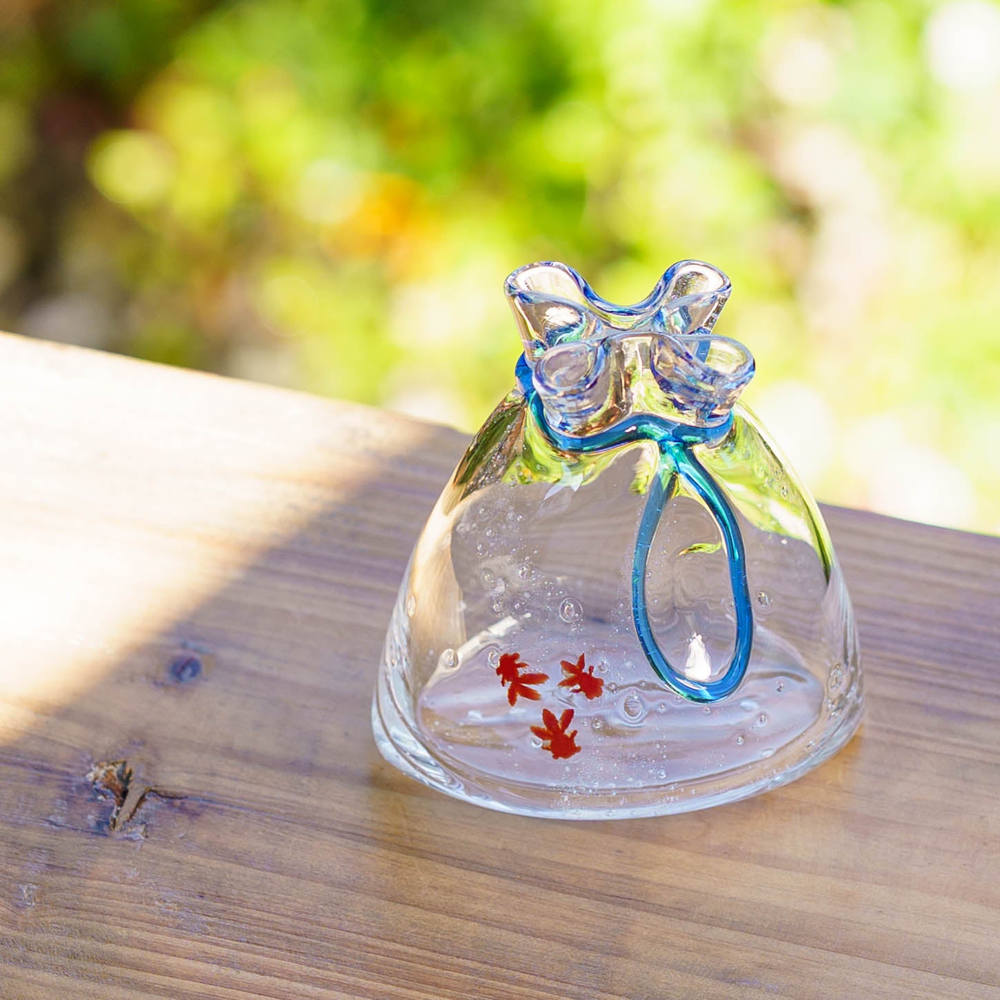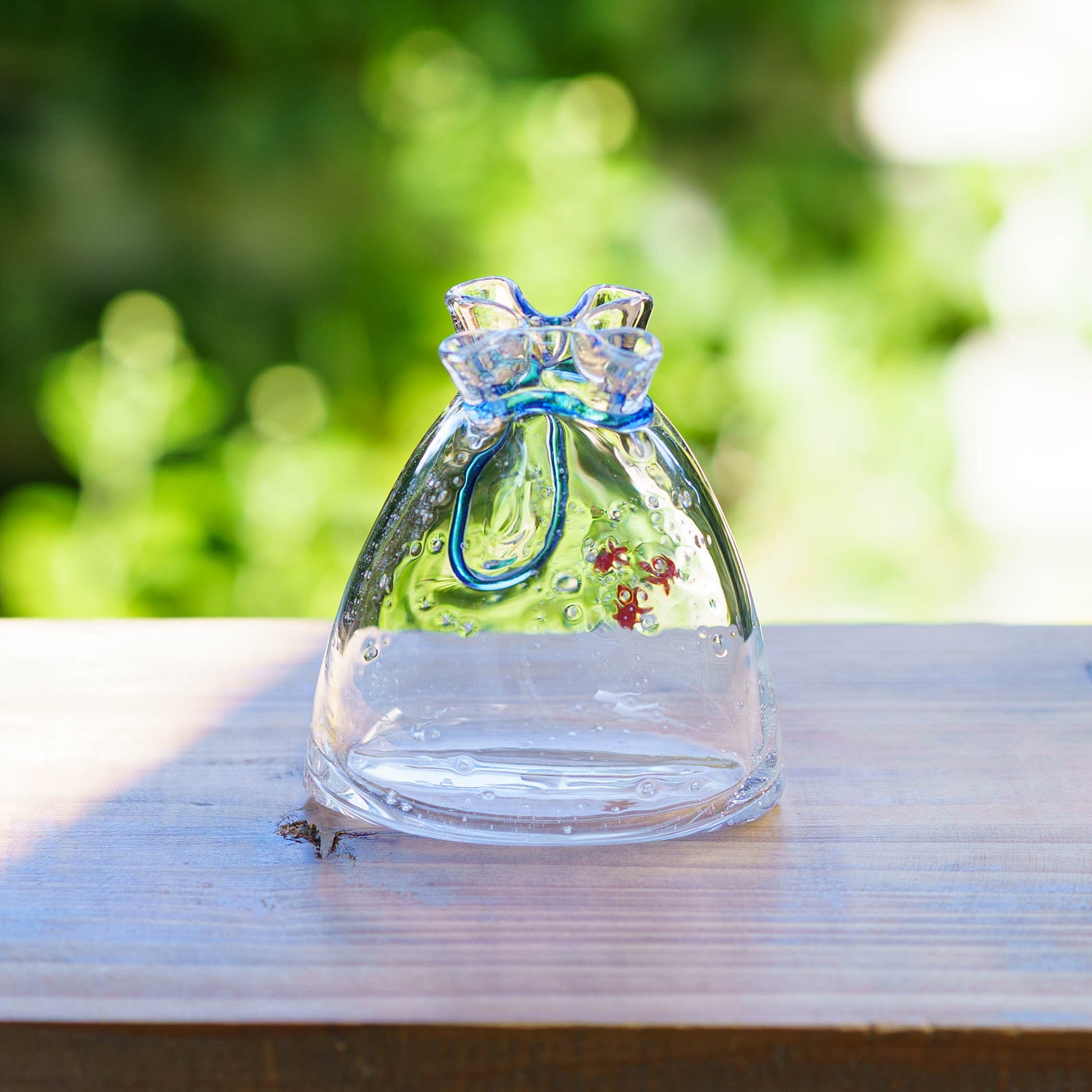 金魚巾着一輪挿し 小 青|極楽寺がらす工房