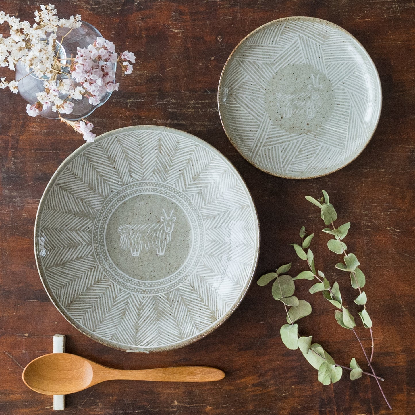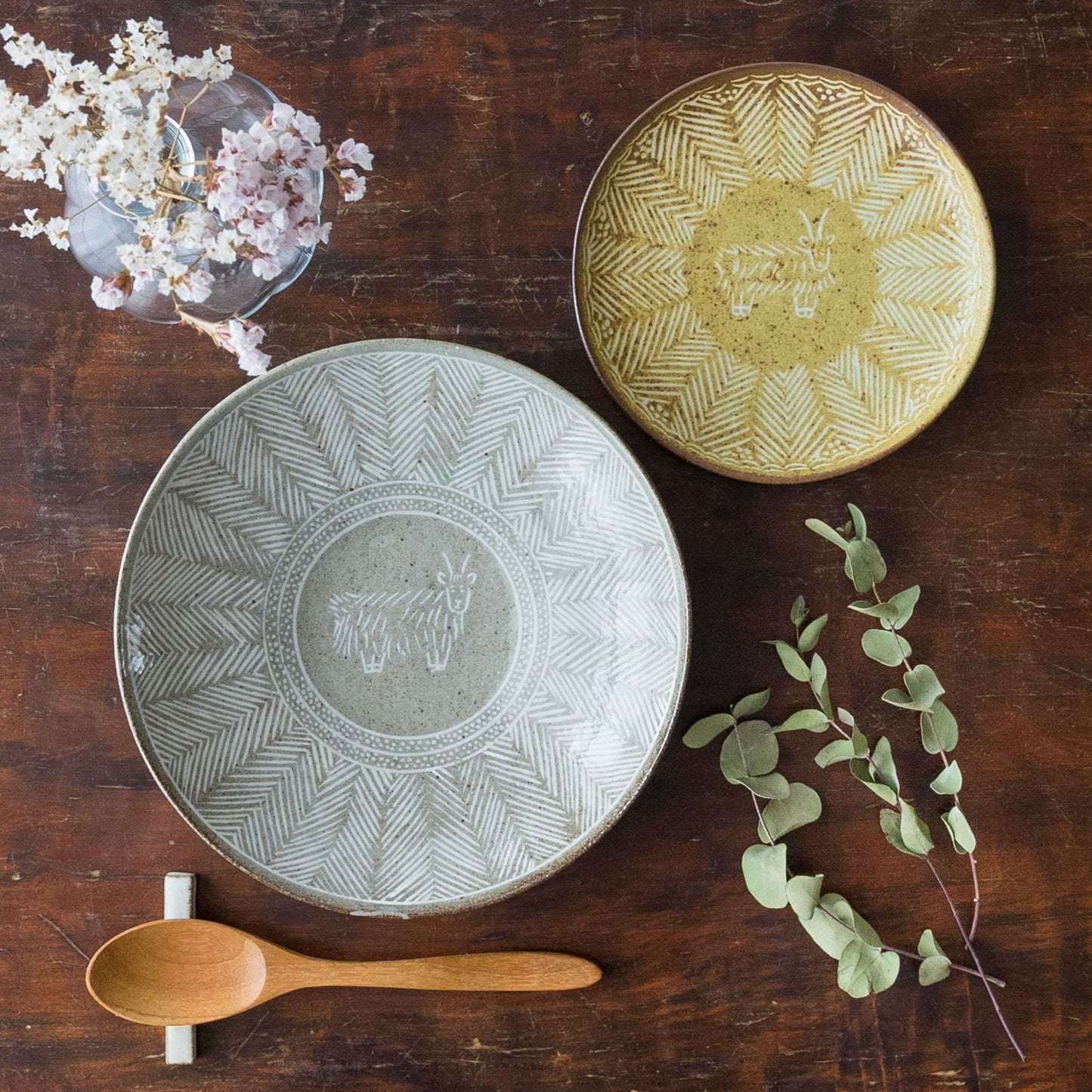 ヘリンボーン柄が盛り付けたお料理を引き立ててくれます。食べ進めていくとほのぼの可愛いヤクがお目見えするのも楽しい気持ちになりますね。