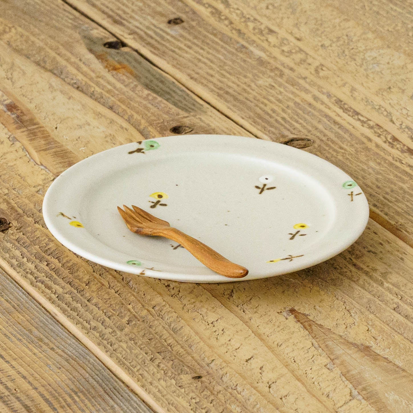 淡くやさしい色合いと、思わず微笑んでしまう愛らしい佇まい。どこか懐かしく、心あたたまる絵柄は見ているだけでいろいろな表情を見せてくれます。土のぬくもりや存在感を感じられて、ふわっとあたたかな気持ちにしてくれます。