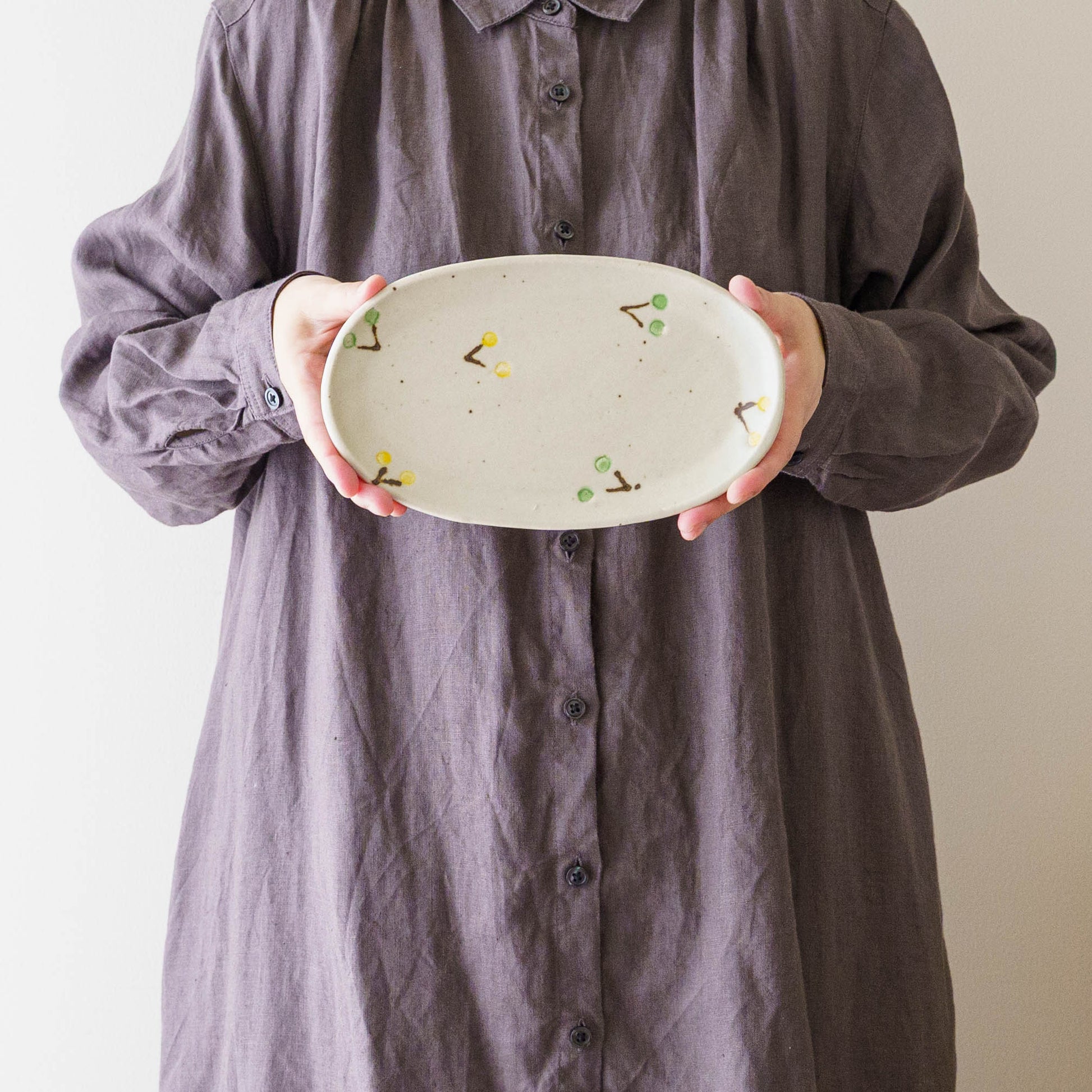 淡くやさしい色合いと、思わず微笑んでしまう愛らしい佇まい。どこか懐かしく、心あたたまる絵柄は見ているだけでいろいろな表情を見せてくれます。土のぬくもりや存在感を感じられて、ふわっとあたたかな気持ちにしてくれます。