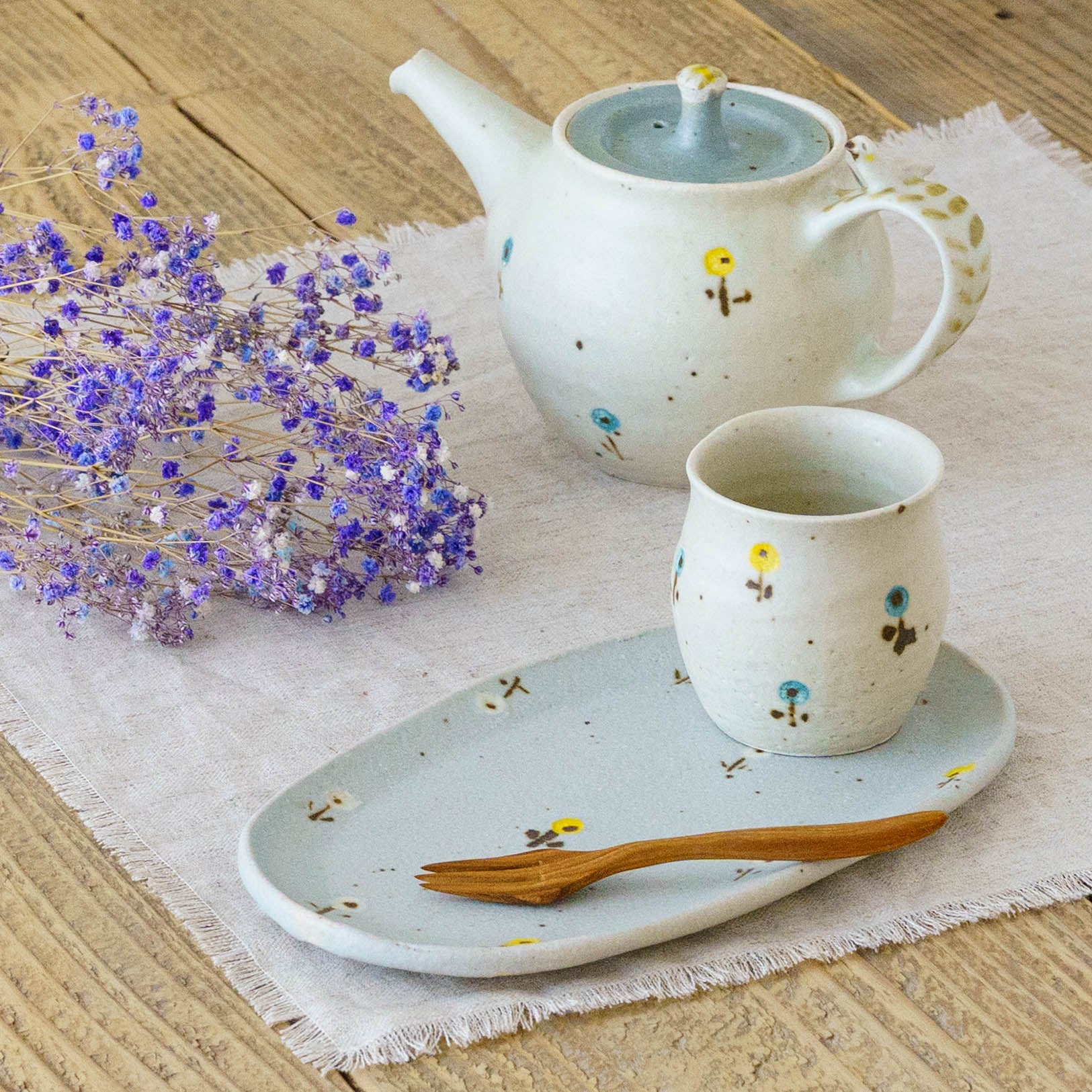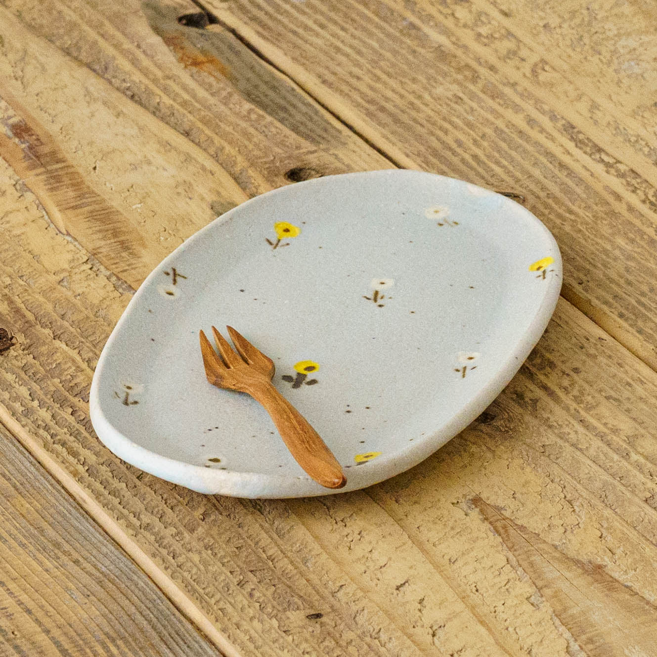 淡くやさしい色合いと、思わず微笑んでしまう愛らしい佇まい。どこか懐かしく、心あたたまる絵柄は見ているだけでいろいろな表情を見せてくれます。土のぬくもりや存在感を感じられて、ふわっとあたたかな気持ちにしてくれます。