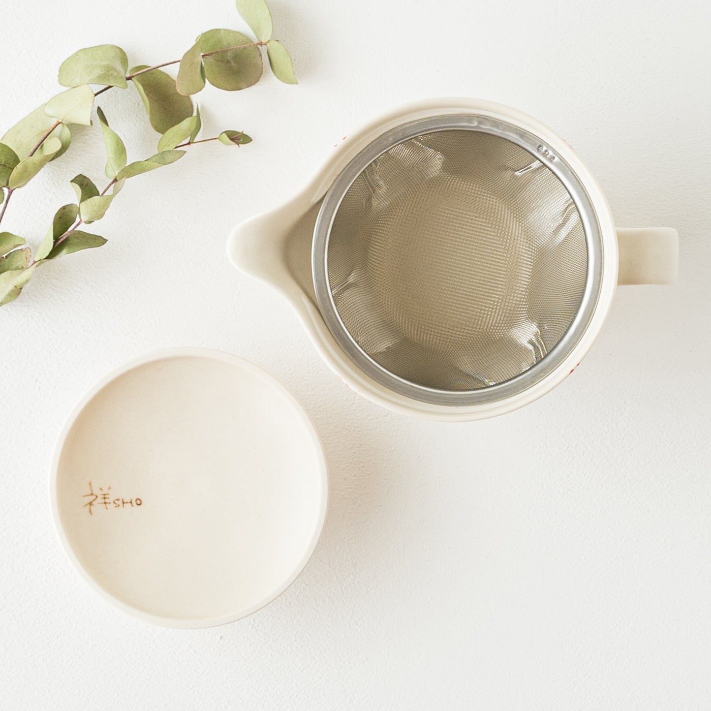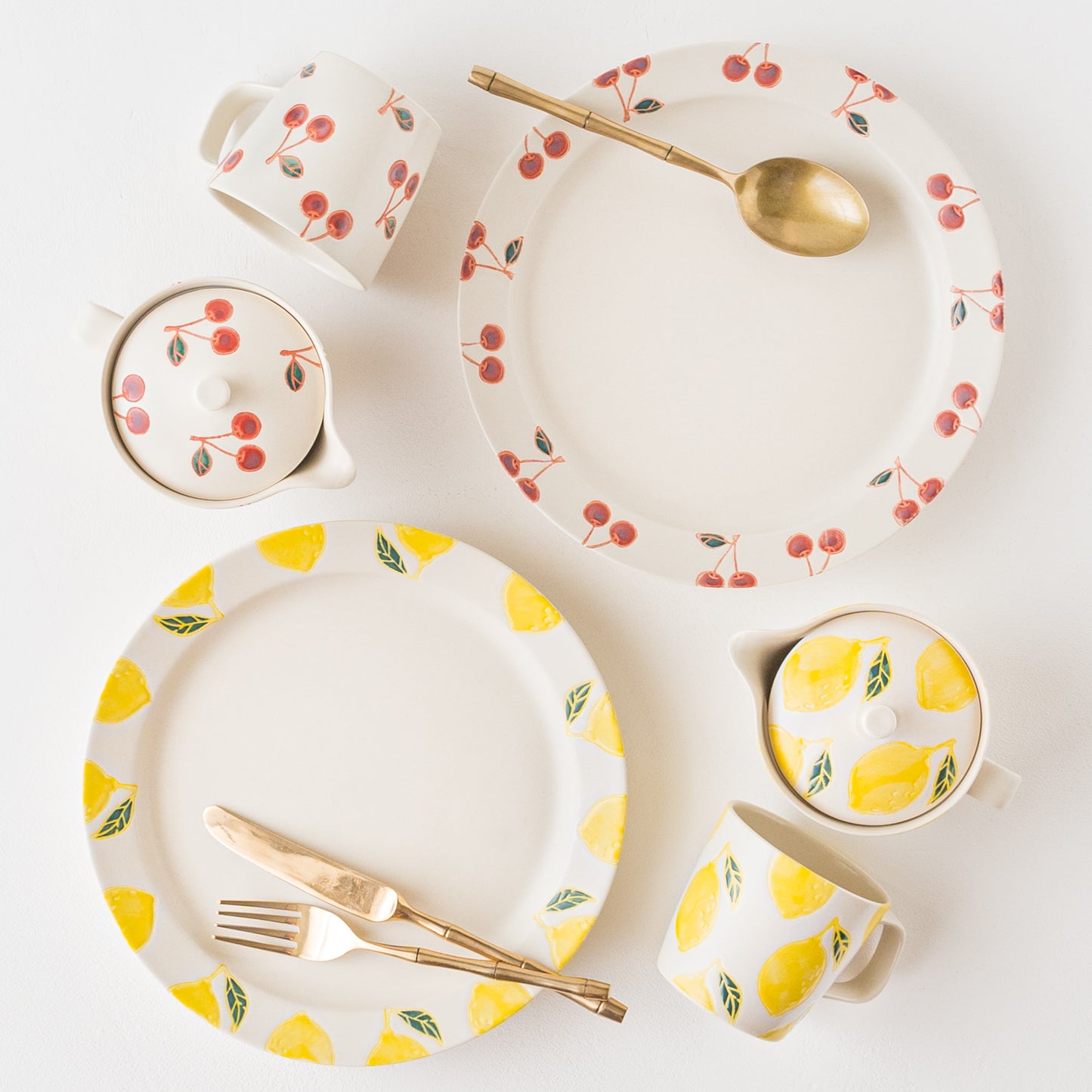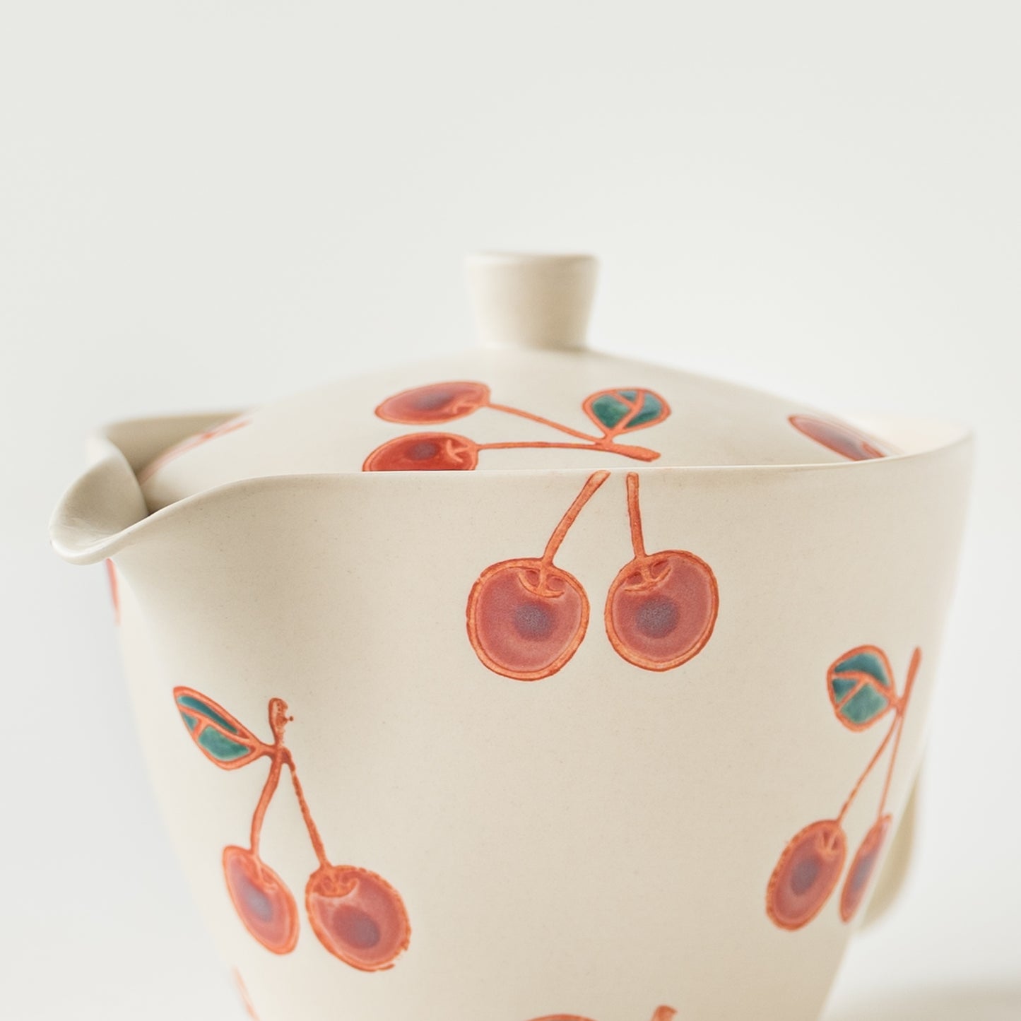 ポット全体に描かれた目を引くかわいいサクランボ。見ているだけで元気が湧いてきます。すべて手作業で描かれているので、ひとつひとつ違った表情のサクランボに優しさを感じます。
