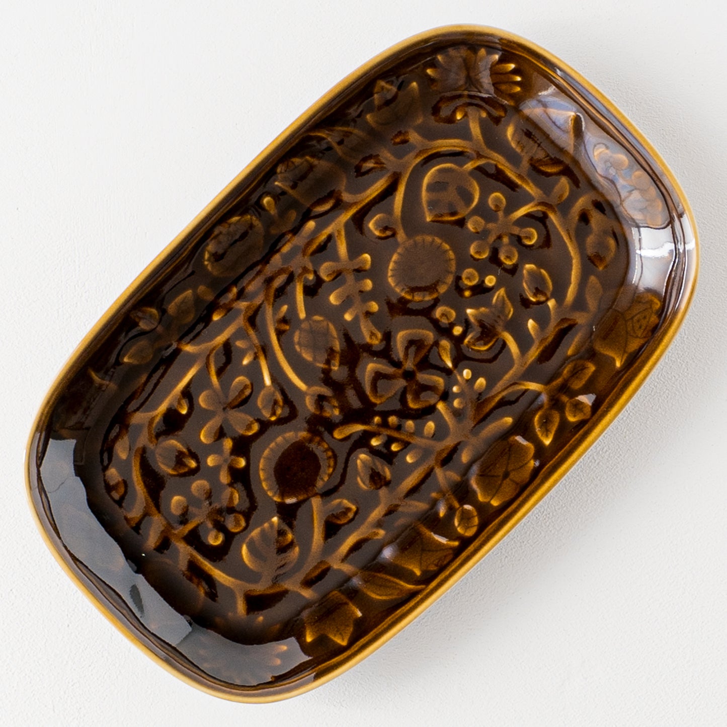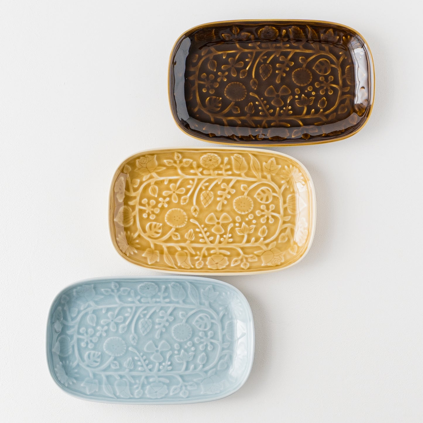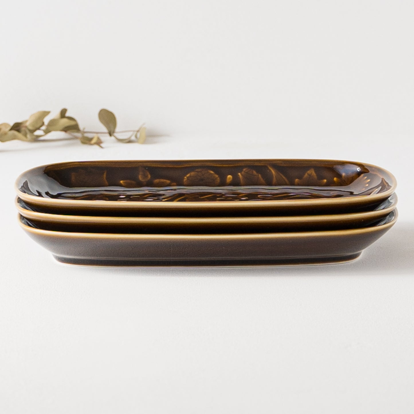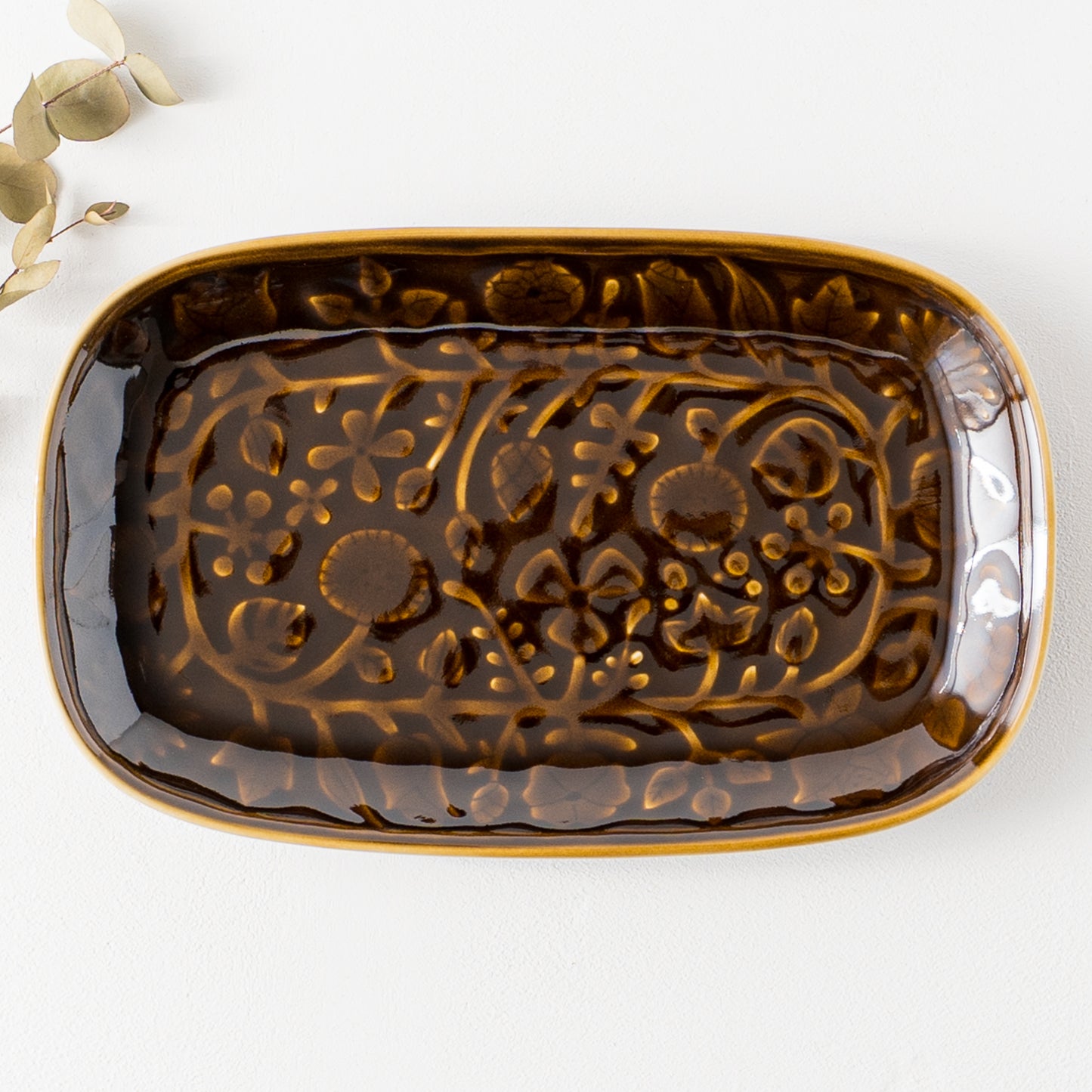 レリーフフラワーパレード 長角皿 ブラウン|波佐見焼 和山 Hasamiyaki Wazan Square Plate