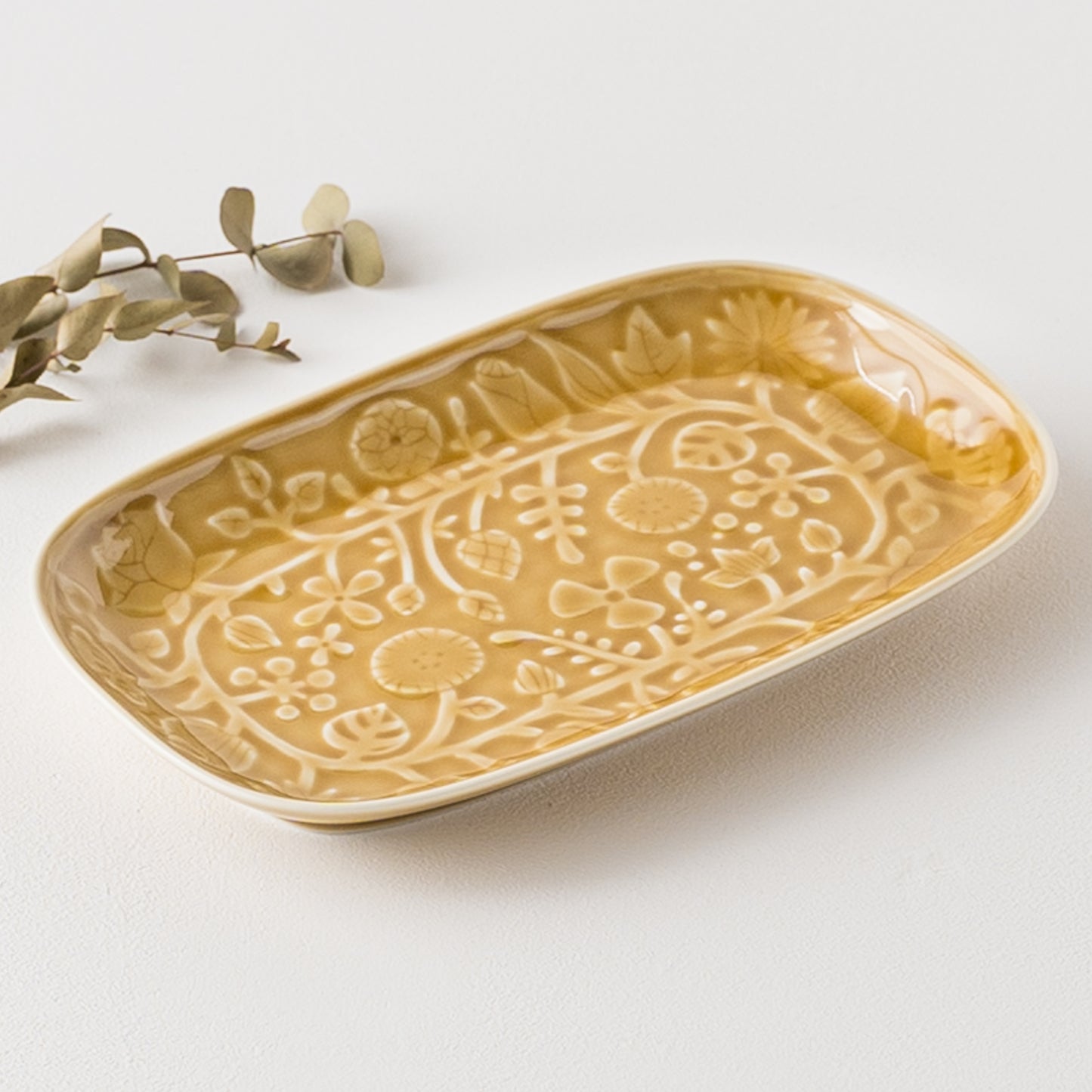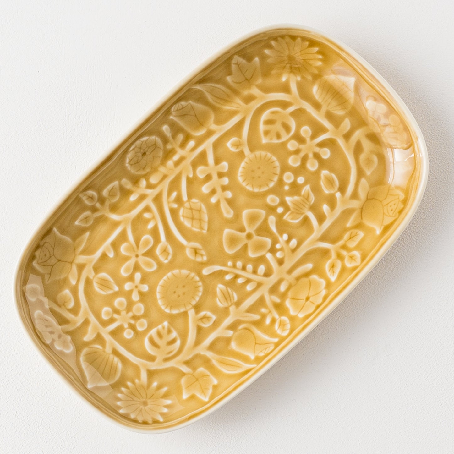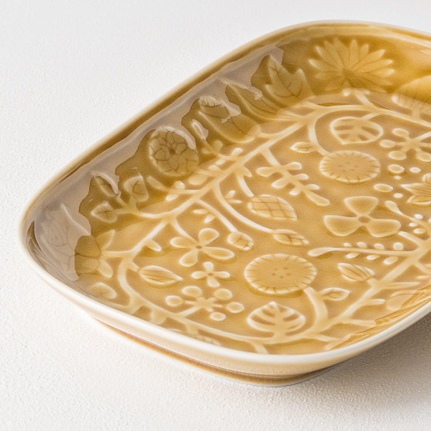 レリーフフラワーパレード 長角皿 キャメル|波佐見焼 和山 Hasamiyaki Wazan Square Plate
